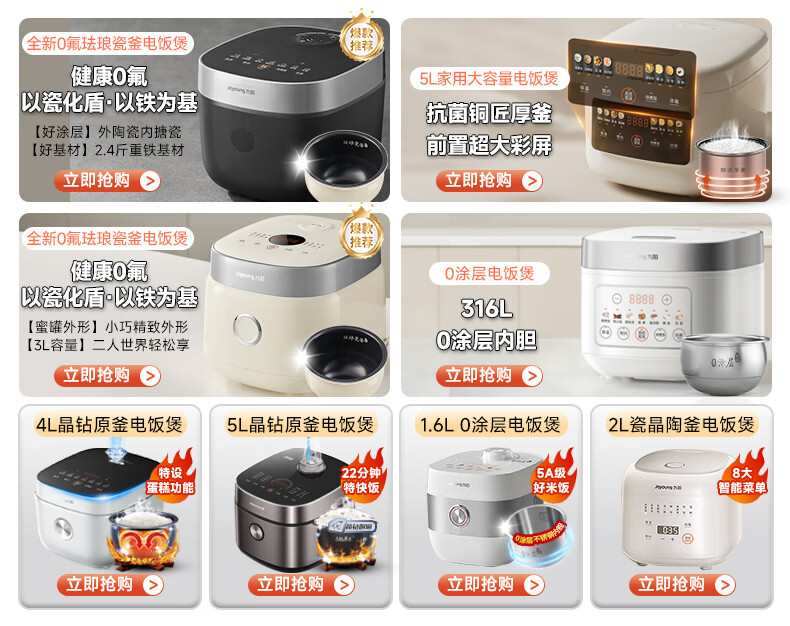 九阳(Joyoung)0氟系列珐琅瓷釜4升安心煲电饭煲电饭锅3-4人家用0特氟龙微压柴火饭4A好饭NTC智控多功能 F-40NF12