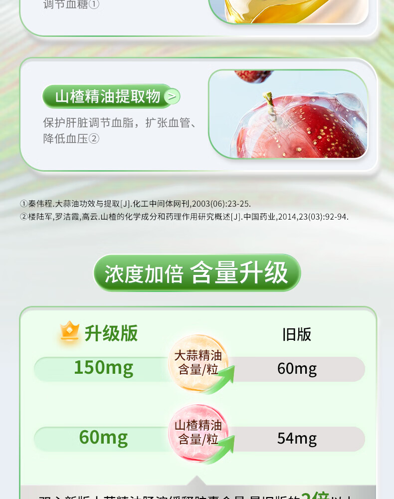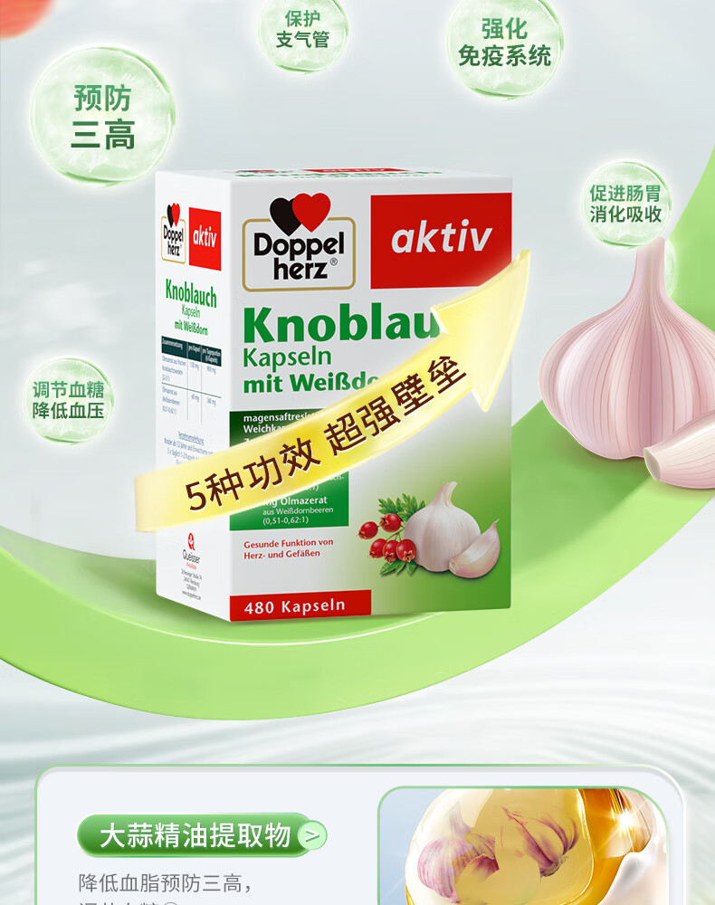 双心(Doppel herz)大蒜素山楂精油480粒吃蒜无异味成人含量升级