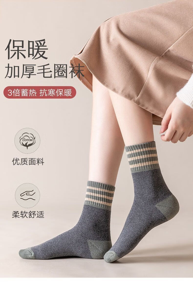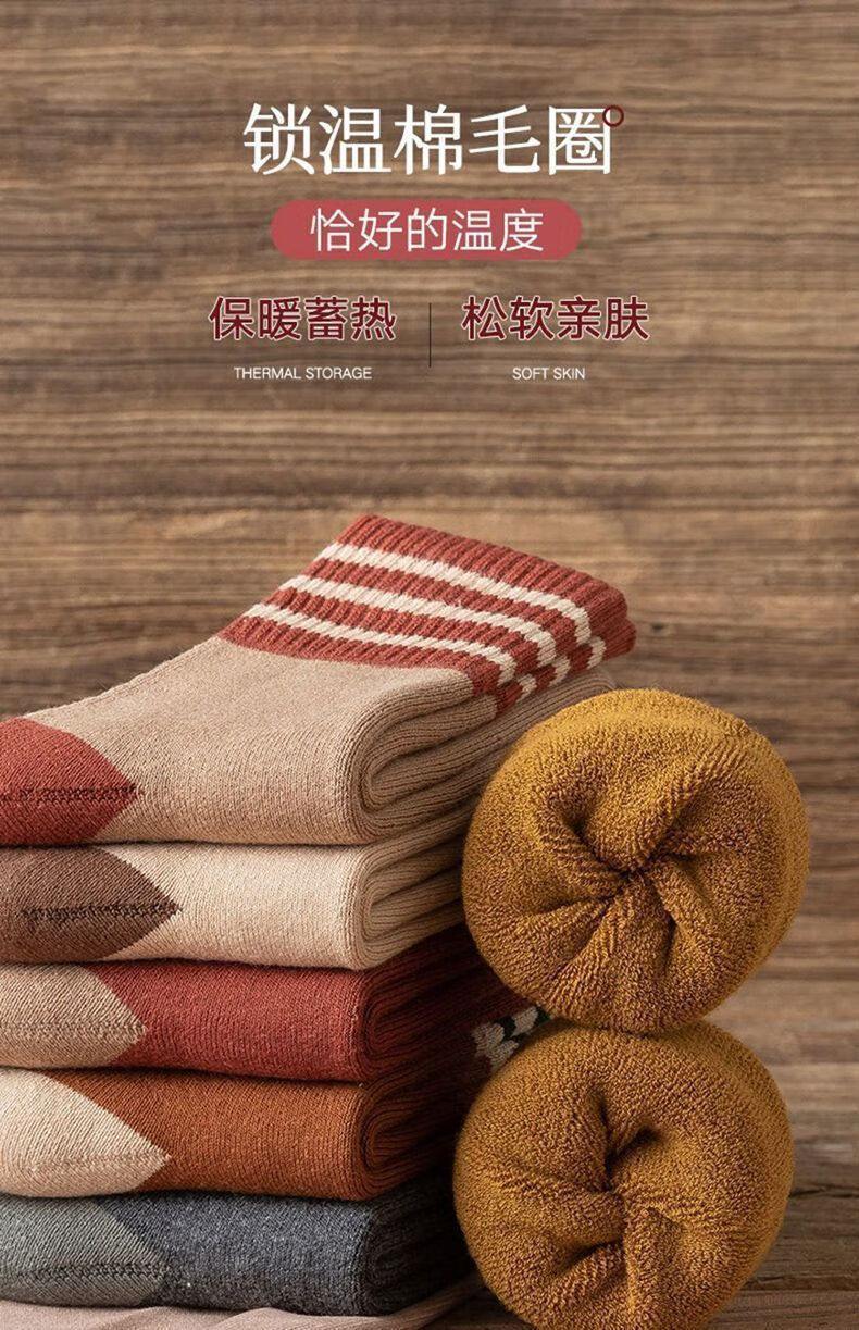 雅鹿袜子女冬季加绒保暖中筒袜秋冬天抑菌防臭袜加厚毛圈袜学生女士袜 随机五色【5双装】 均码 雅鹿 10A抑菌/高弹透气/抗起球