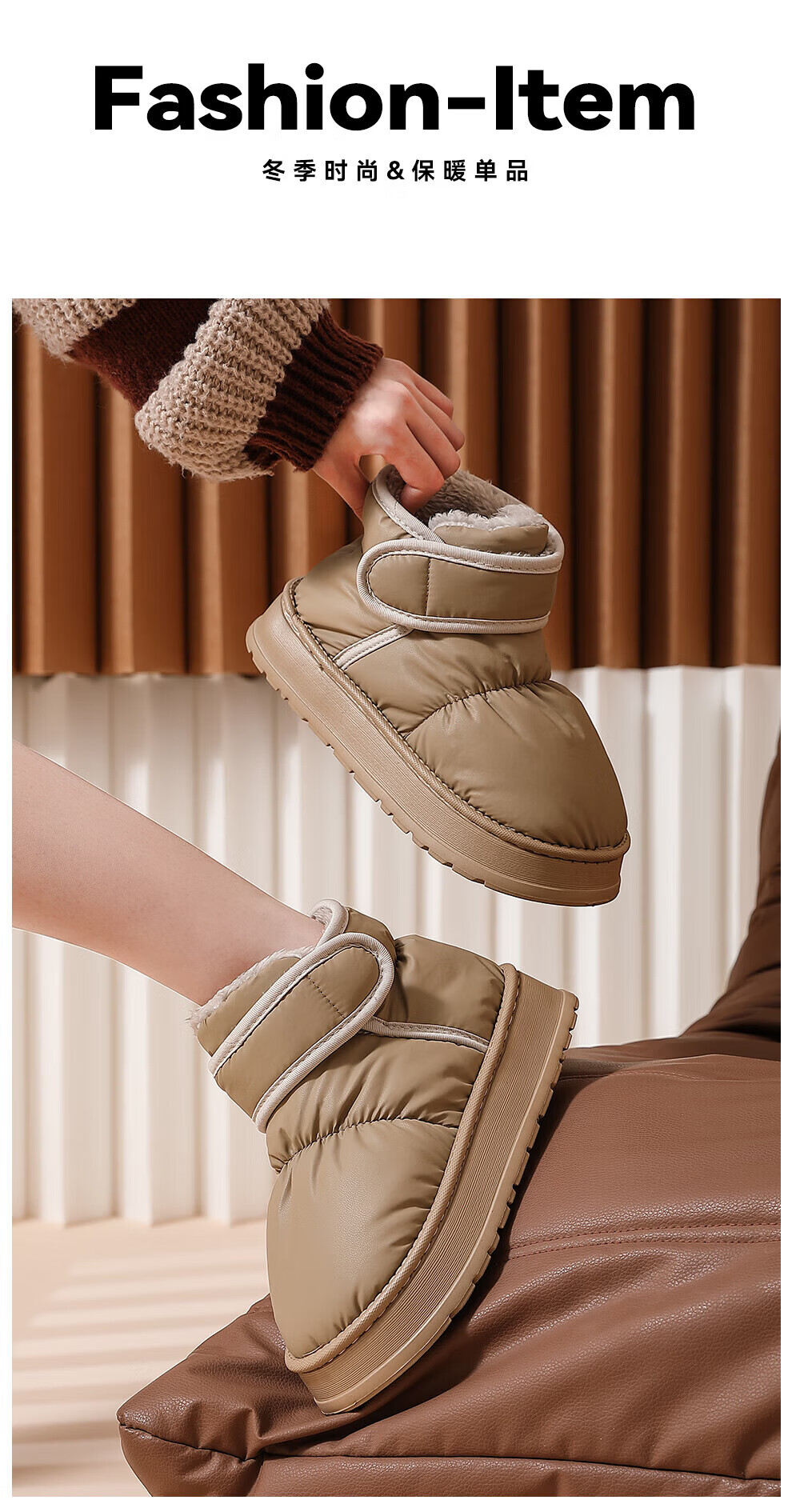 FZT踩屎感棉拖鞋女士秋冬季新款羽绒加绒防滑厚底雪地靴棉鞋男冬天 深灰 36-37 正码(内长235mm)