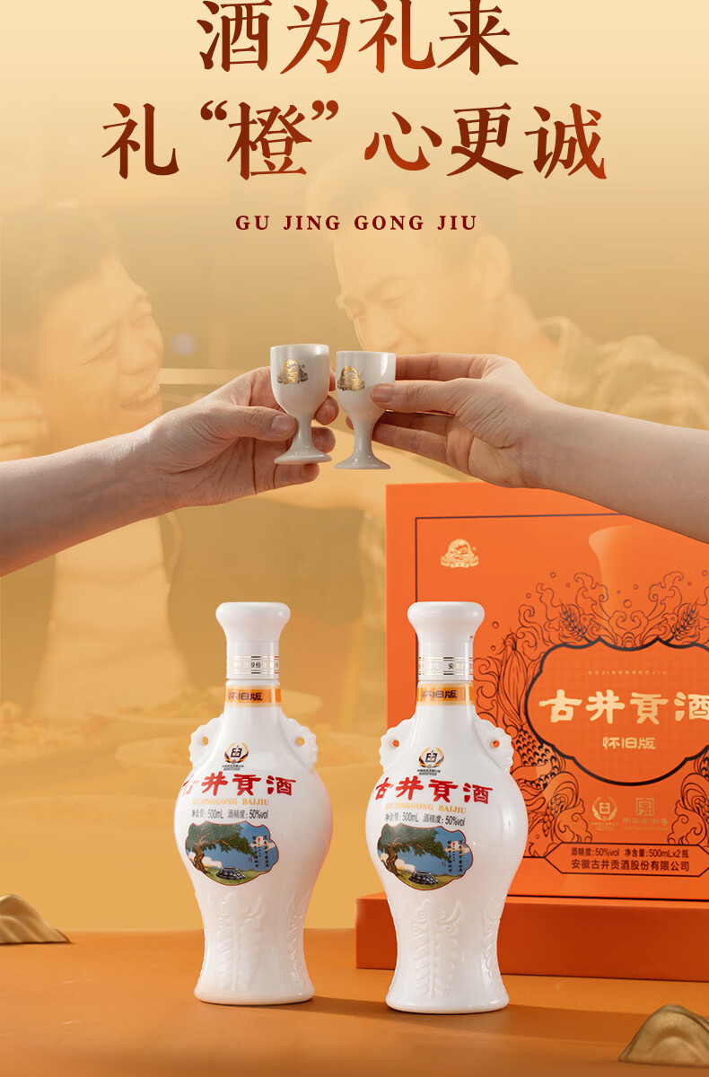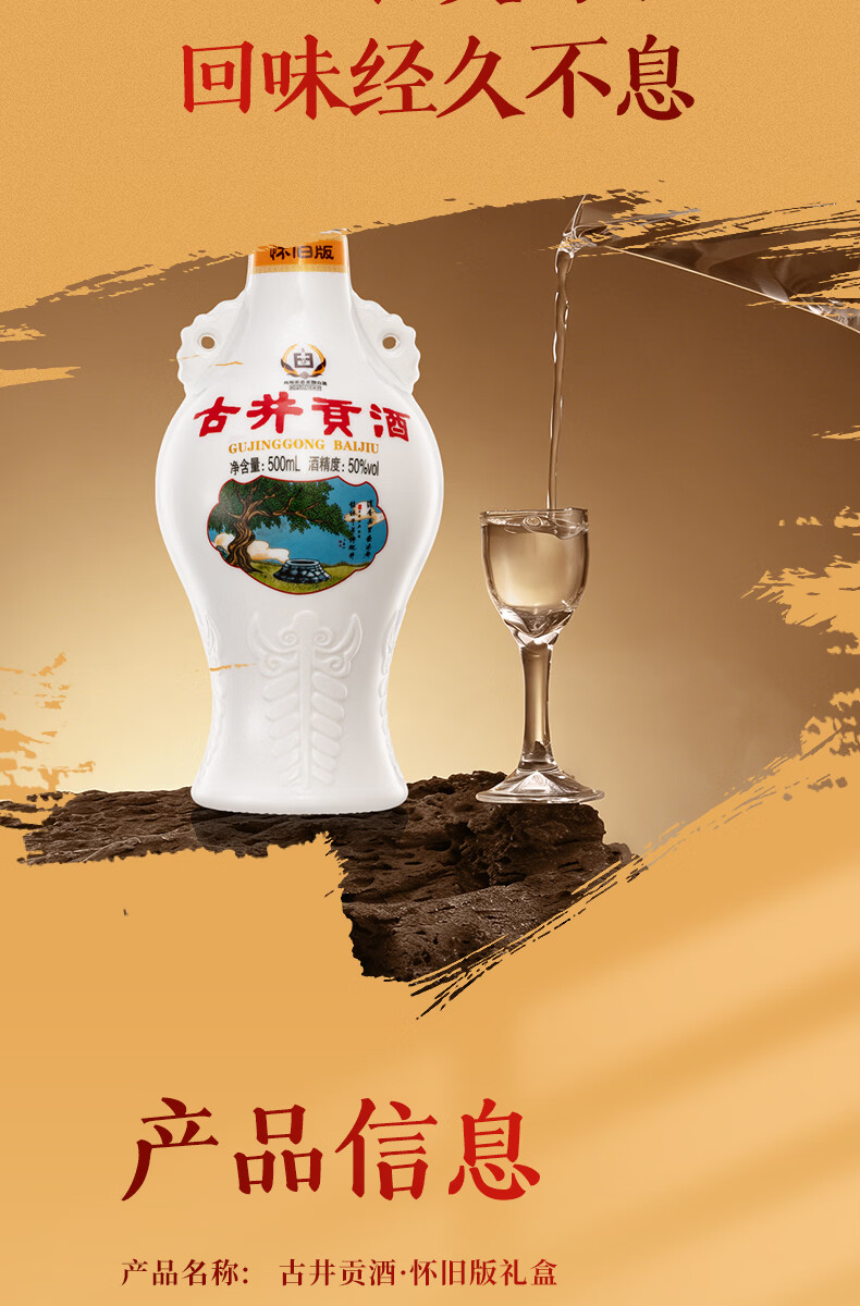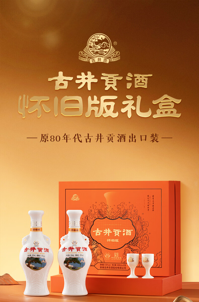 古井贡酒 怀旧版礼盒【贺岁版】 浓香型白酒精选过年送礼 50度 500mL 2瓶 (礼盒装)