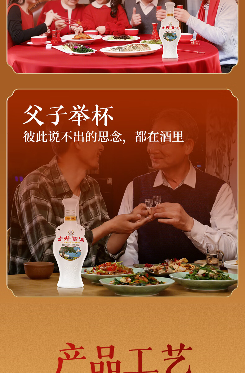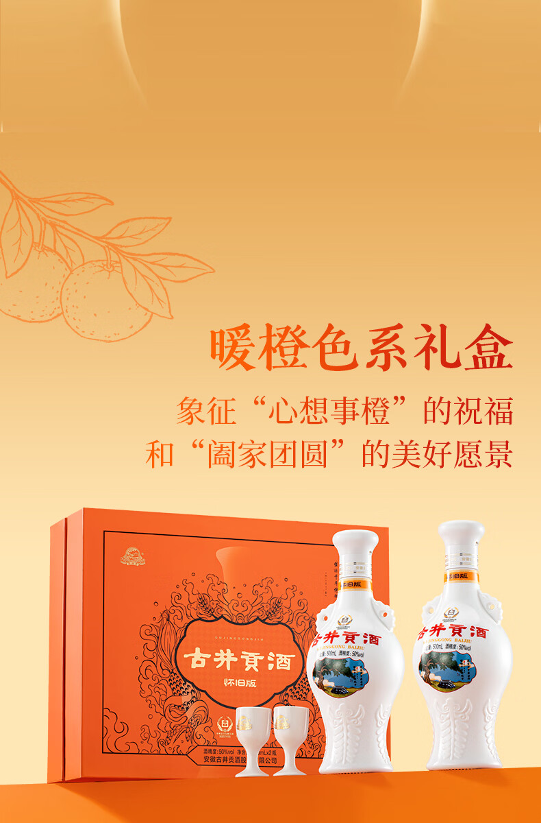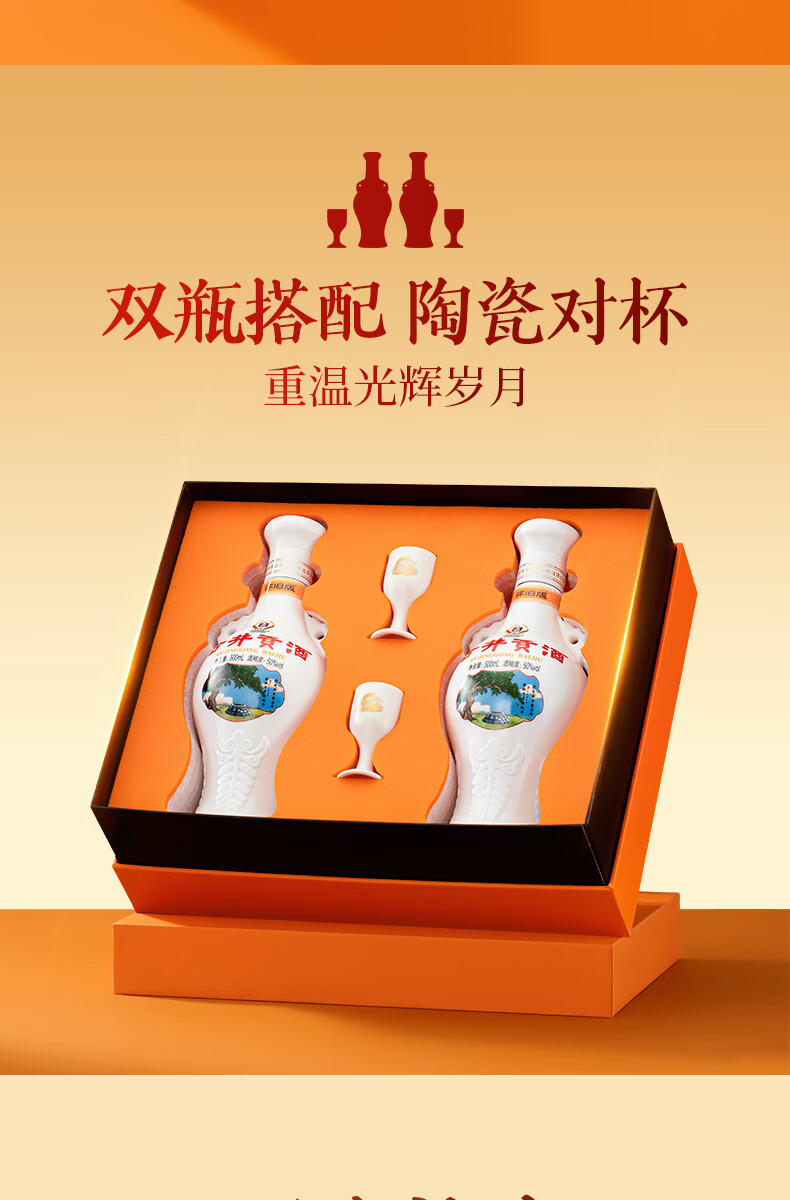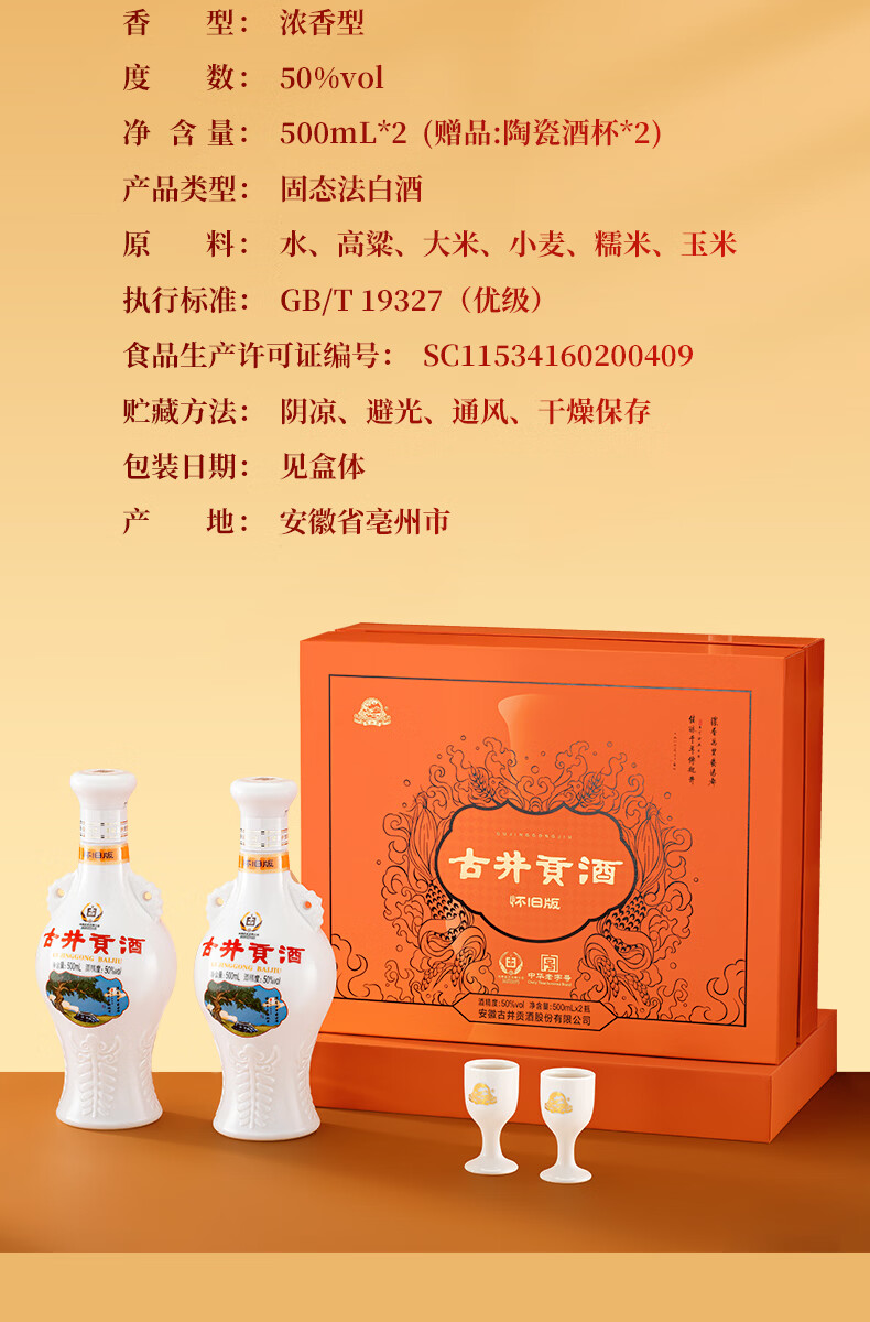 古井贡酒 怀旧版礼盒【贺岁版】 浓香型白酒精选过年送礼 50度 500mL 2瓶 (礼盒装)