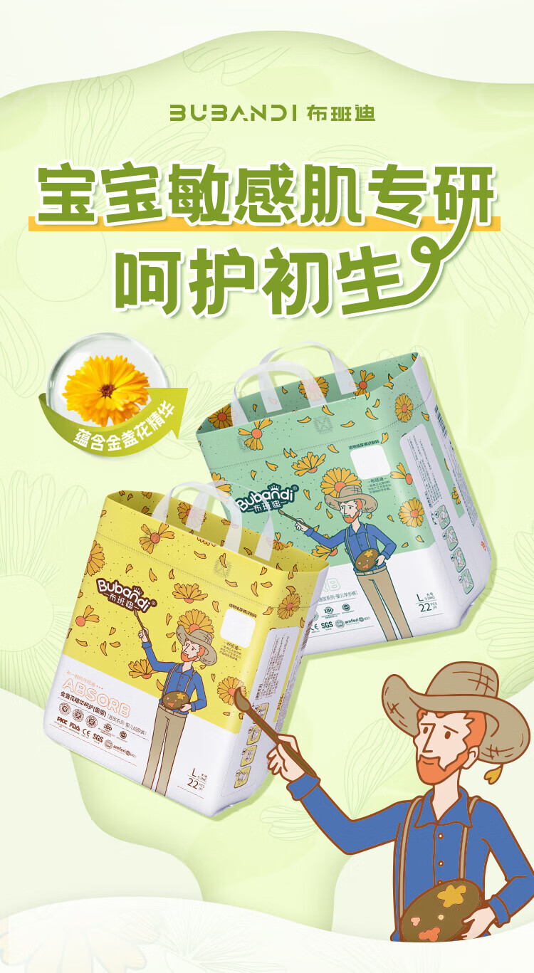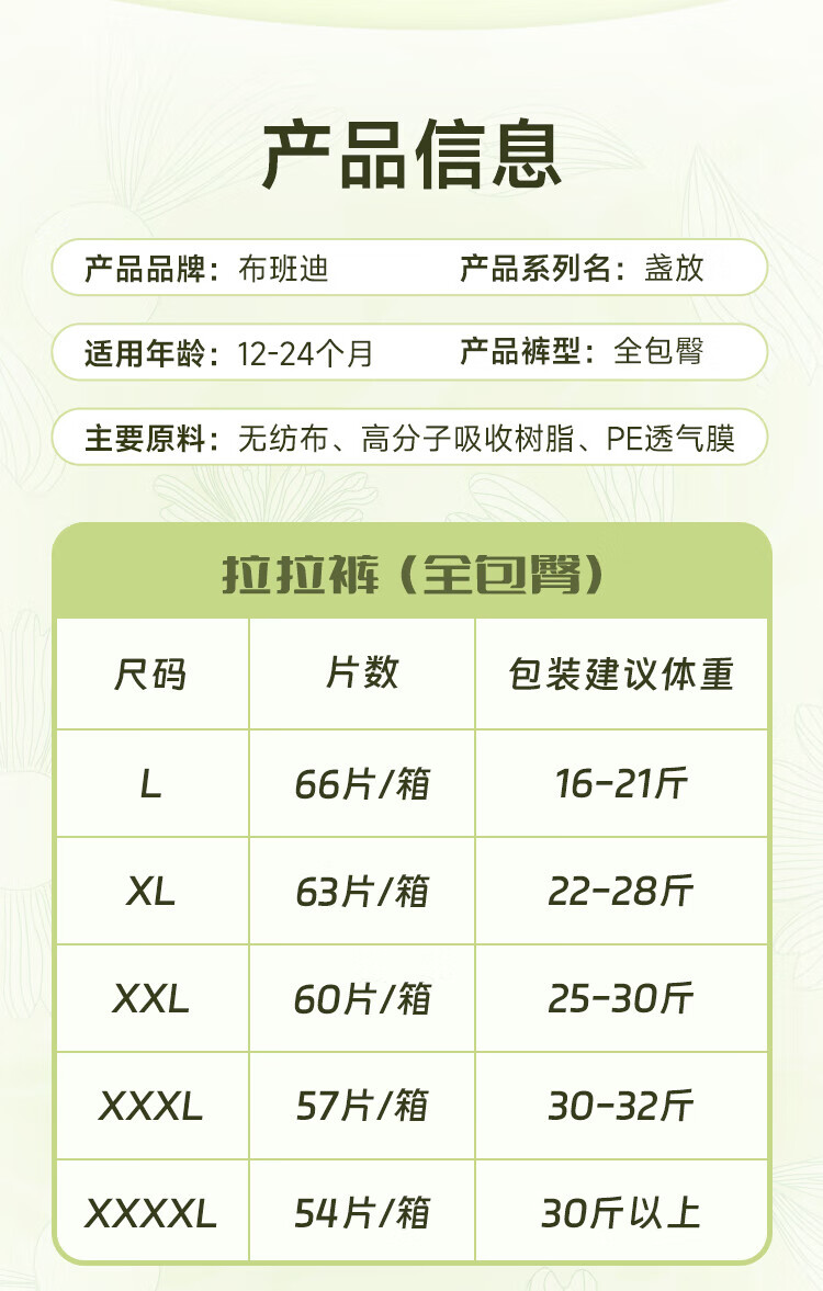 布班迪盏放全包臀学步裤XL63片婴儿拉拉裤超薄干爽透气尿不湿小内裤