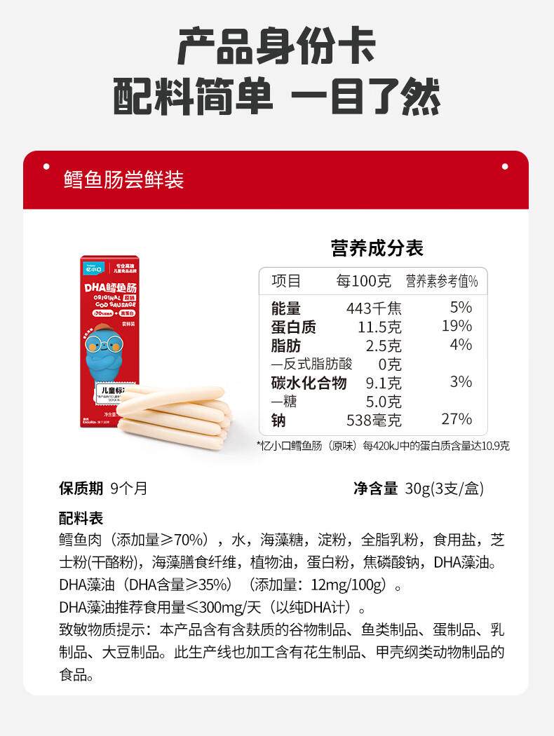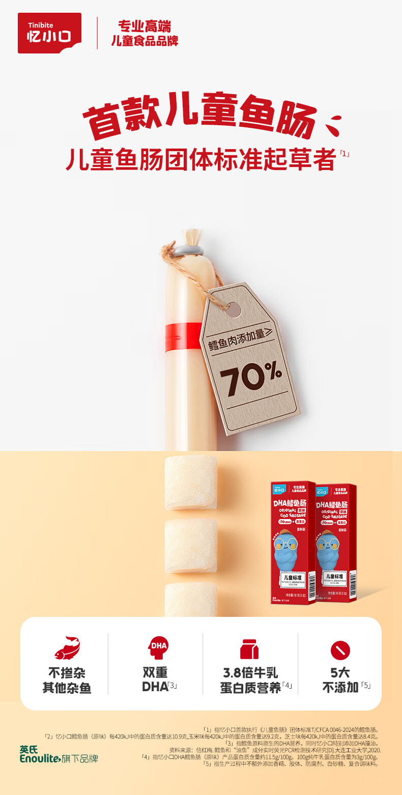 英氏忆小口儿童零食鳕鱼肠原味尝鲜装30g