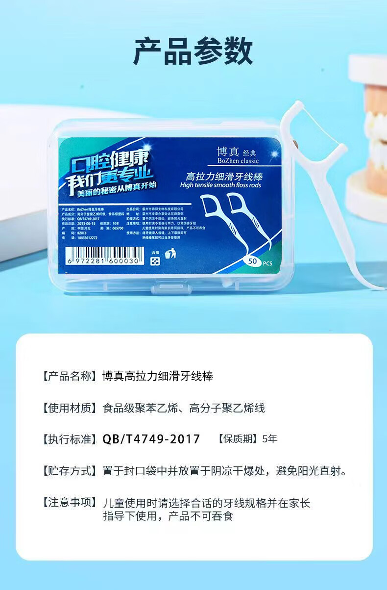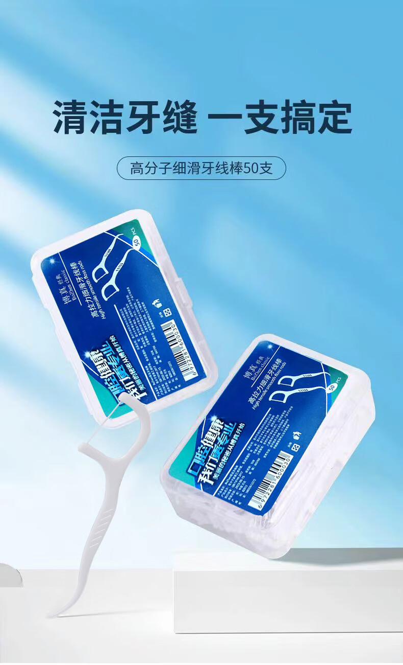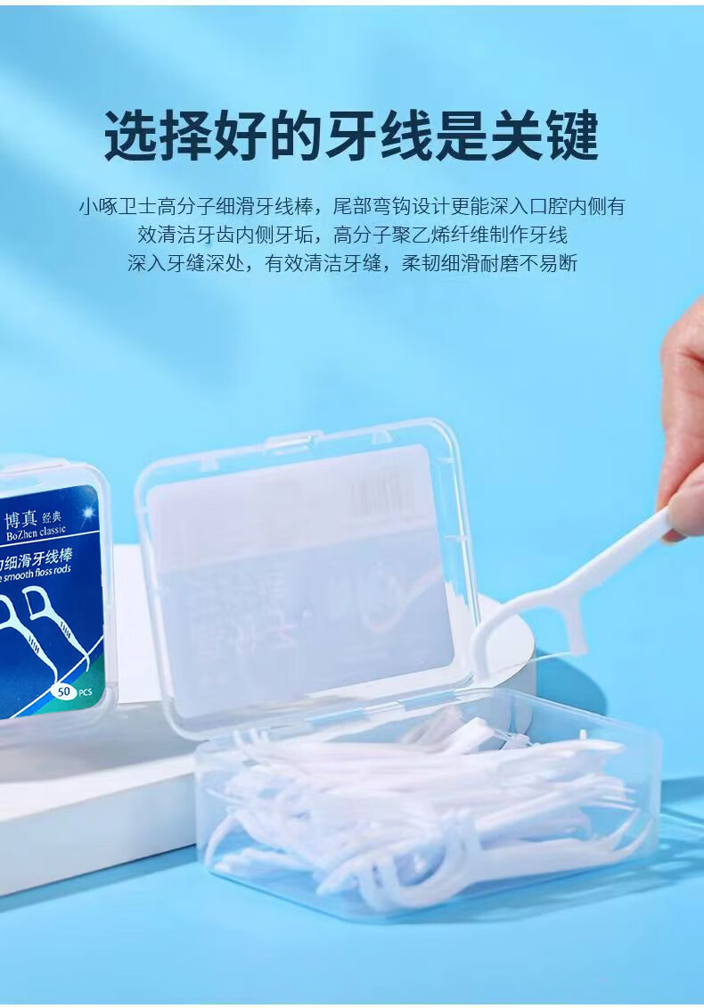 博真牙线棒家庭装高档牙签家用成人牙线棒一次性牙签牙线经典 50支 2盒