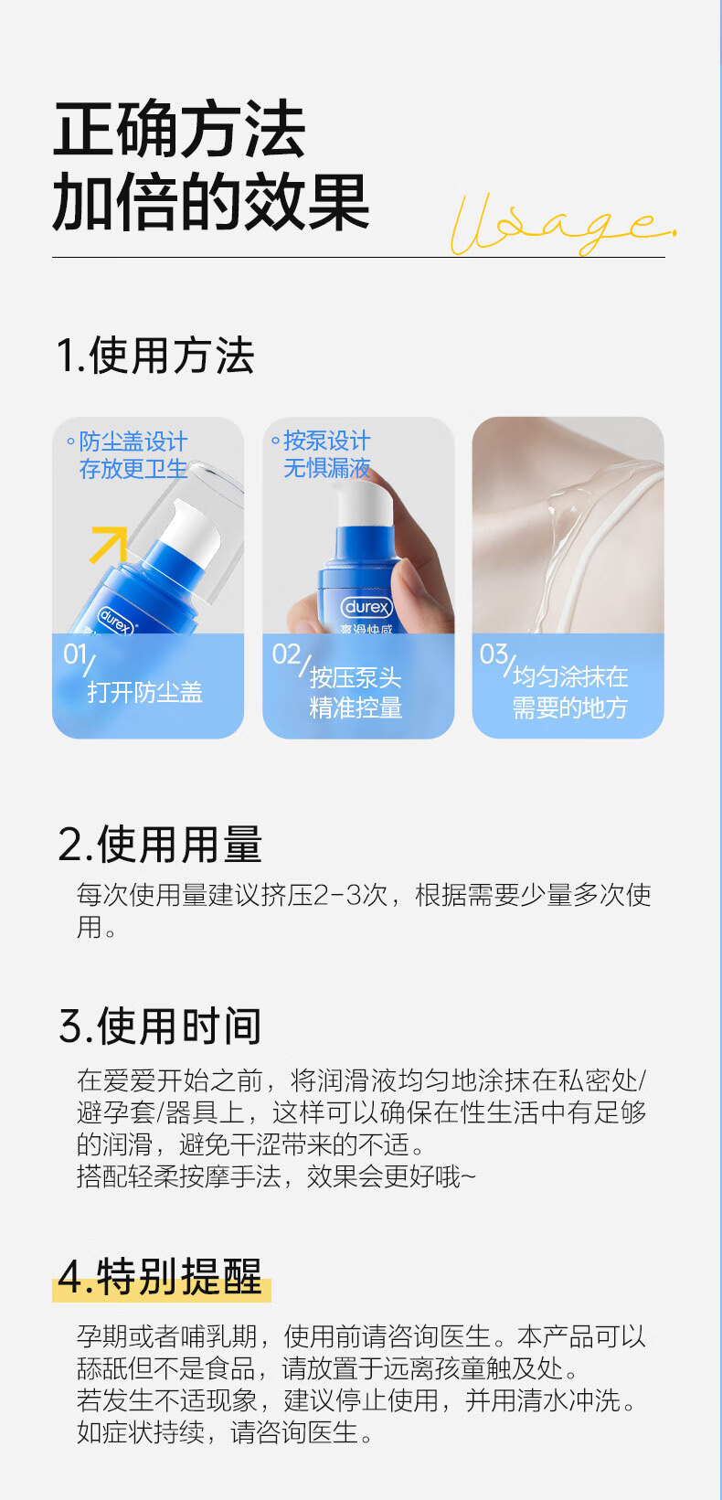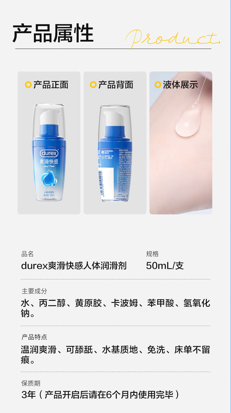 杜蕾斯(durex)人体润滑液50ml润滑油成人房事免洗可舔润滑剂夫妻用官方正品