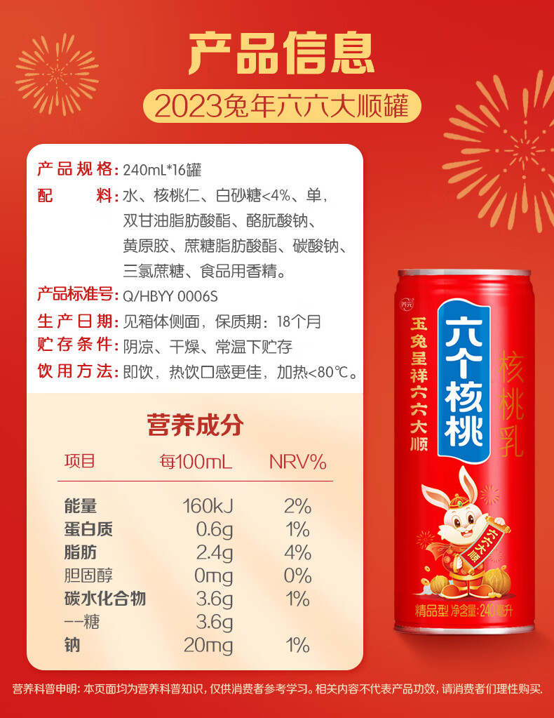 养元年货礼盒六个核桃必囤好礼240ml*16罐【无糖配方健康礼盒】