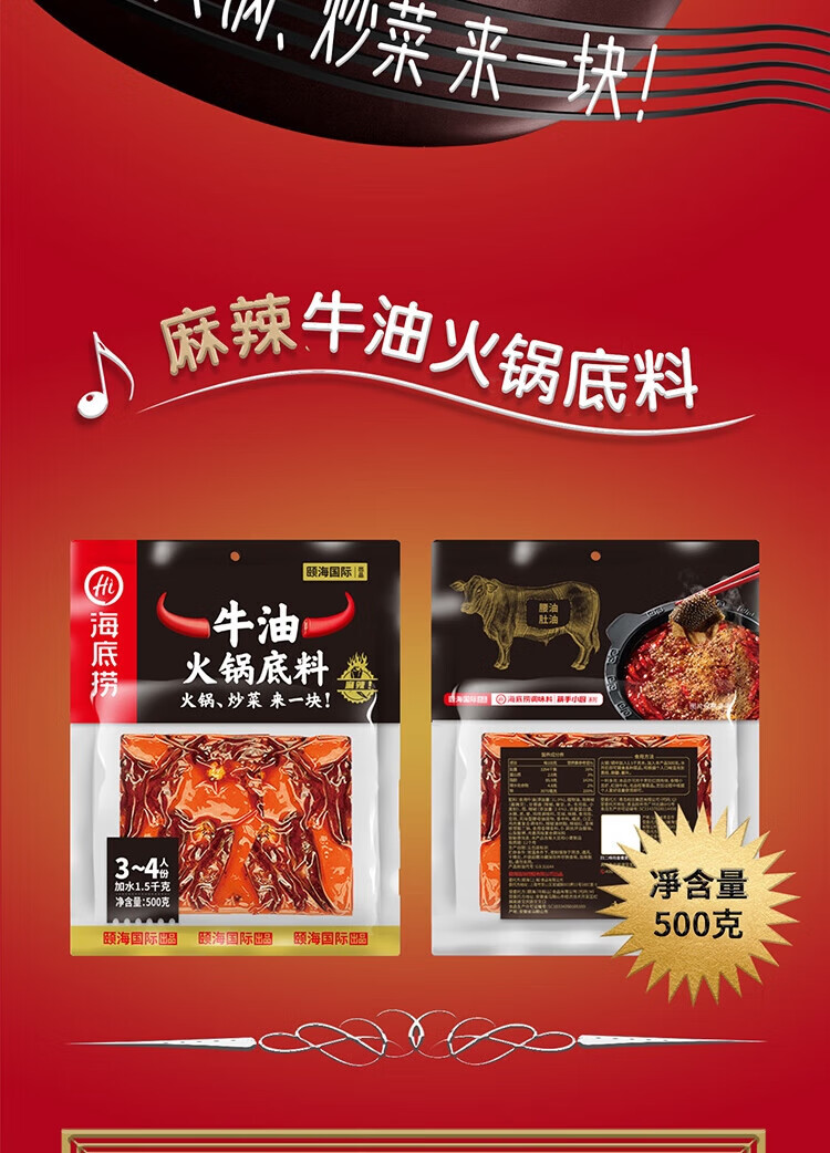 海底捞火锅底料 牛油麻辣火锅块状底料500g浓香手工牛油升级版