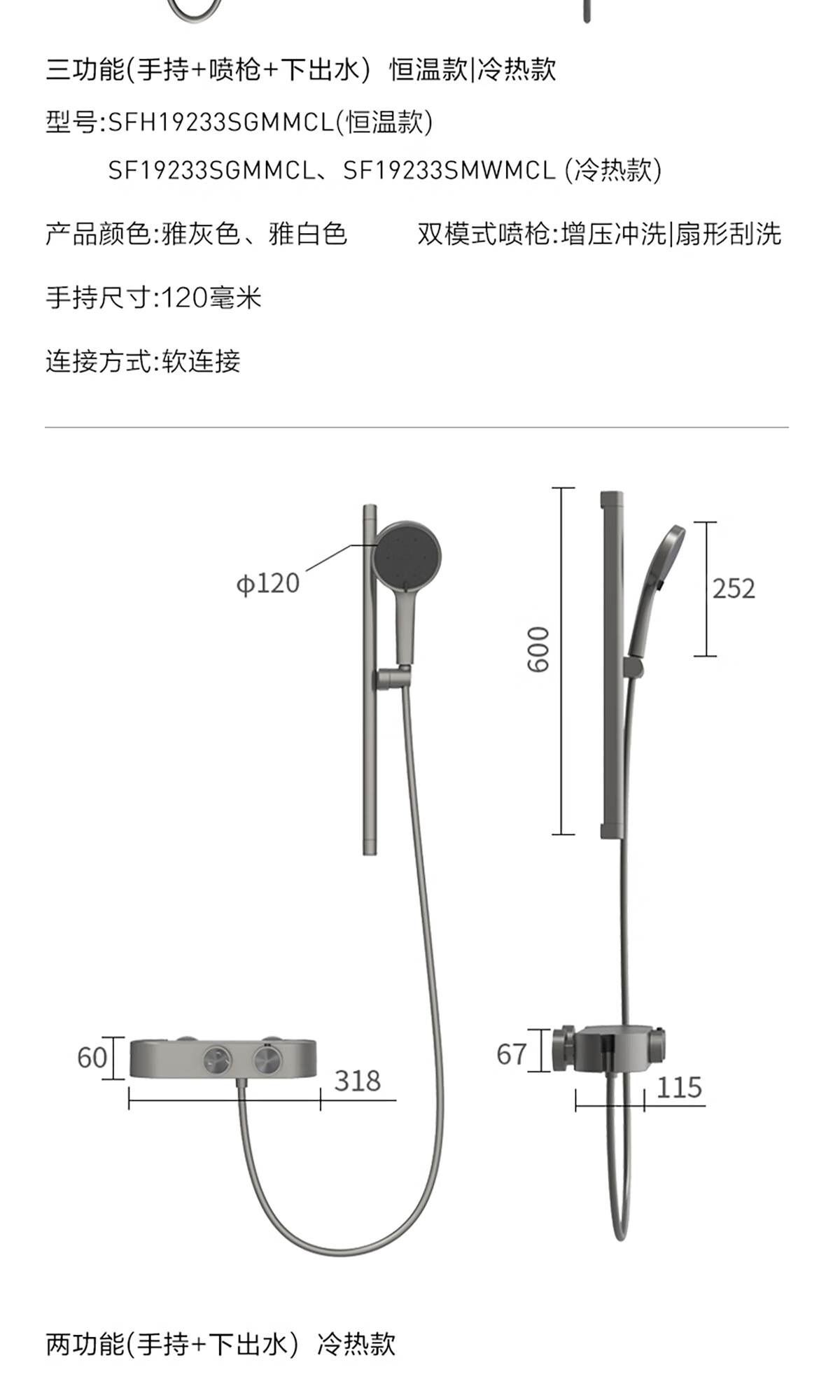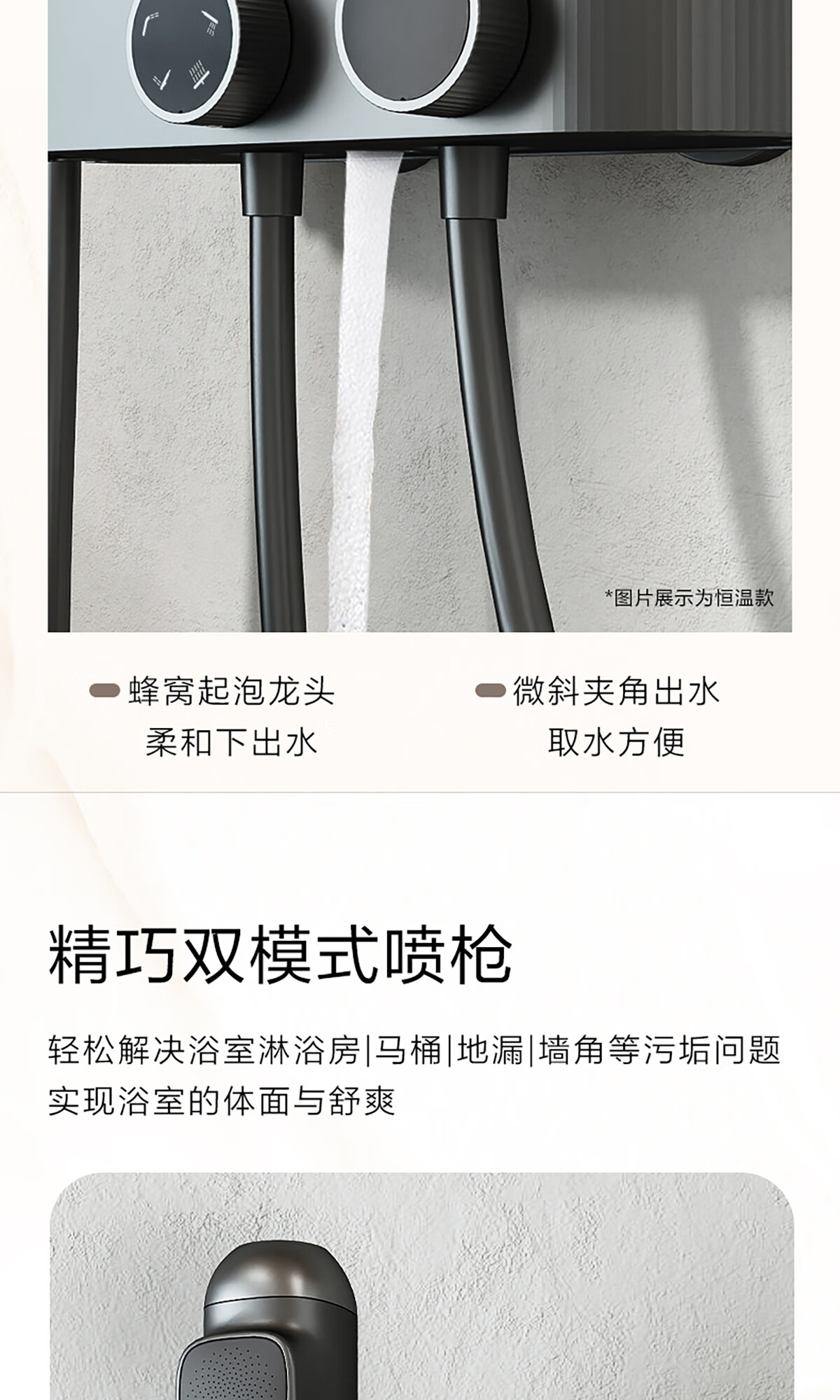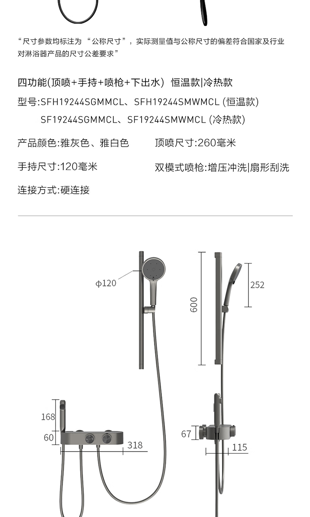 悍高(HIGOLD)淋浴花洒 四功能数显花洒套装浴室枪灰色家用明装淋浴套装 四功能天瀑增压花洒(枪灰色)