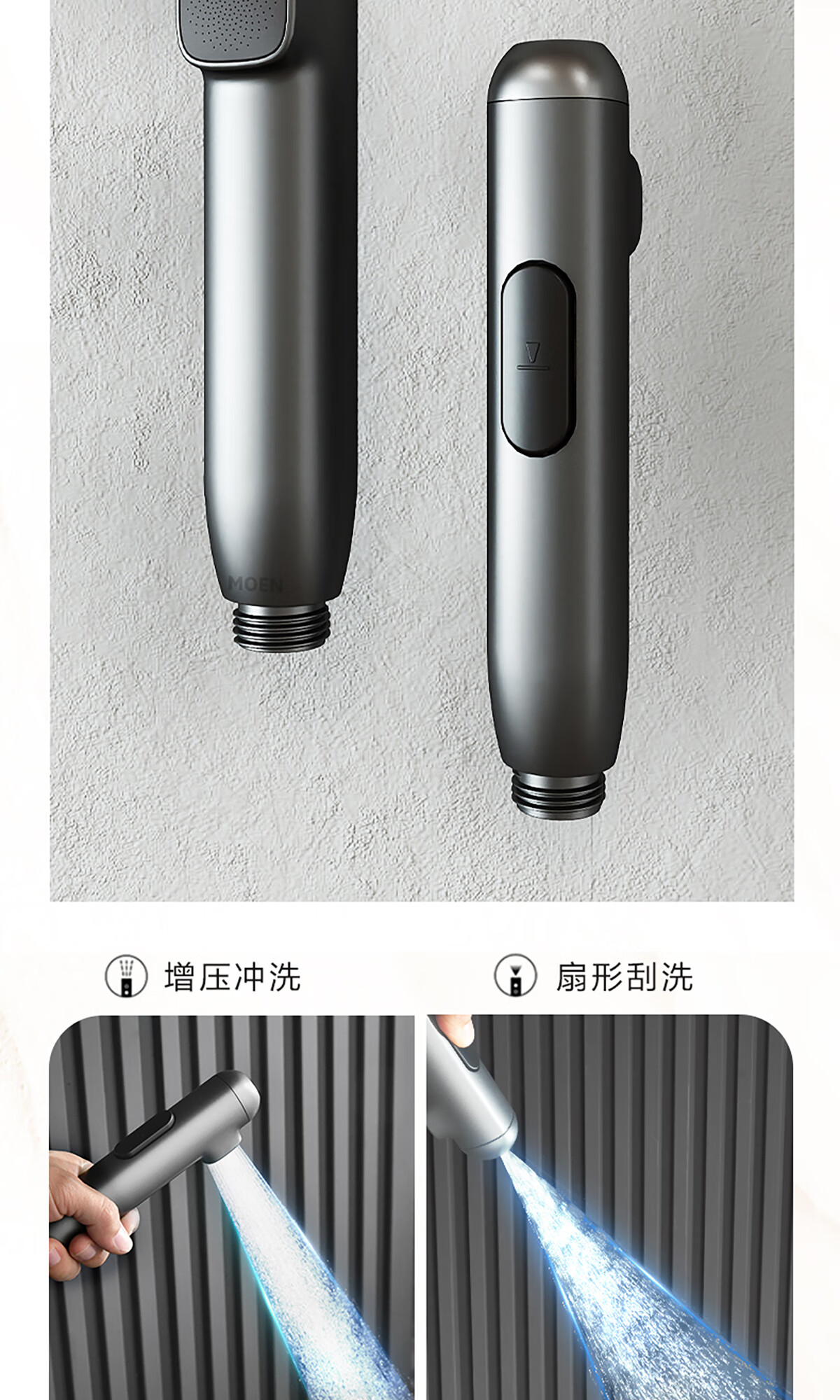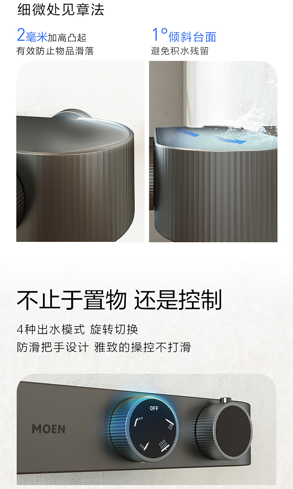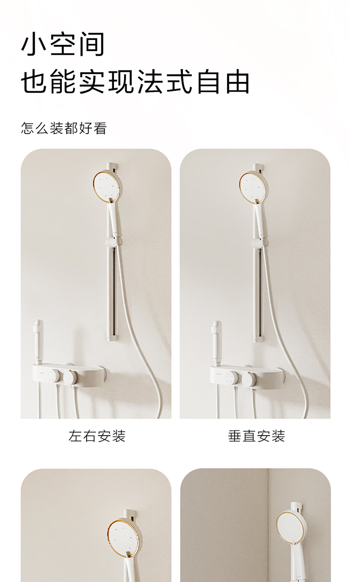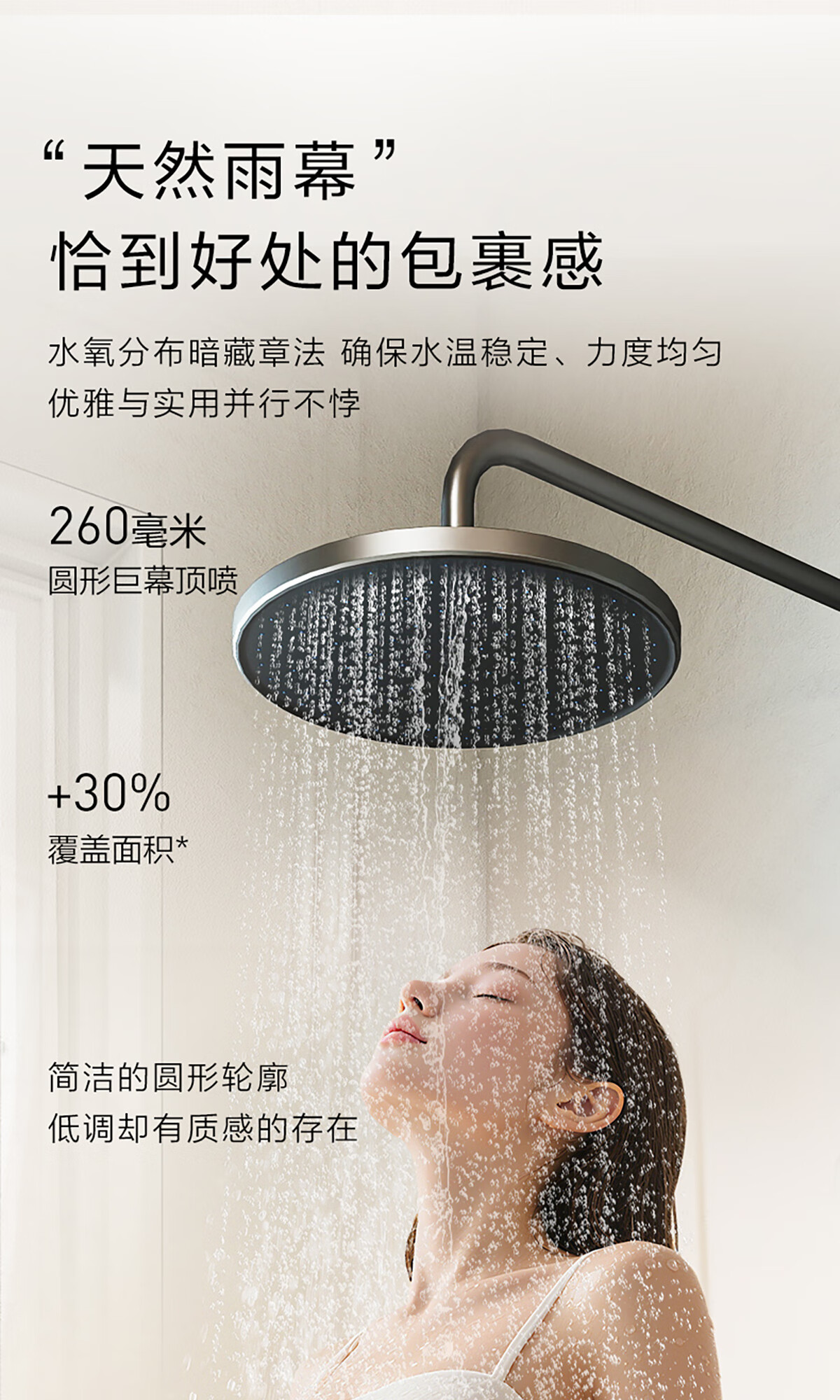 摩恩(MOEN)【迷住专属】贝拉系列花洒套装奶油风空气增压大平台置物淋浴器 恒温下出水+手持+顶喷+喷枪白色