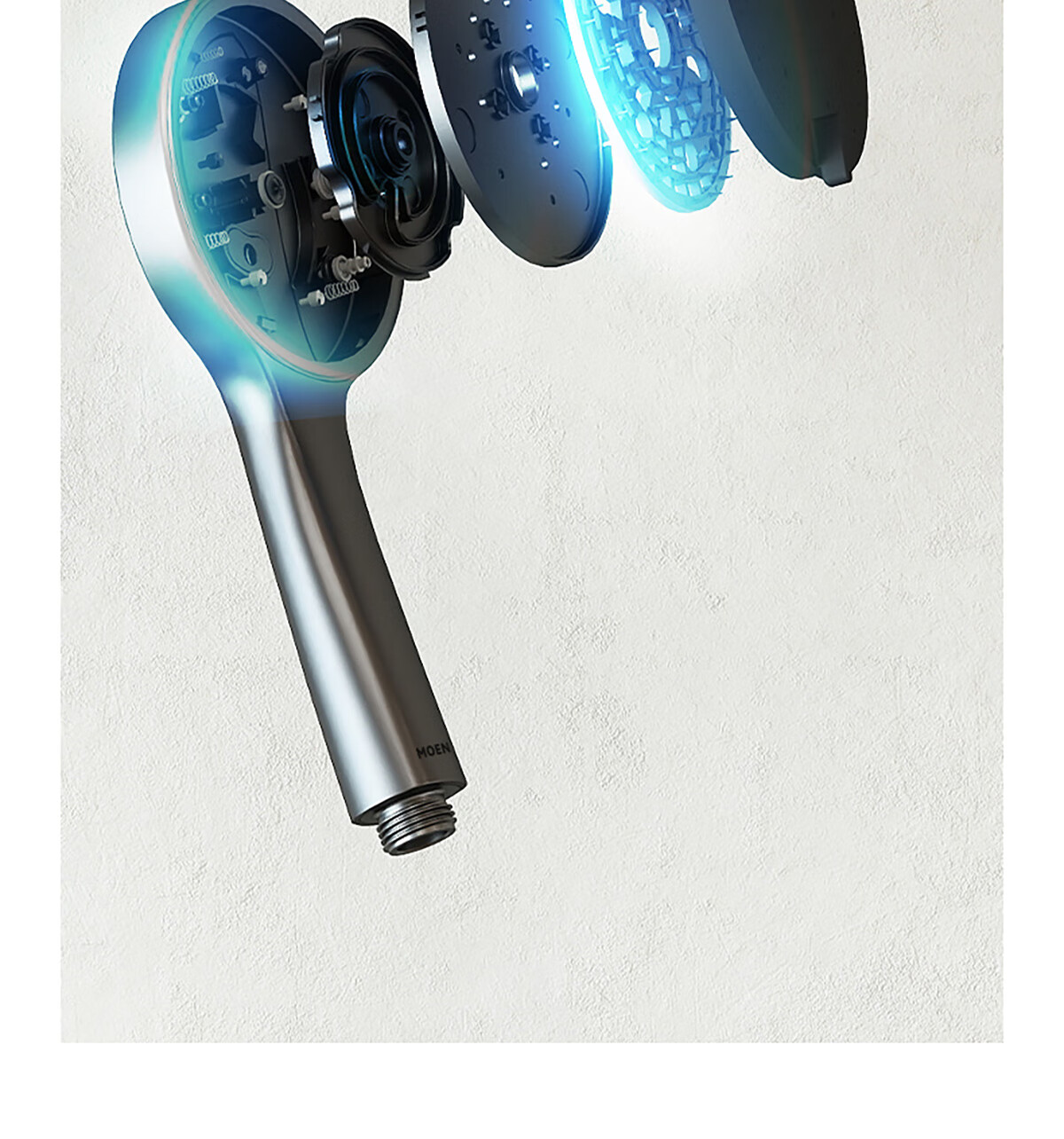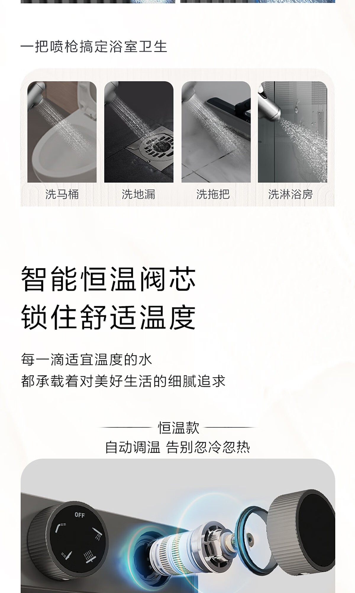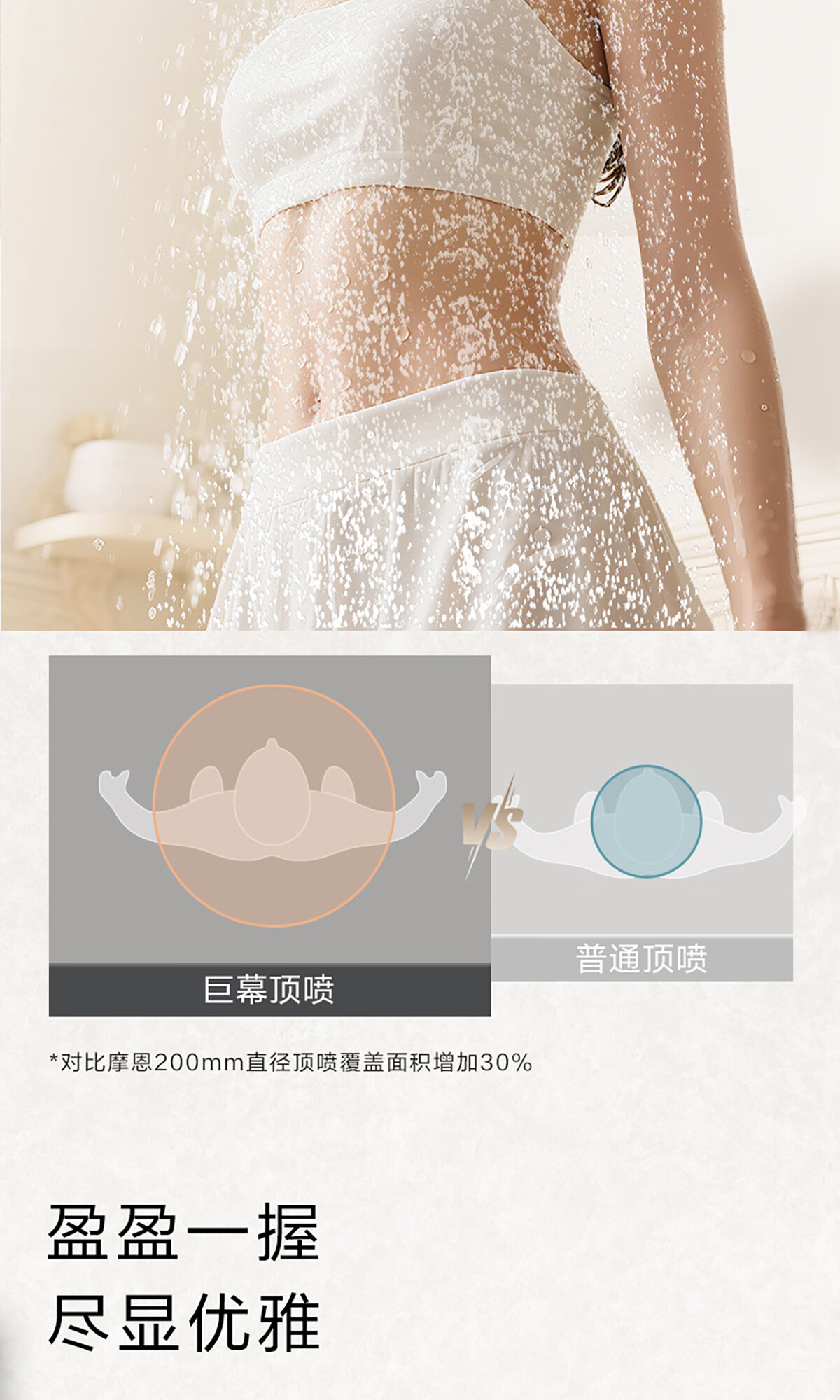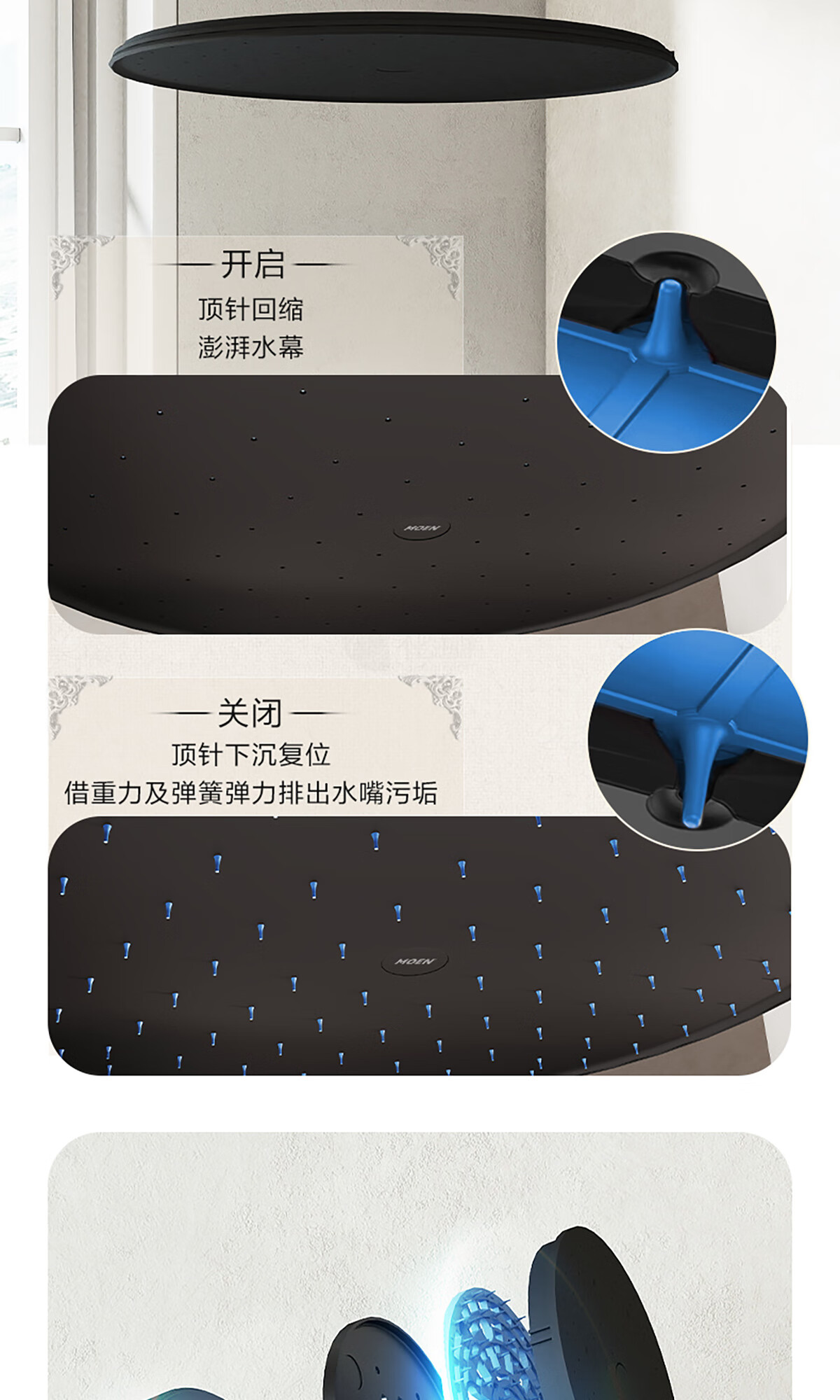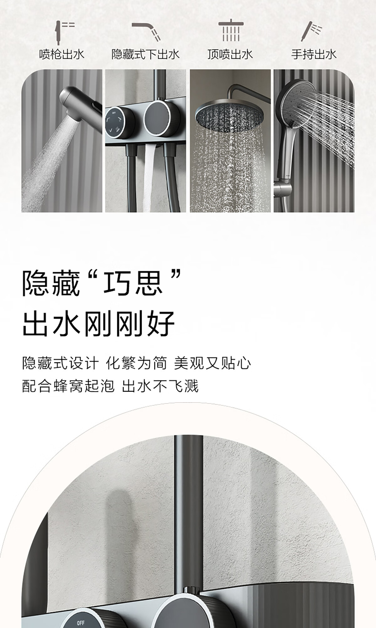 摩恩(MOEN)【迷住专属】贝拉系列花洒套装奶油风空气增压大平台置物淋浴器 恒温下出水+手持+顶喷+喷枪白色