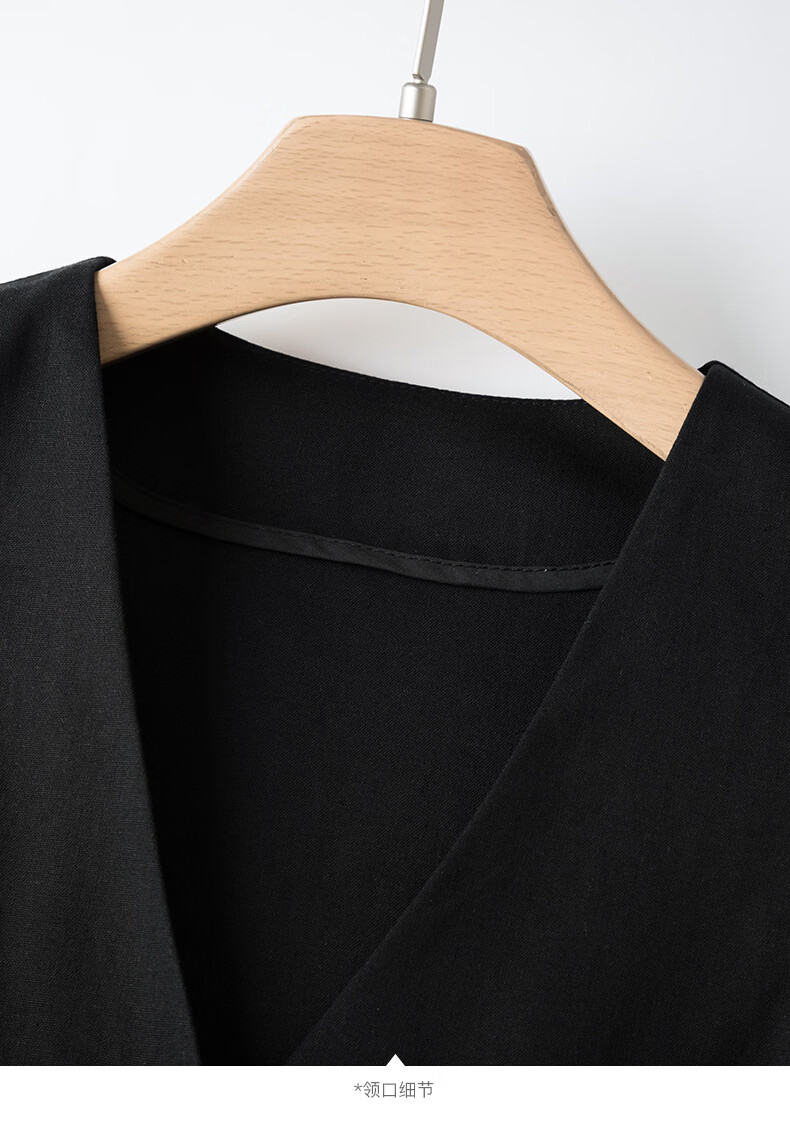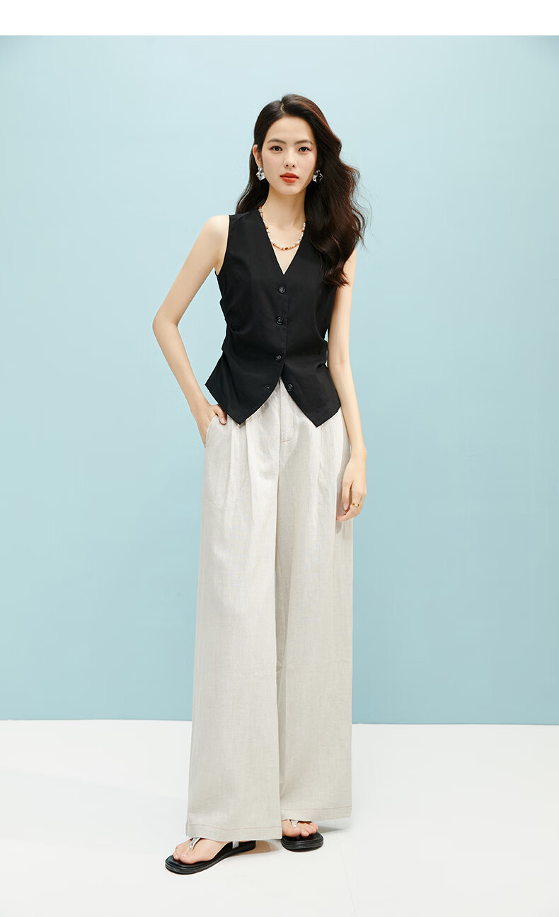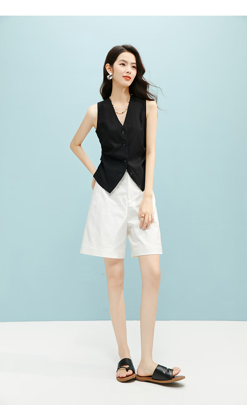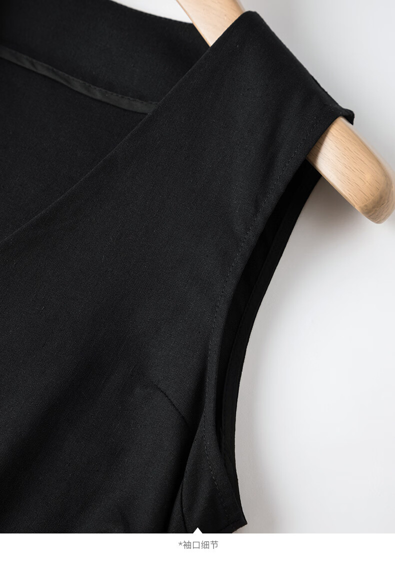 晚白【新品】2026年春款经典V领棉麻上衣透气收腰黑色西装马夹女 黑色 S