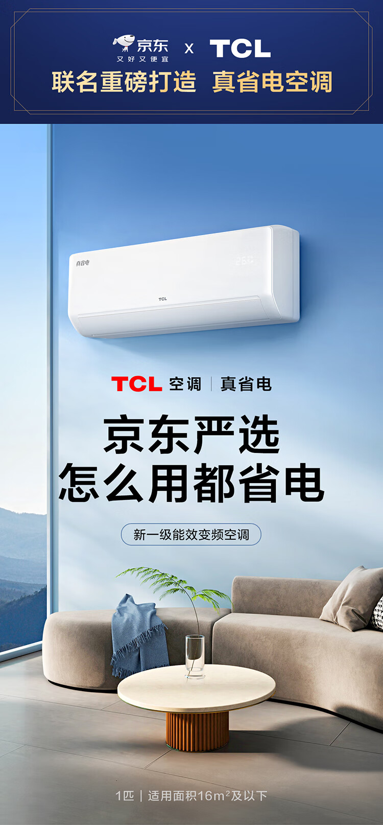 TCL空调新品京东联名真省电大1匹新一级能效变频纯铜管冷暖壁挂式节能KFR-26GW/JD21+B1国家补贴