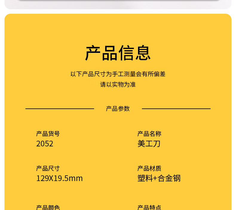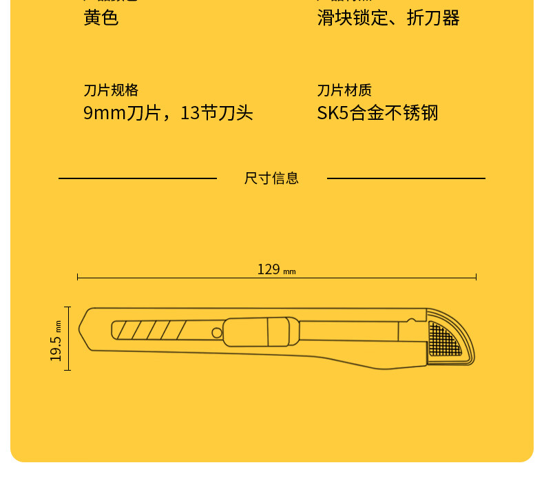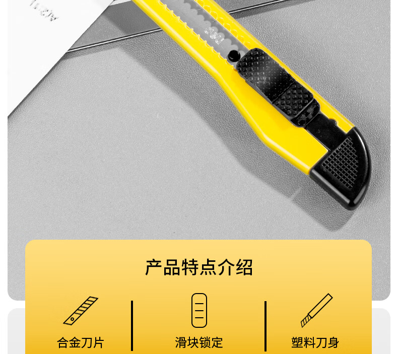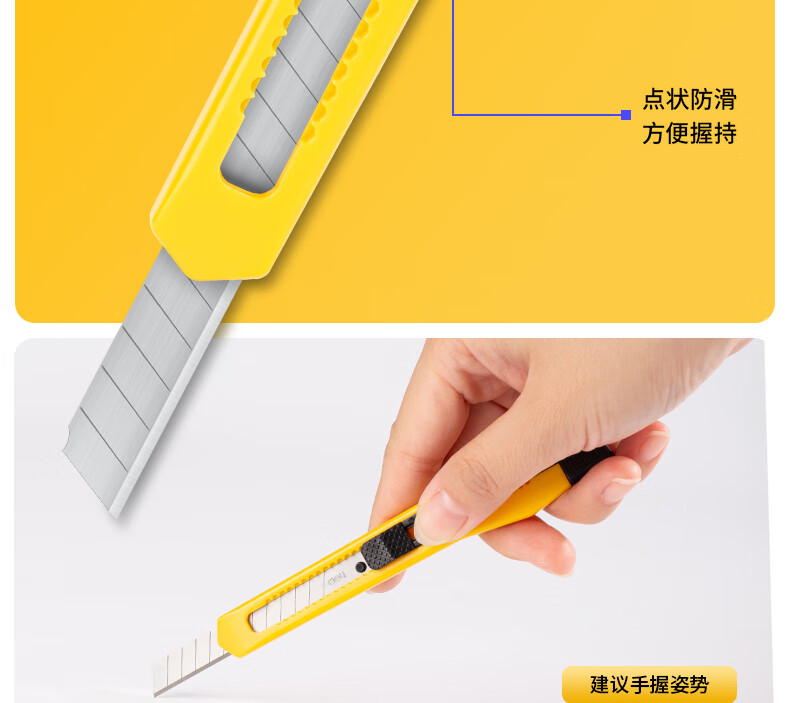 得力(deli)小号带金属护套办公美工刀/裁纸刀 办公用品 黄色2052