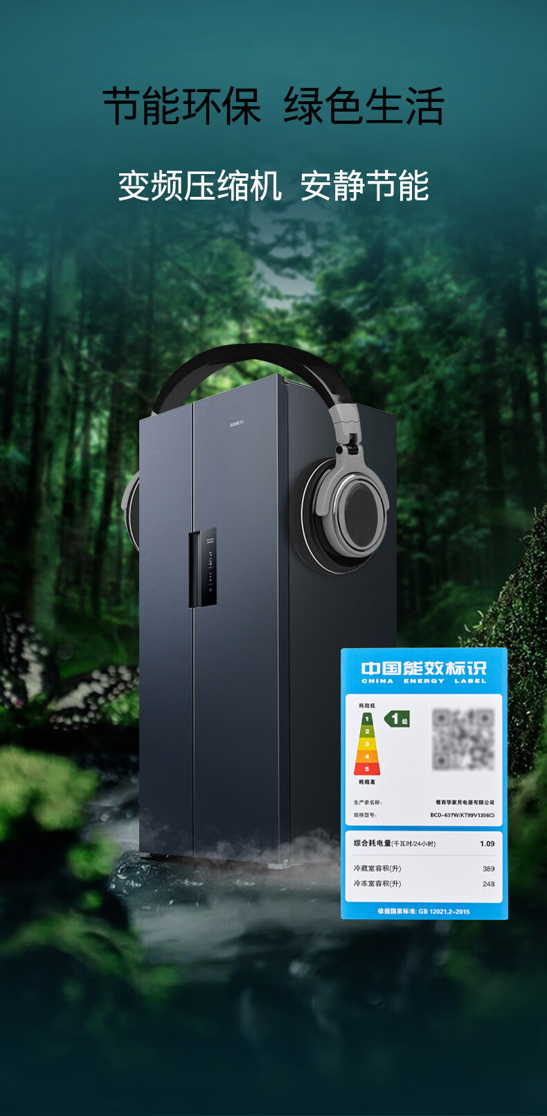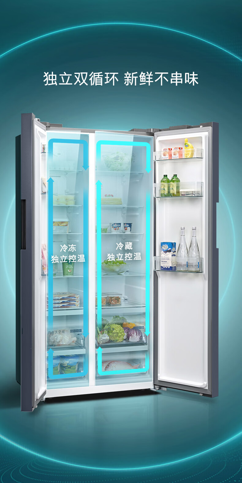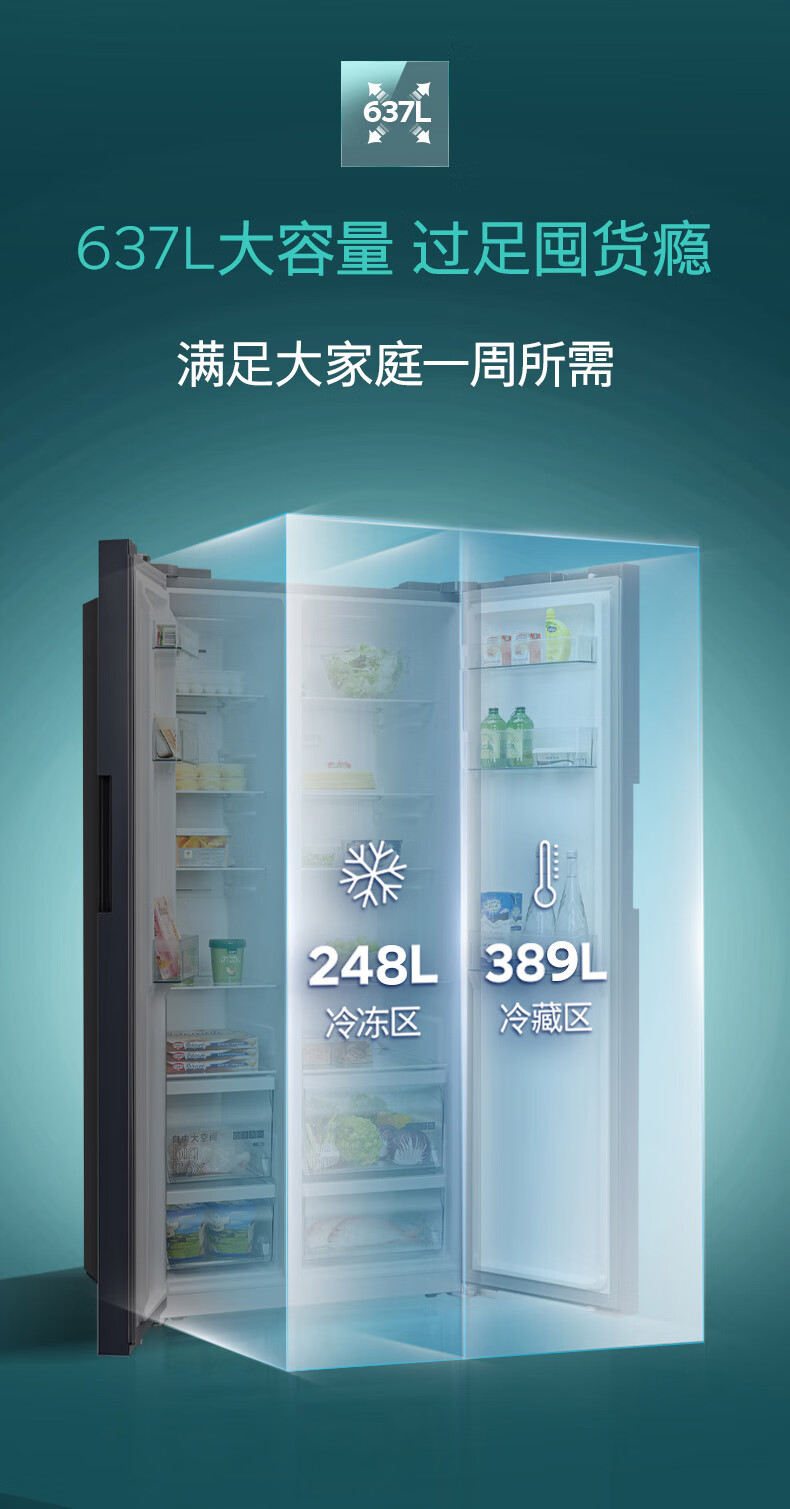 西门子(SIEMENS)精控恒鲜637L对开门冰箱 智能动态恒温 超大容量 一级能效 湖蕴蓝 KT99V1356C 国家补贴