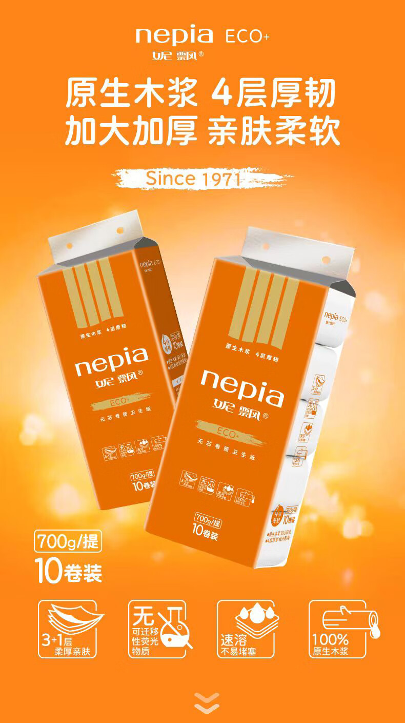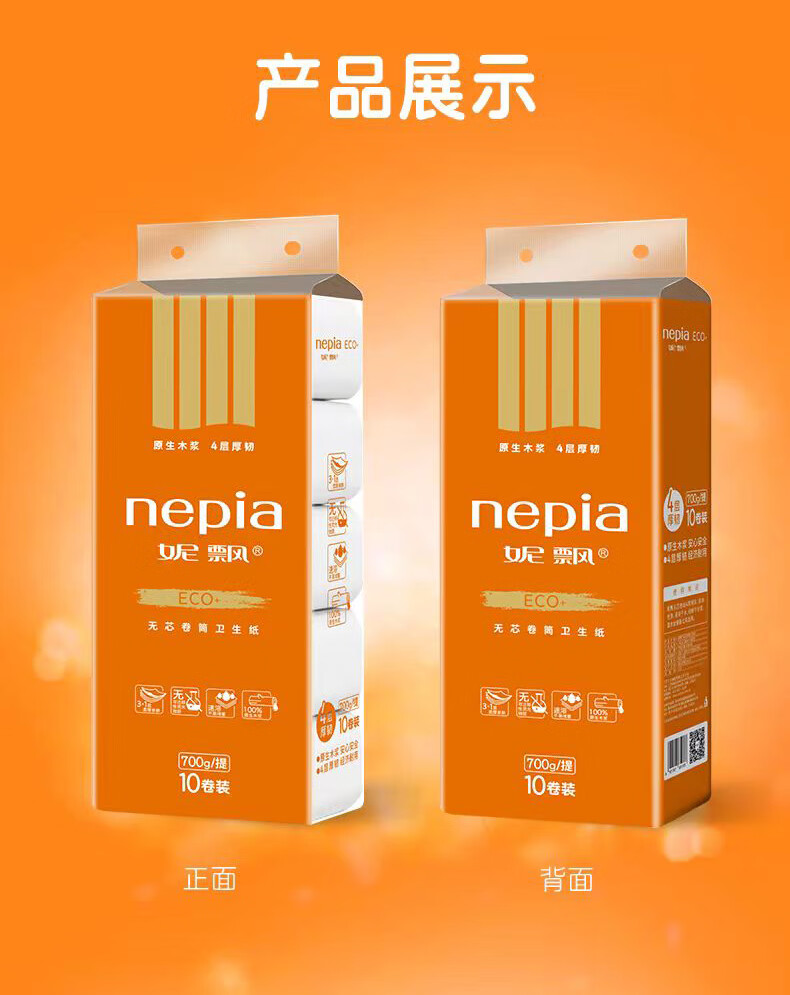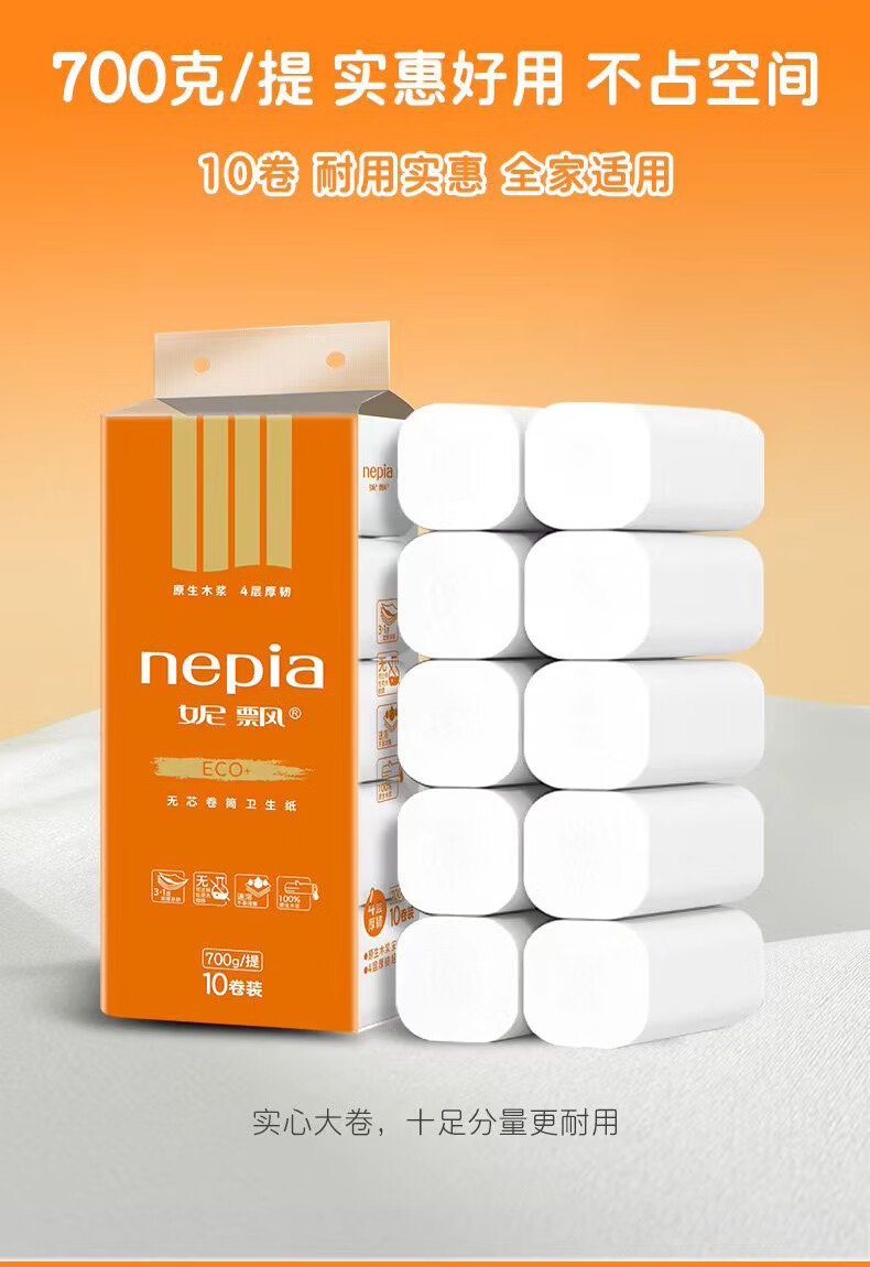 妮飘无芯卷纸700克4层家用卫生纸手纸10卷木浆纸 4层 70g/卷*10卷