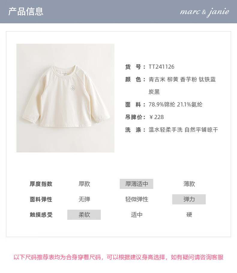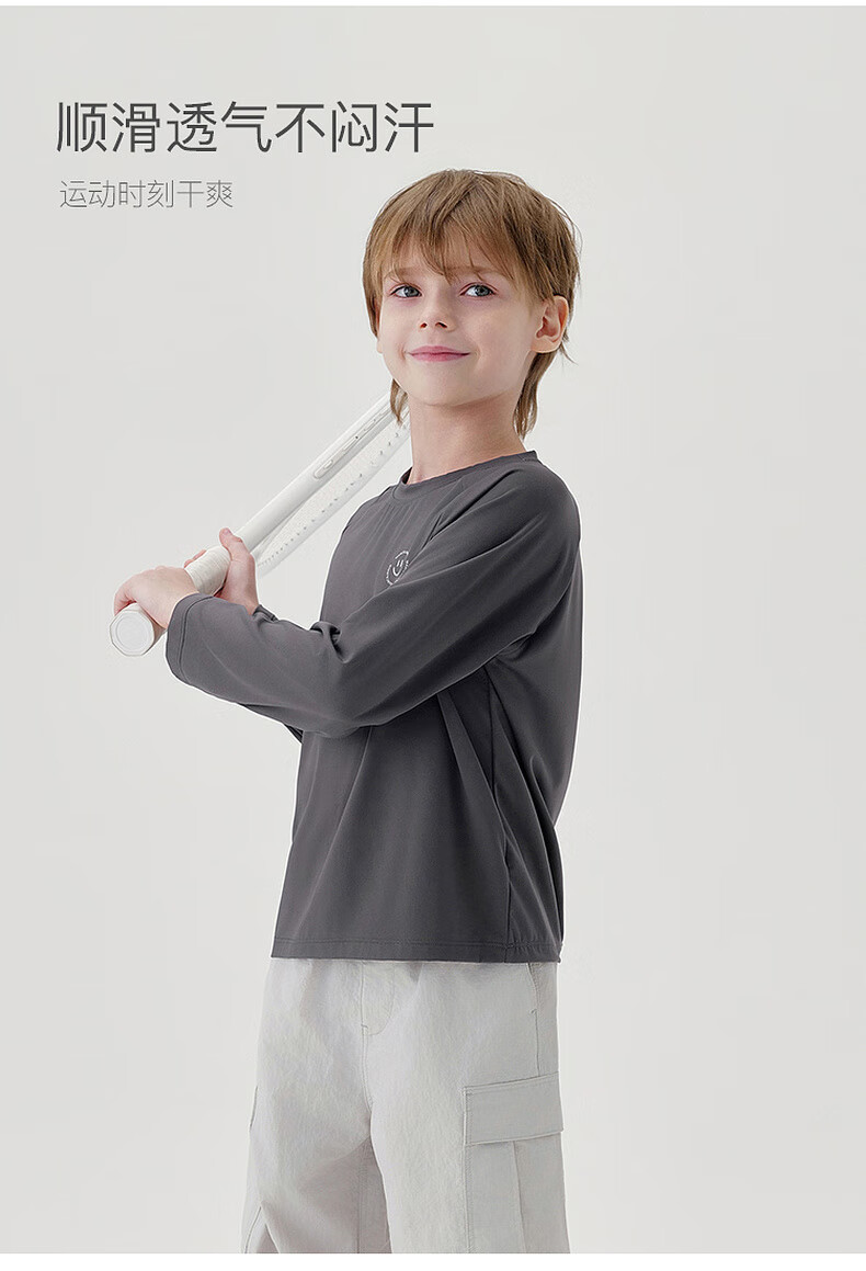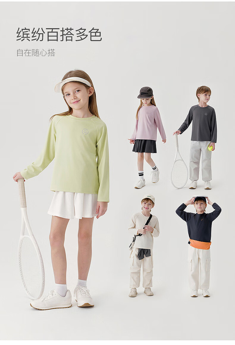 马克珍妮[商场同款]马克珍妮男女童弹力运动长袖T恤儿童上衣春秋新241126 柳黄 120 (建议身高111-120)