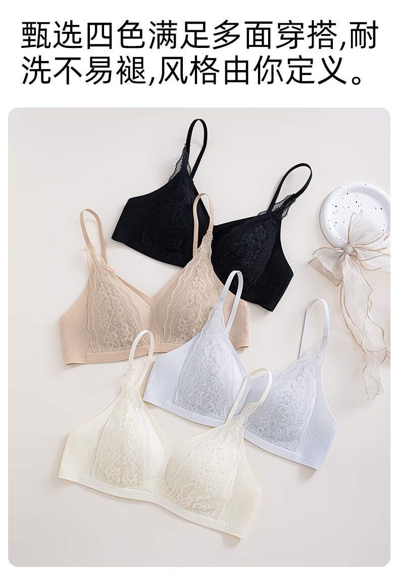 猫人【刘亦菲同款】内衣女聚拢小胸不空杯蕾丝美背抹胸三角杯文胸 冰蓝盒装 【蕾丝提拉 性感美背】 XL 【推荐38/85ABC 约 120-135斤】