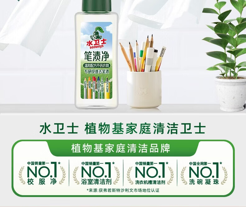水卫士笔渍净油性笔去除剂去笔渍笔迹神器多污渍可用去油除污衣服去渍笔 笔渍净50ml*2瓶