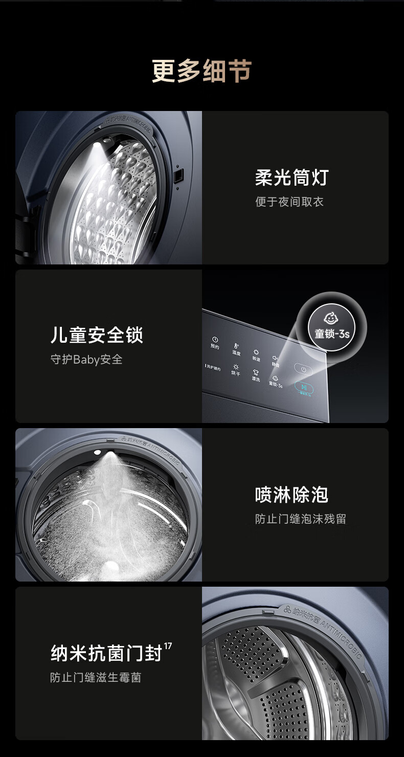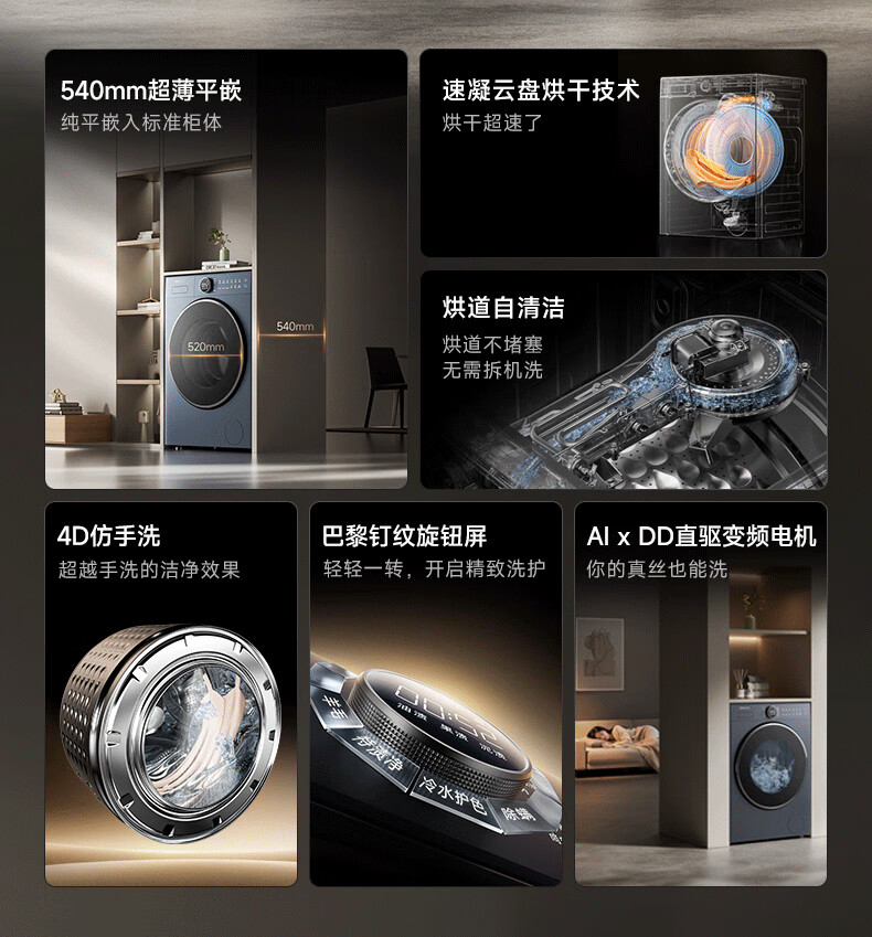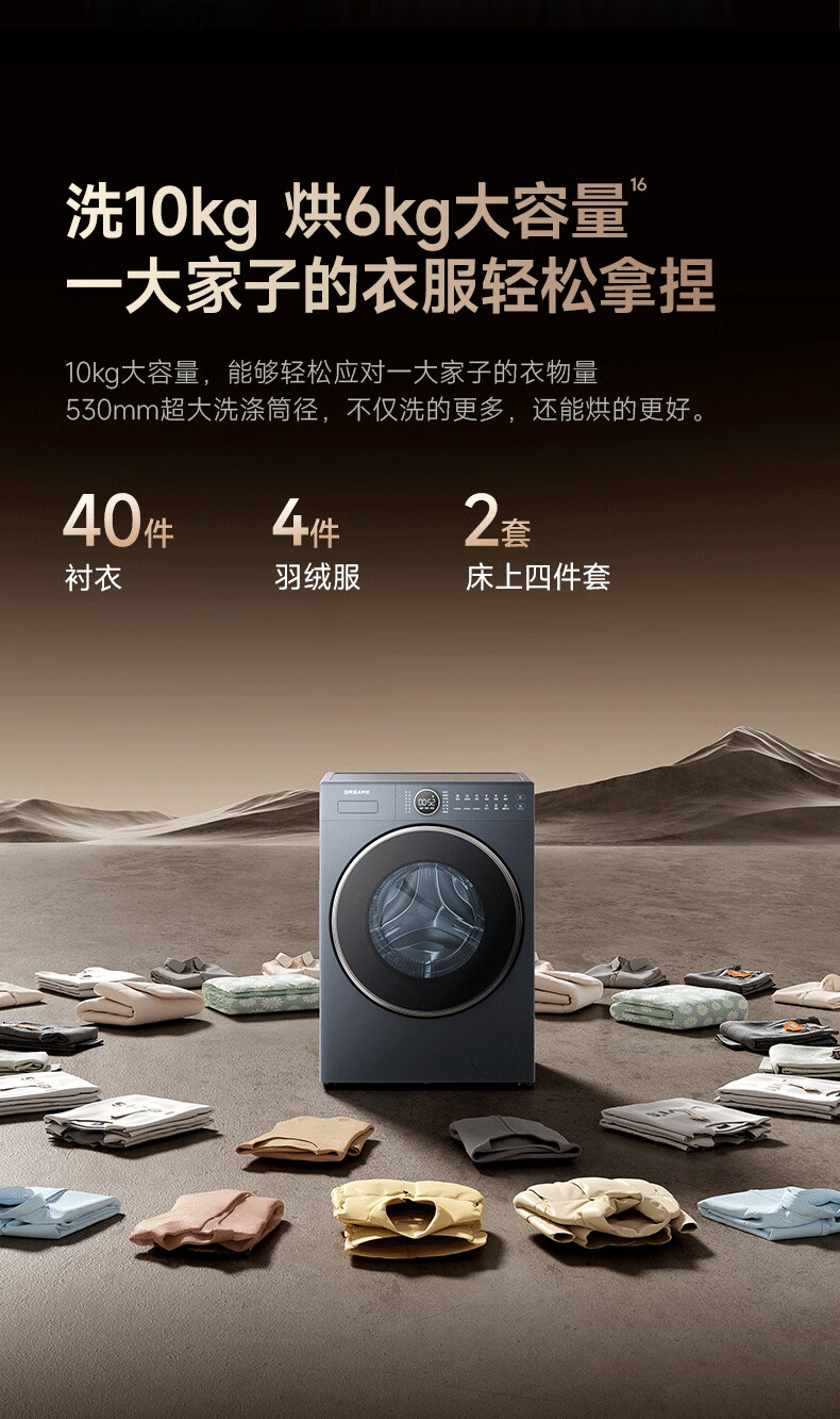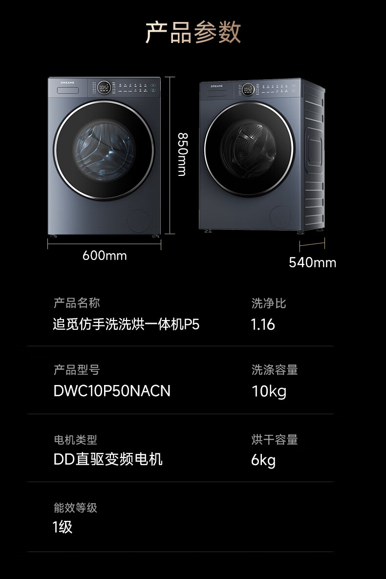 追觅P5滚筒洗烘10kg全自动家用洗衣机超薄平嵌DD变频电机大筒径带烘干冷水护色洗觅耀蓝DWC10P50NACN P5滚筒 洗烘一体 10kg 蓝
