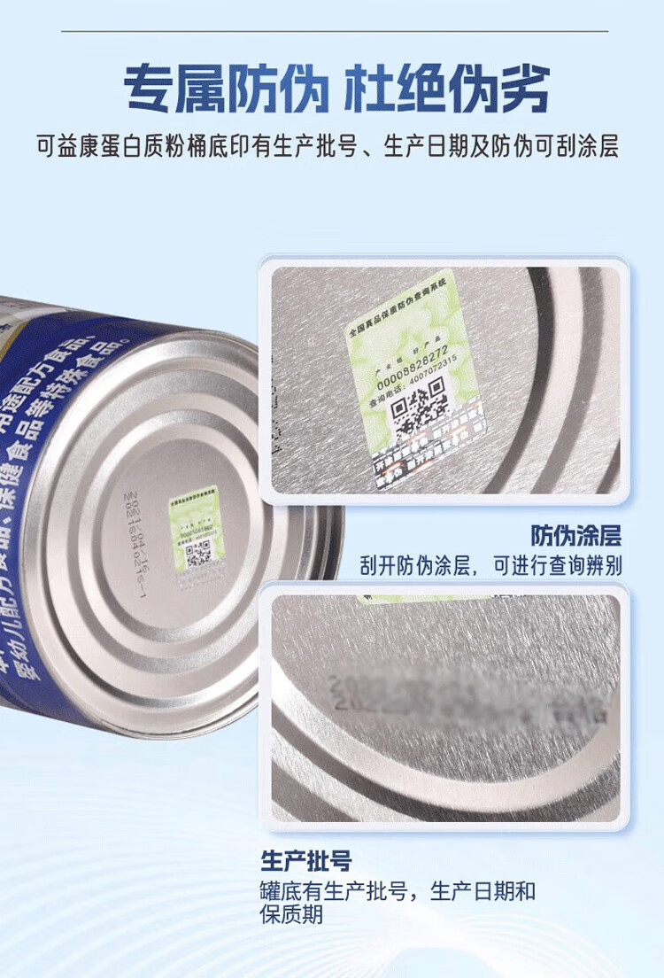 康恩贝 蛋白粉 有助于增强免疫力 蛋白质粉 成年中老年男女营养品 【礼袋装80%含量】蛋白粉 400g*2罐