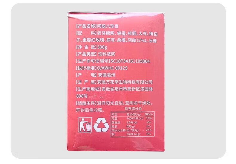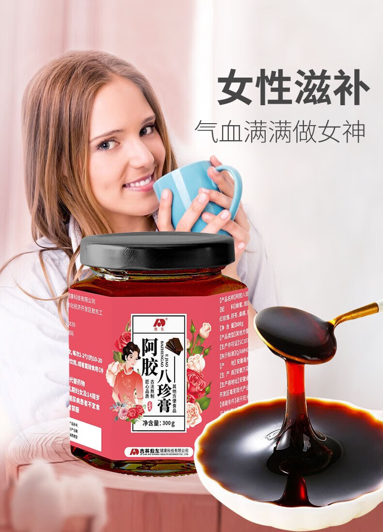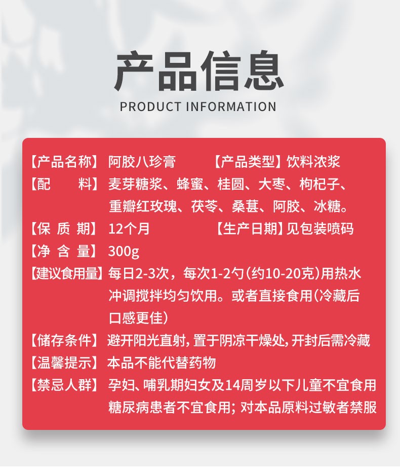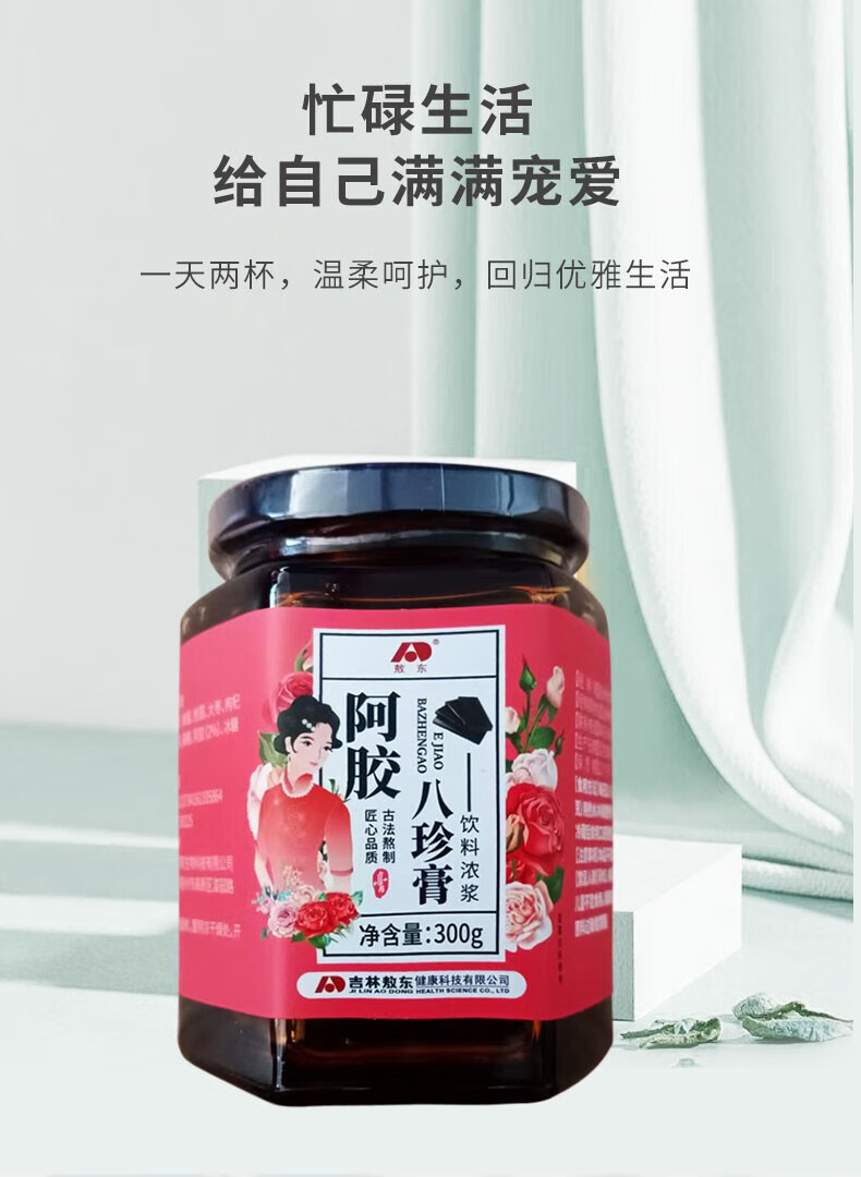 敖东阿胶八珍膏300g含蜂蜜桂圆大枣枸杞子重瓣红玫瑰茯苓桑椹阿胶冰糖 1盒装
