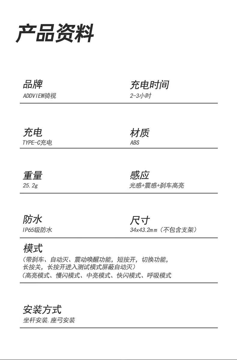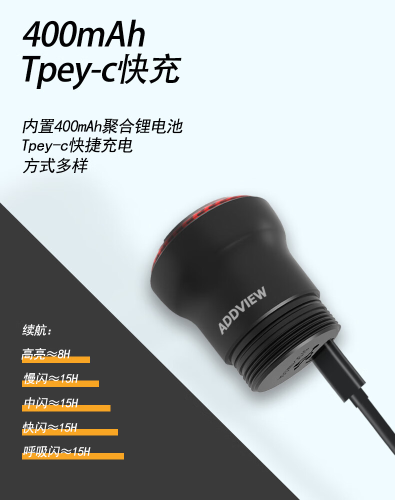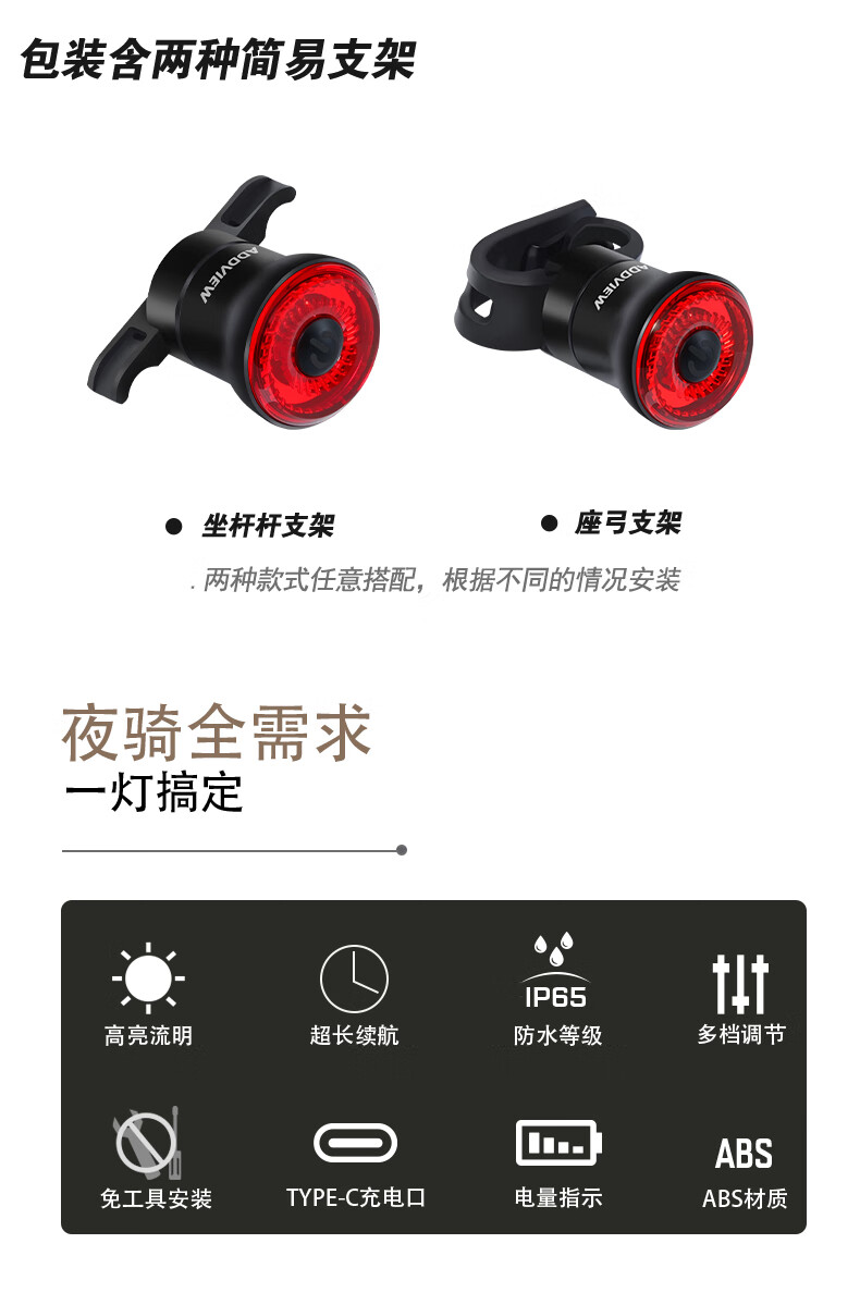 骑视(Addview)自行车尾灯夜骑灯骑行尾灯智能刹车感应骑行灯 800流明(2400毫安/铝合金)+尾灯