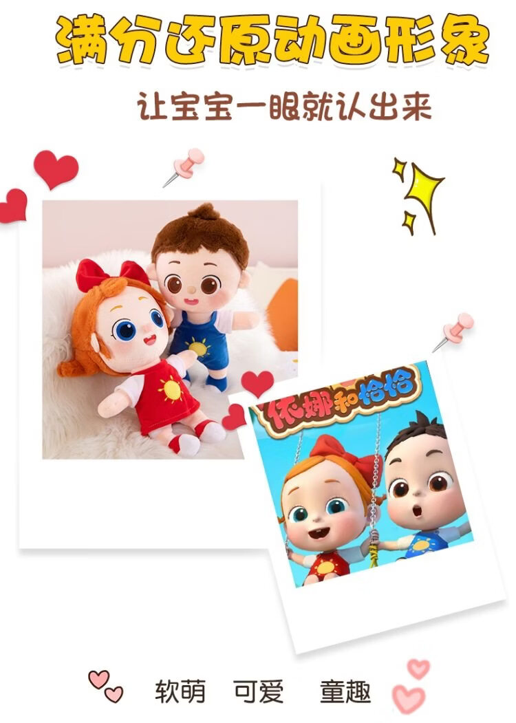 依娜和恰恰玩偶同款玩具毛绒娃娃公仔可爱婴儿童宝宝安抚生日礼物 依娜+恰恰