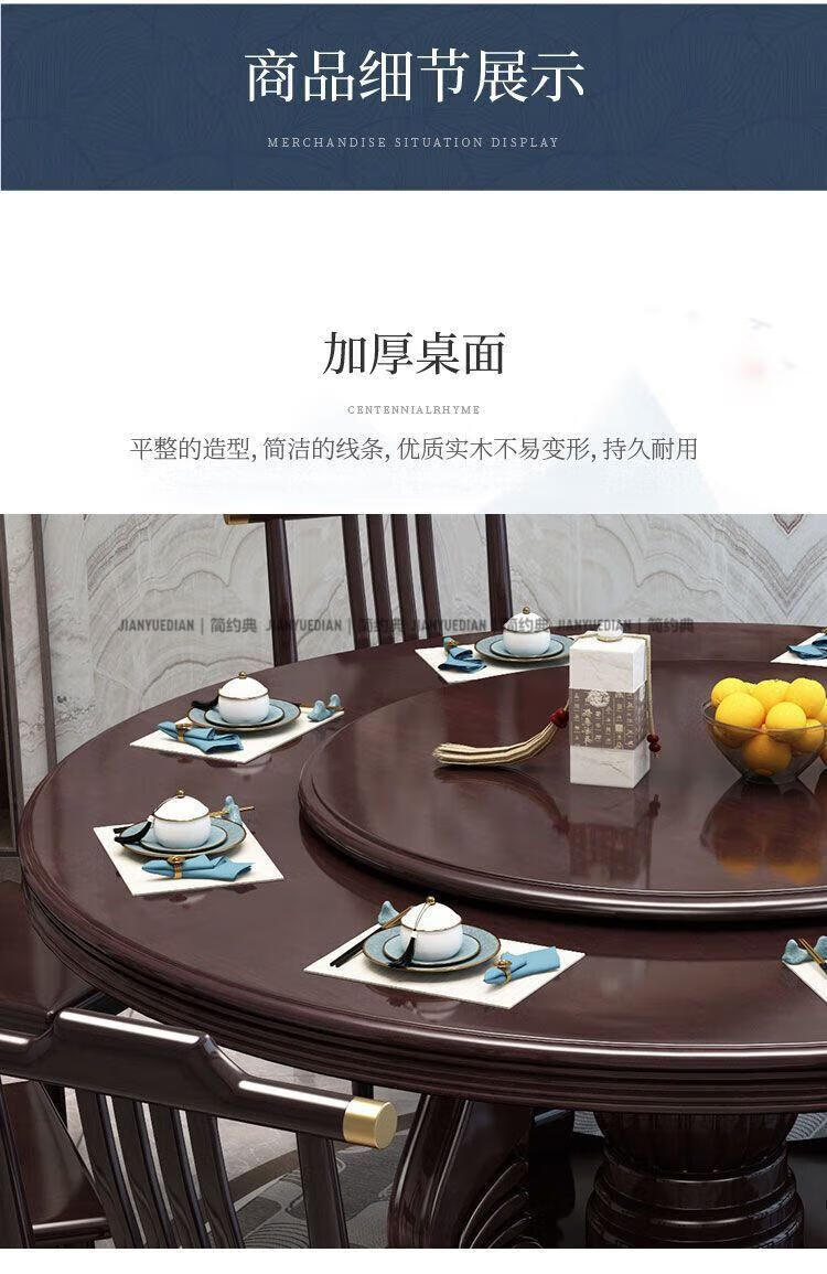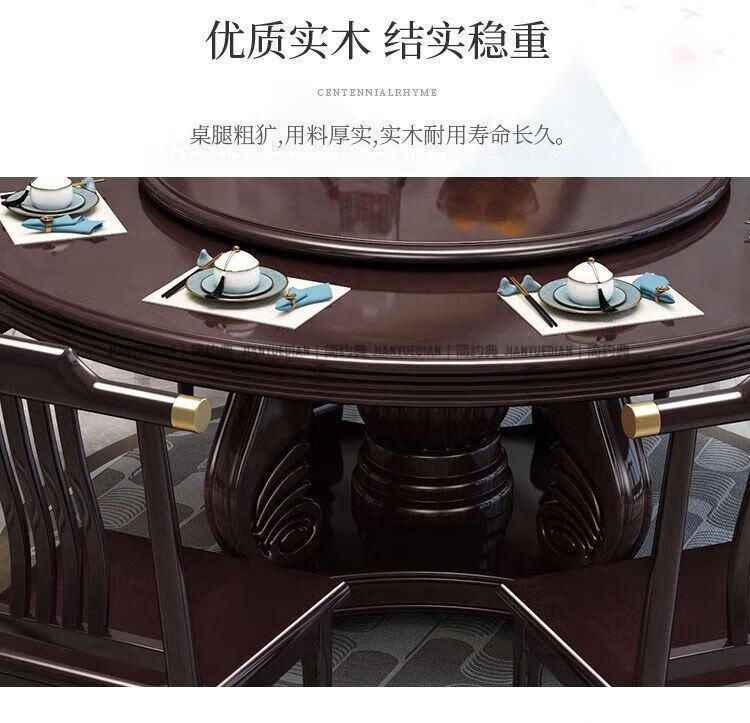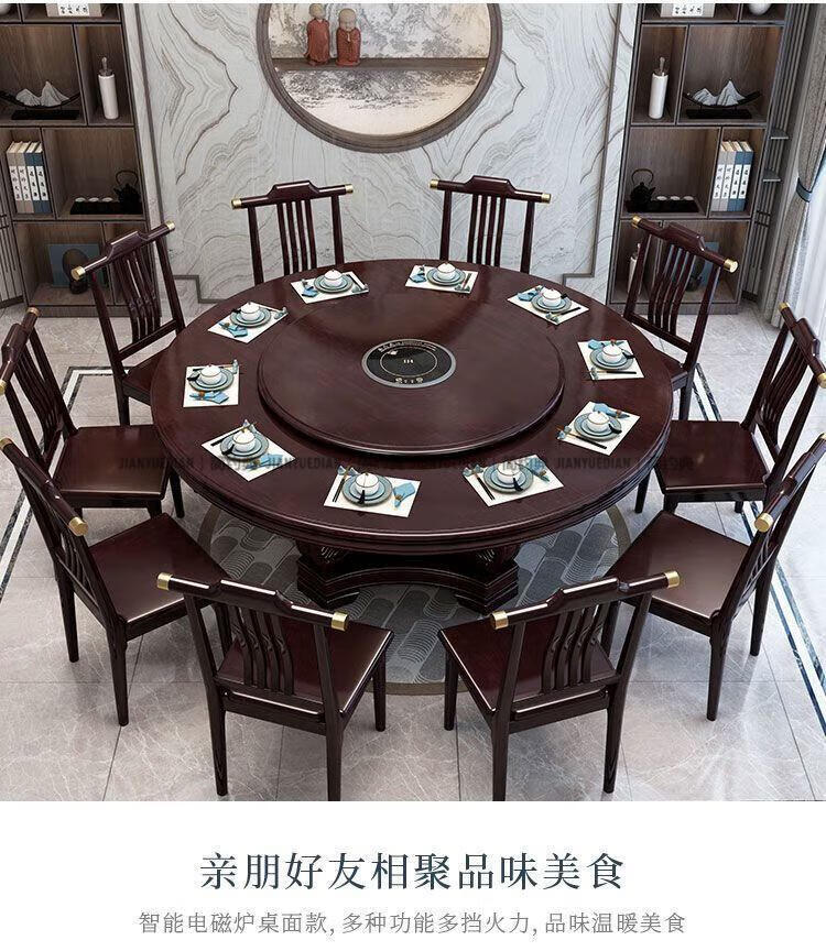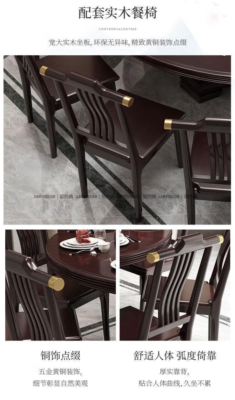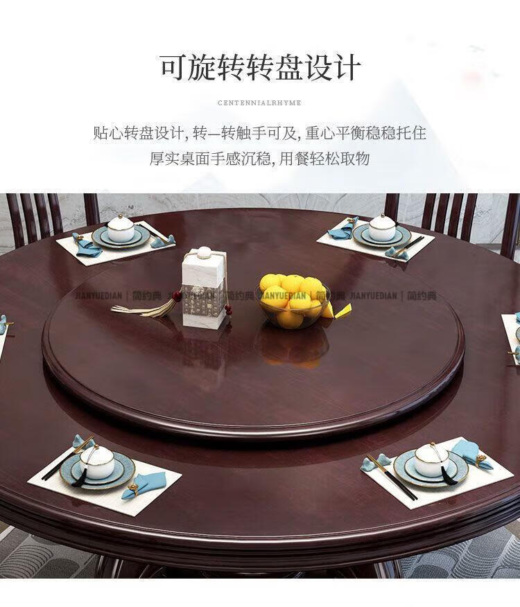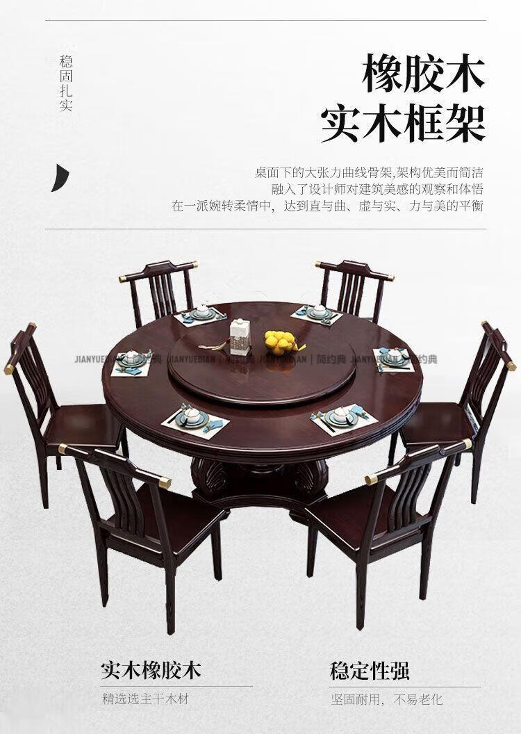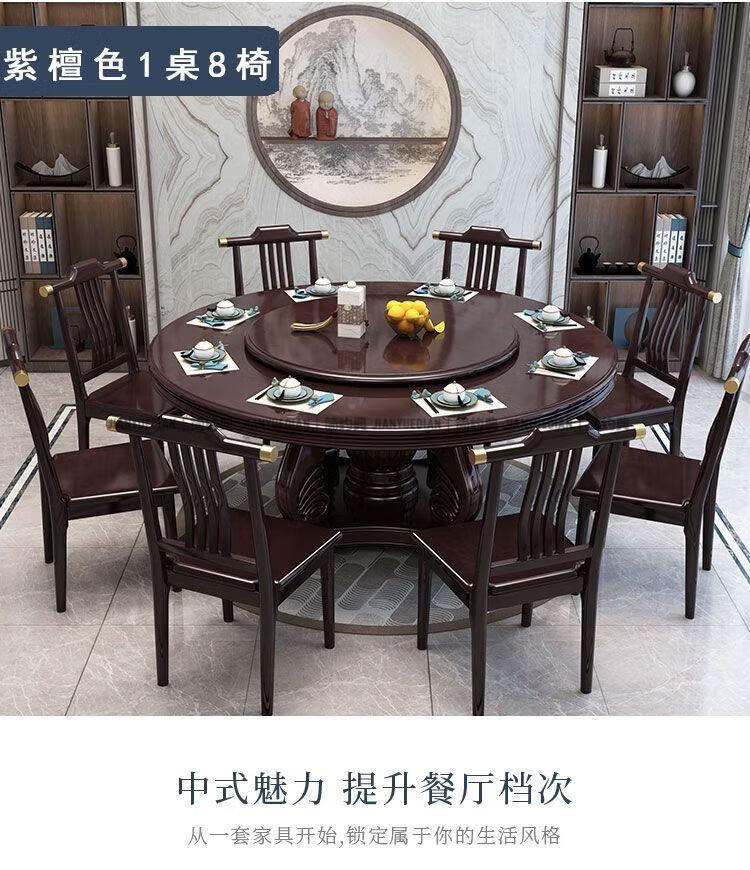 简约典2026新款实木餐桌椅组合新中式带转盘餐桌家用轻奢圆桌电磁炉饭桌 紫檀色 1.3m 一桌6椅[送转盘]