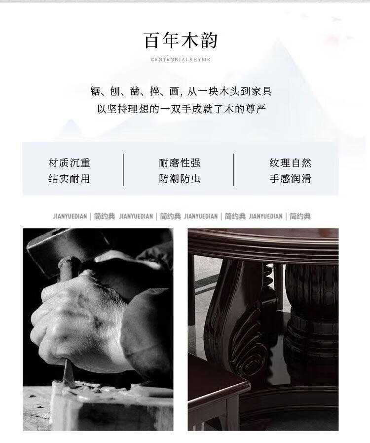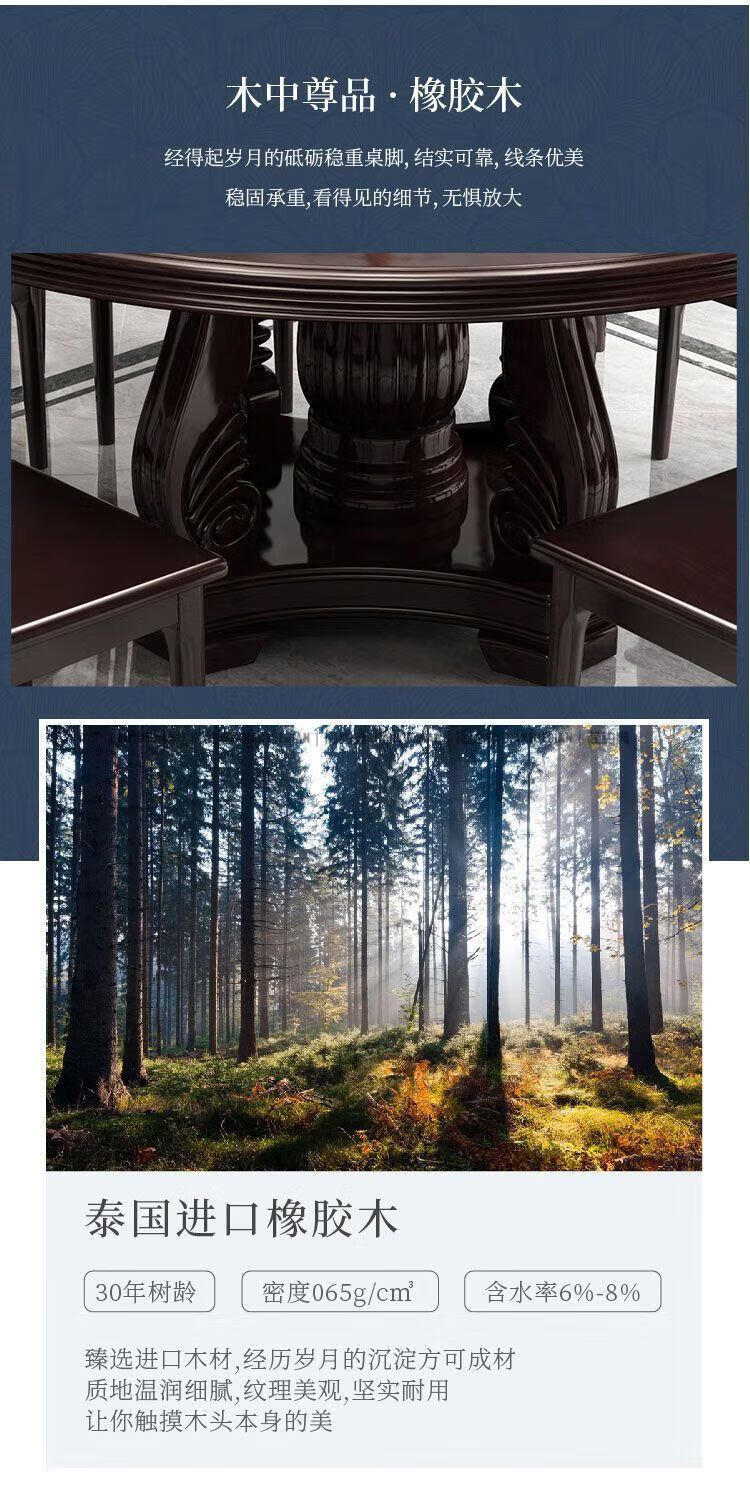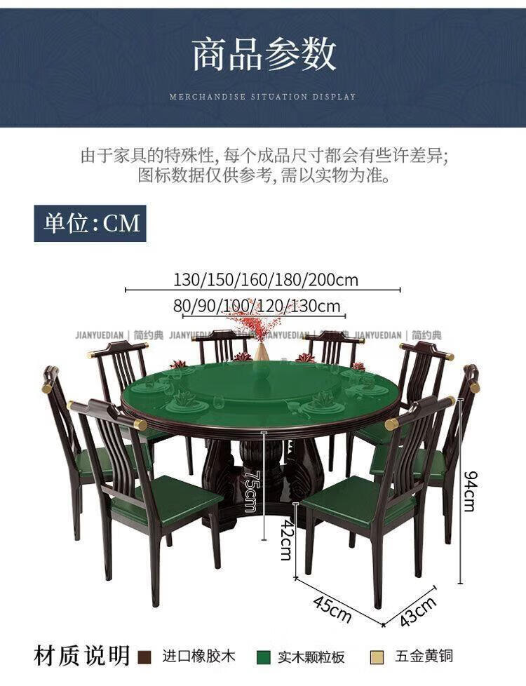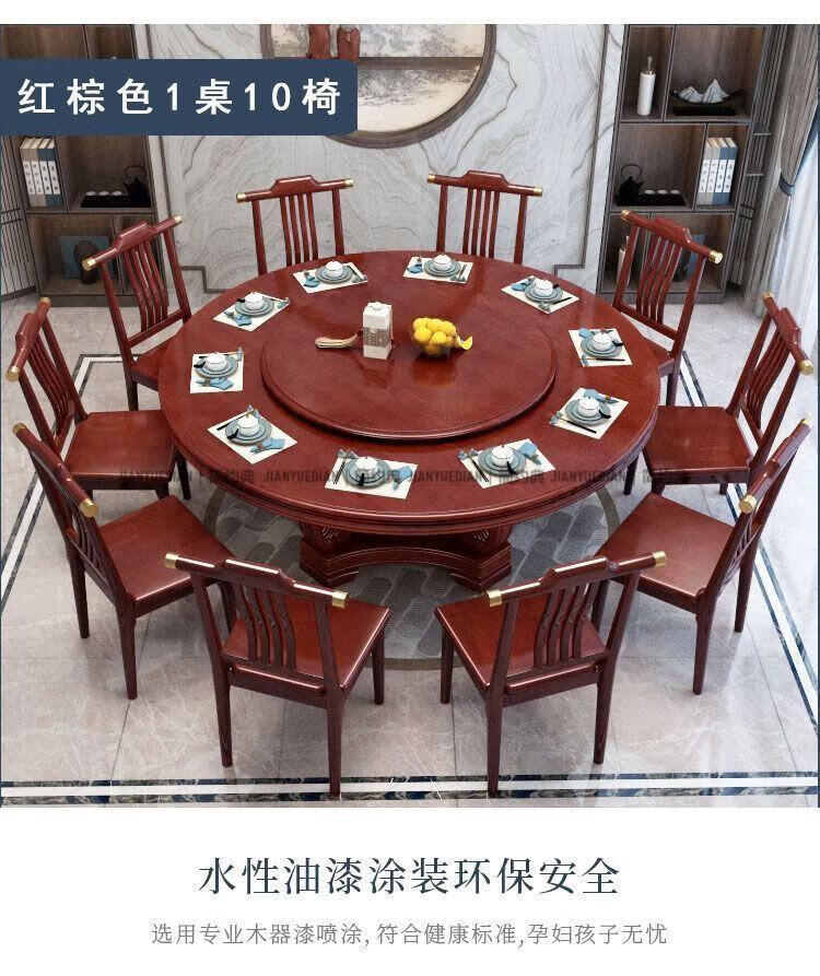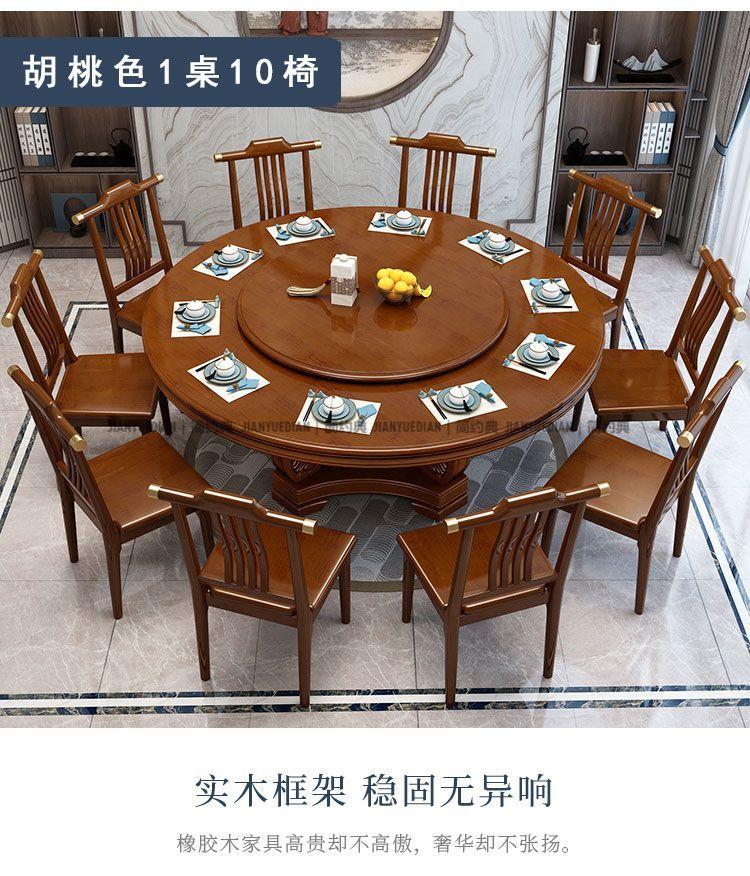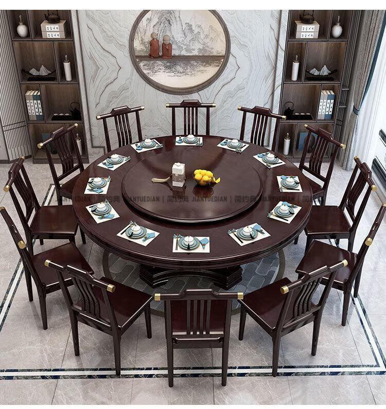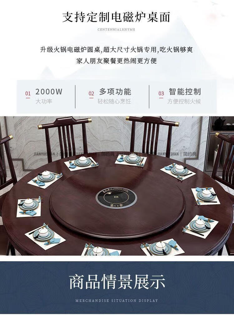 简约典2026新款实木餐桌椅组合新中式带转盘餐桌家用轻奢圆桌电磁炉饭桌 紫檀色 1.3m 一桌6椅[送转盘]