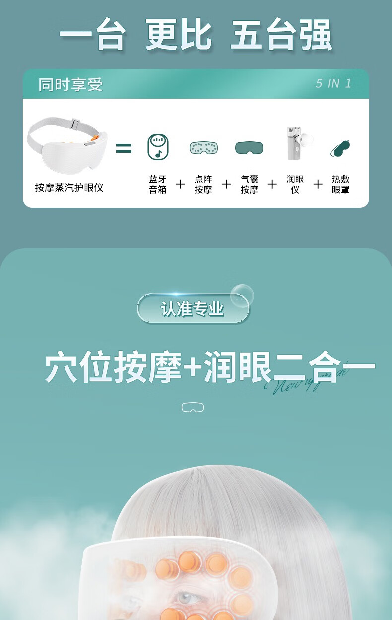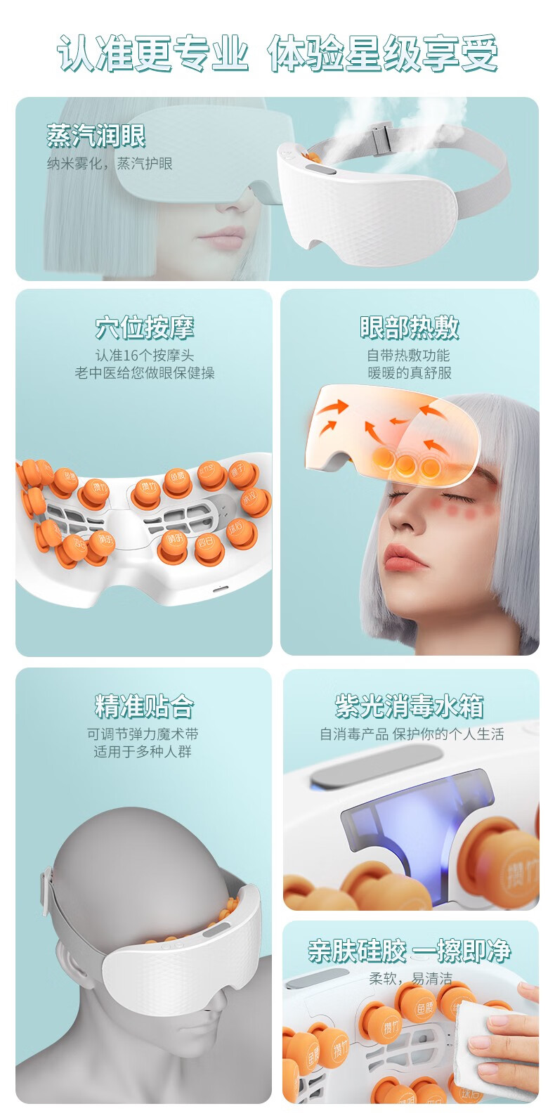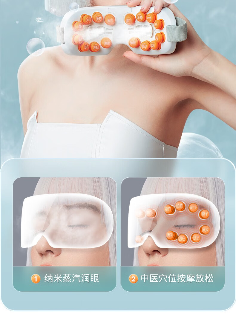 HKA 日本眼部按摩仪器润眼仪护眼仪眼睛蒸汽仪熏眼罩干眼涩敷眼送男女朋友长辈礼物 第四代至尊款(冷热双敷+点位按摩)-月光白