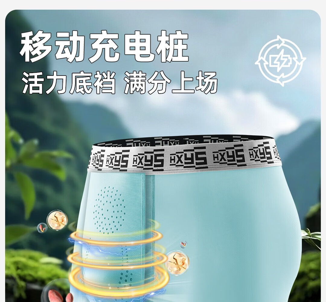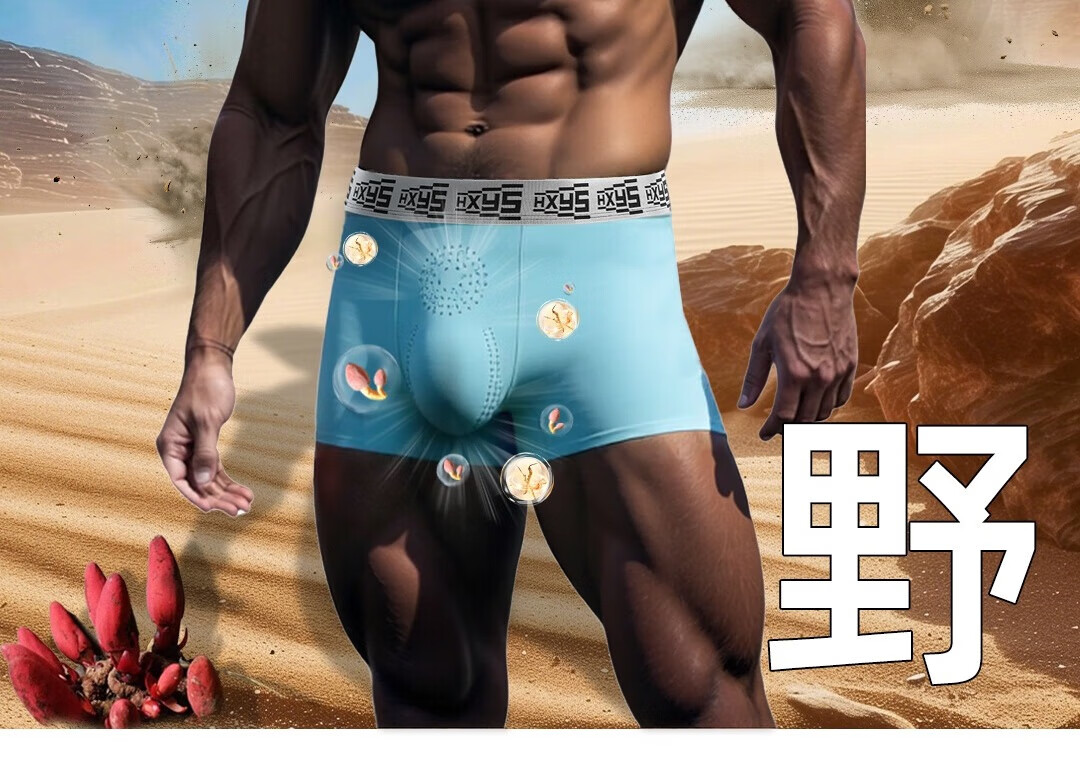 野兽来了唤醒野兽【顶天柱虫草双滋养】男士内裤冰丝凉爽理疗滋补力量裤 深灰 宝蓝 黑色 顶天柱虫草双滋养 XL (建议体重110-130斤)