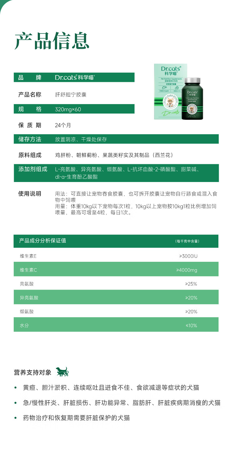 科学喵Dr.cats肝舒胆宁胶囊草本精华养肝舒胆综合营养猫犬通用 【养肝护胆】60粒*1盒
