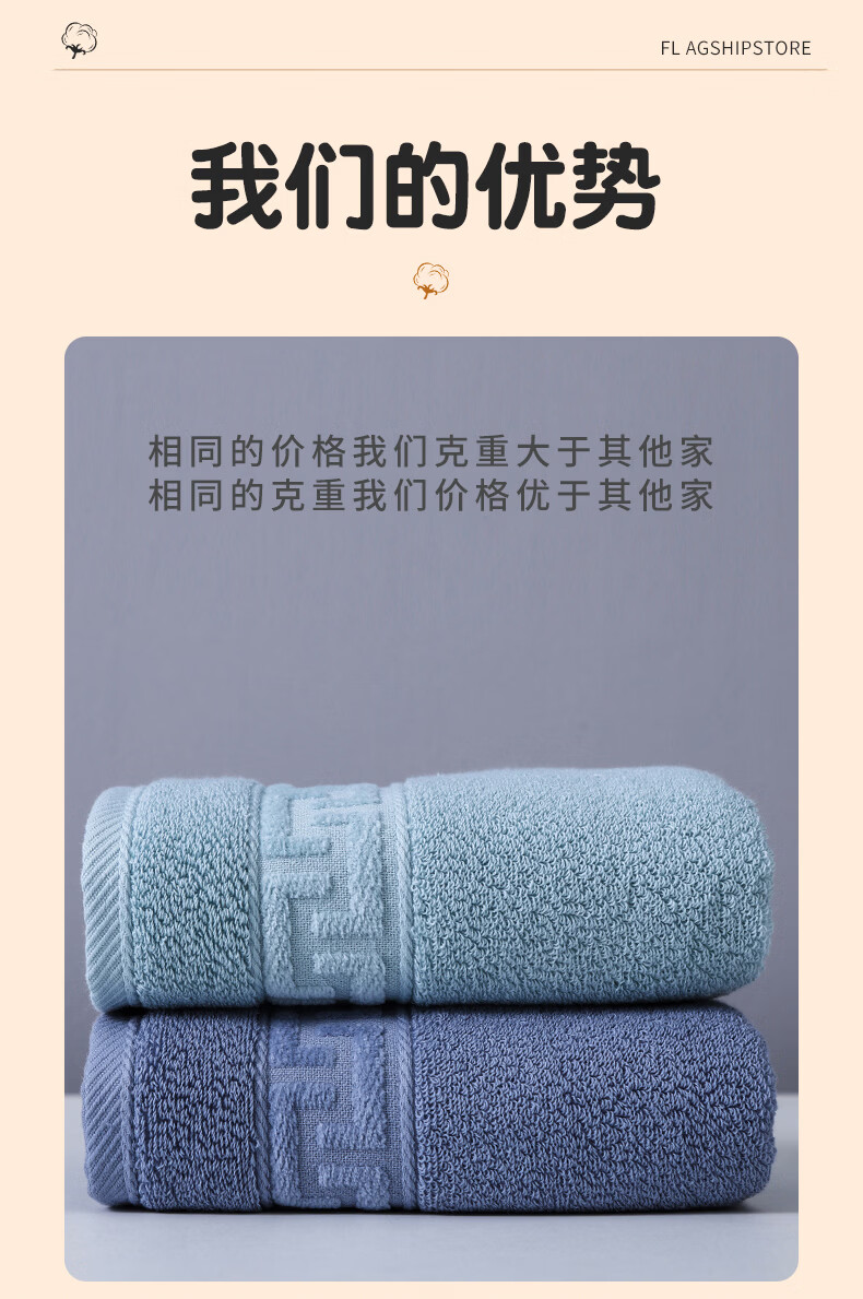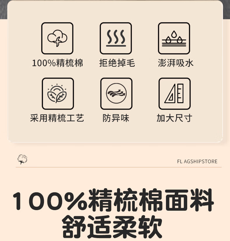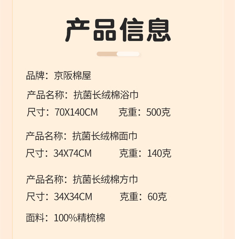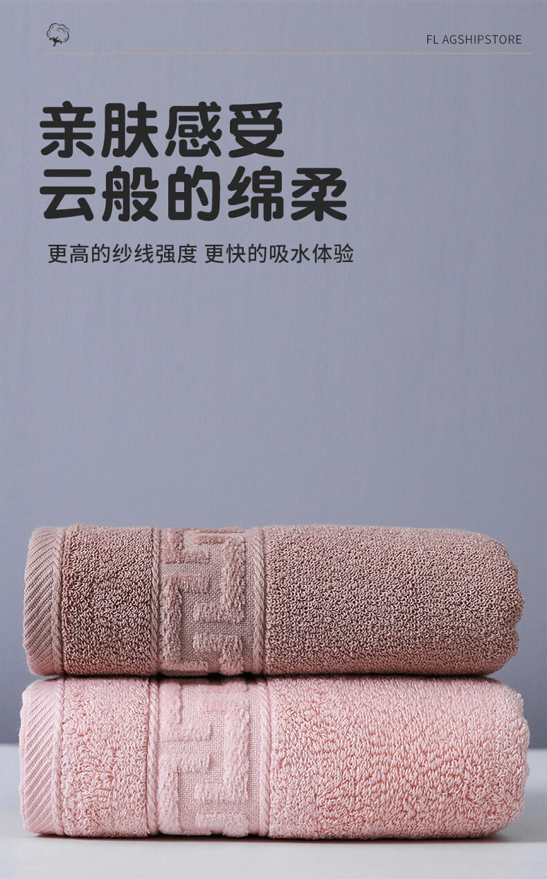 京阪棉屋5A抗菌长绒棉纯棉加厚成人毛巾柔软吸水洗澡浴巾不易掉毛酒店毛巾 抗菌长绒棉面巾-米白色+深咖色 2条