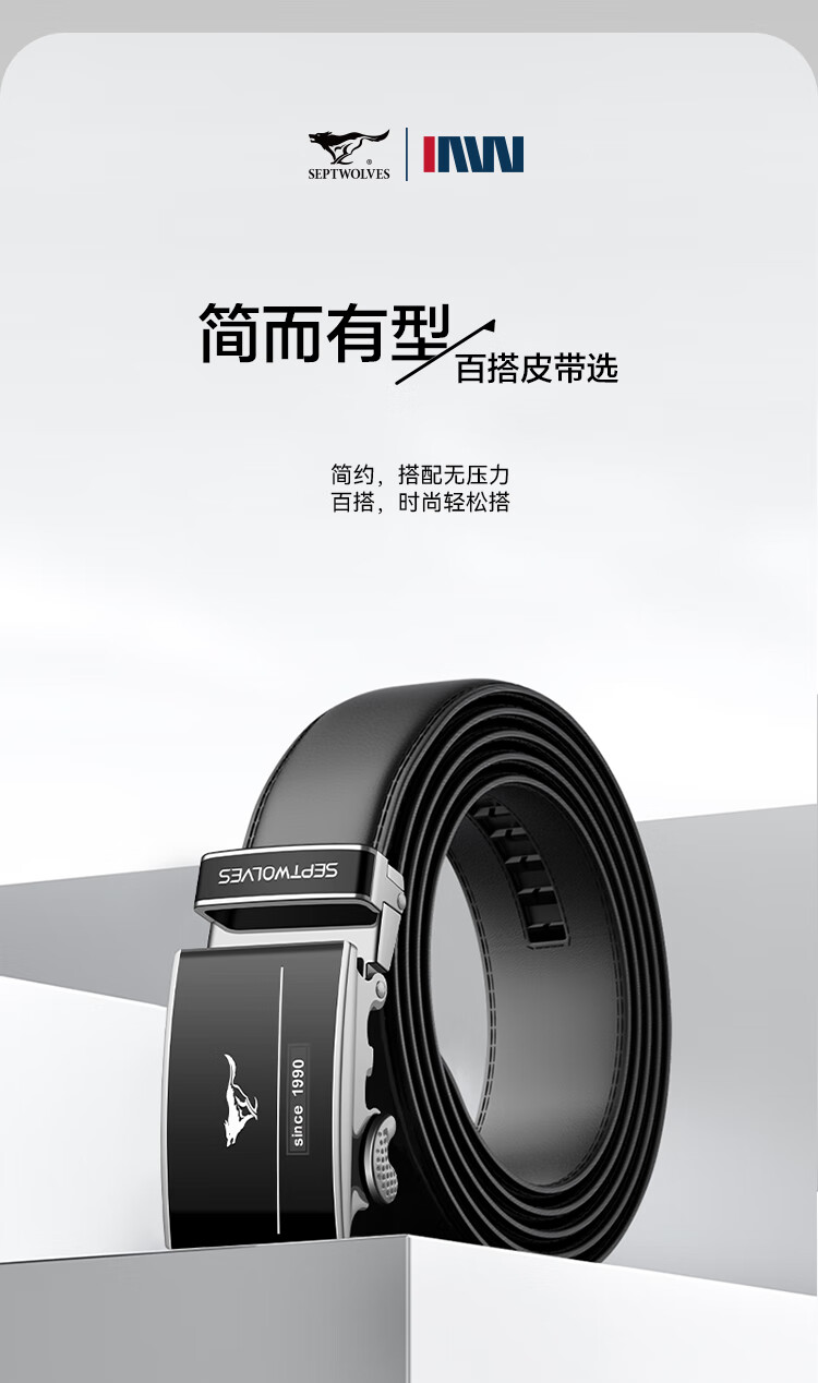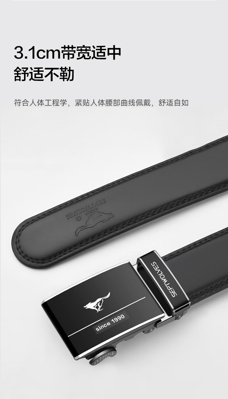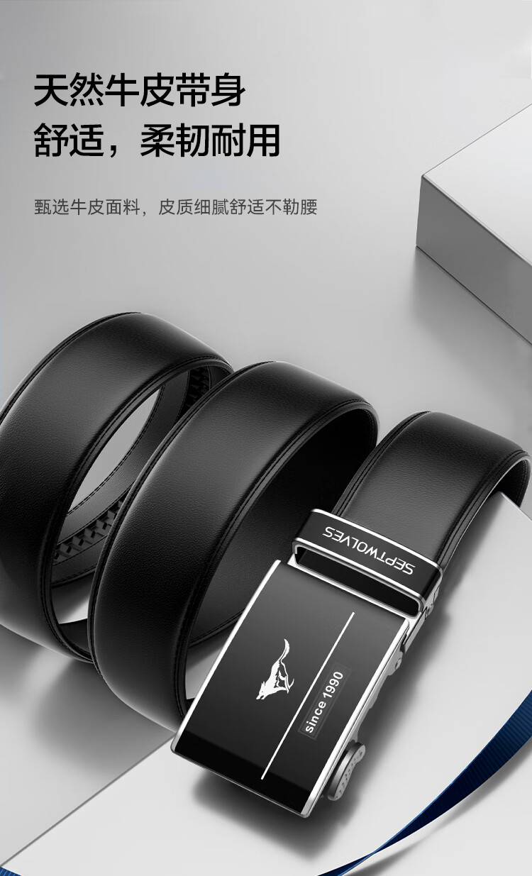 七匹狼男士皮带自动扣真牛皮休闲腰带生日情人节礼物送男友老公爸爸 热销款 110cm -130cm可备注