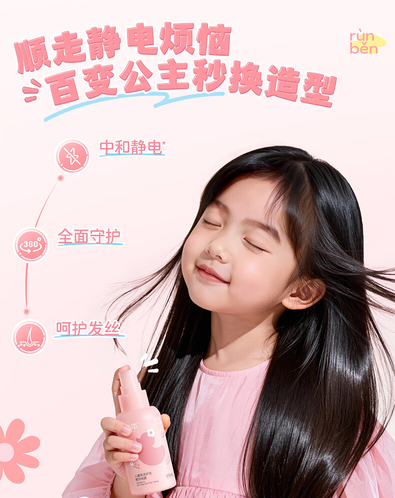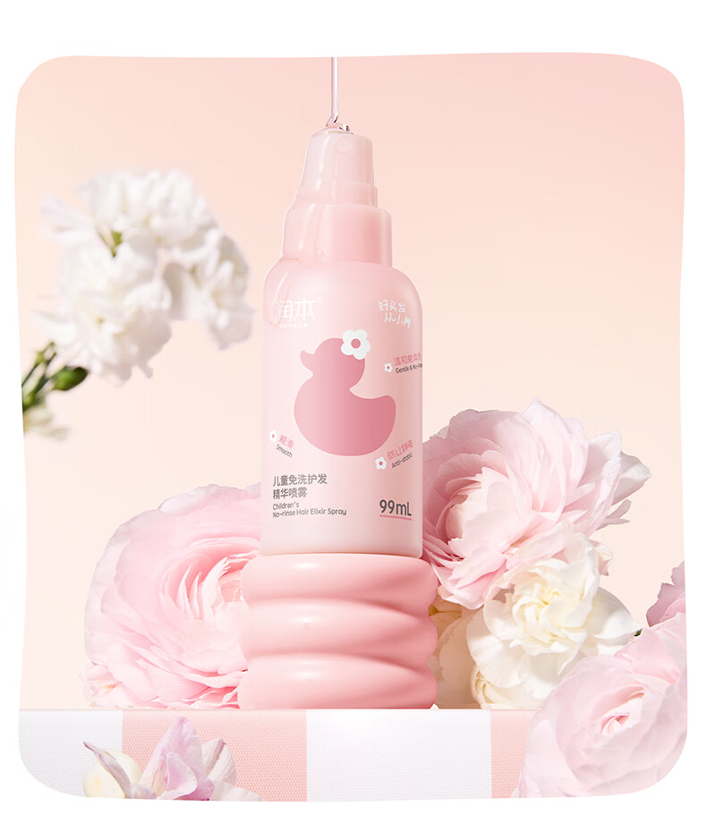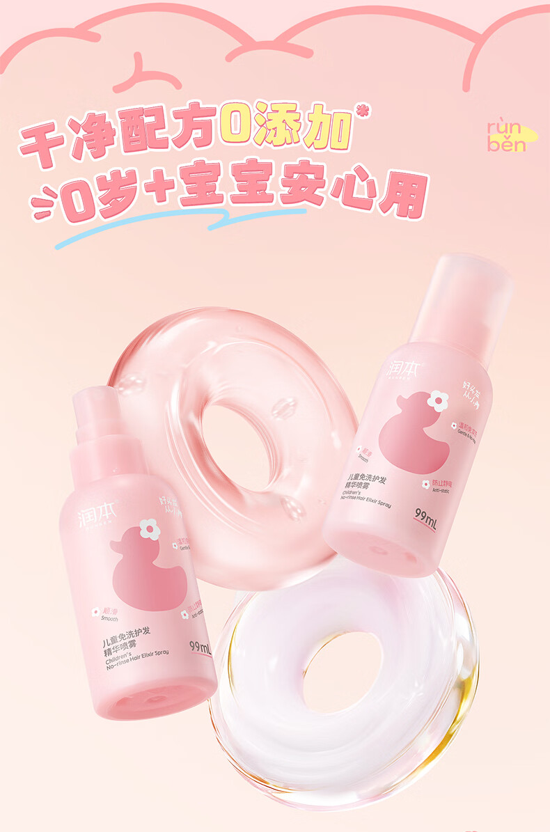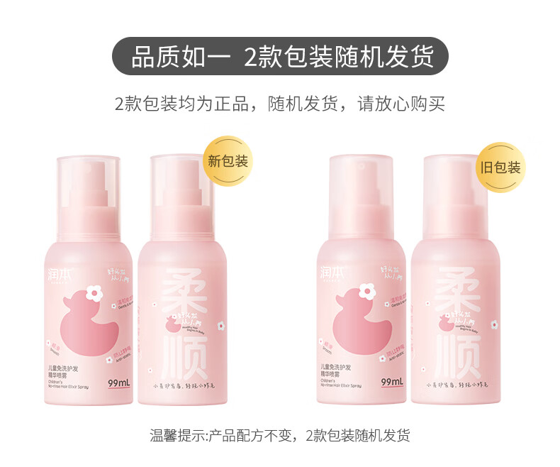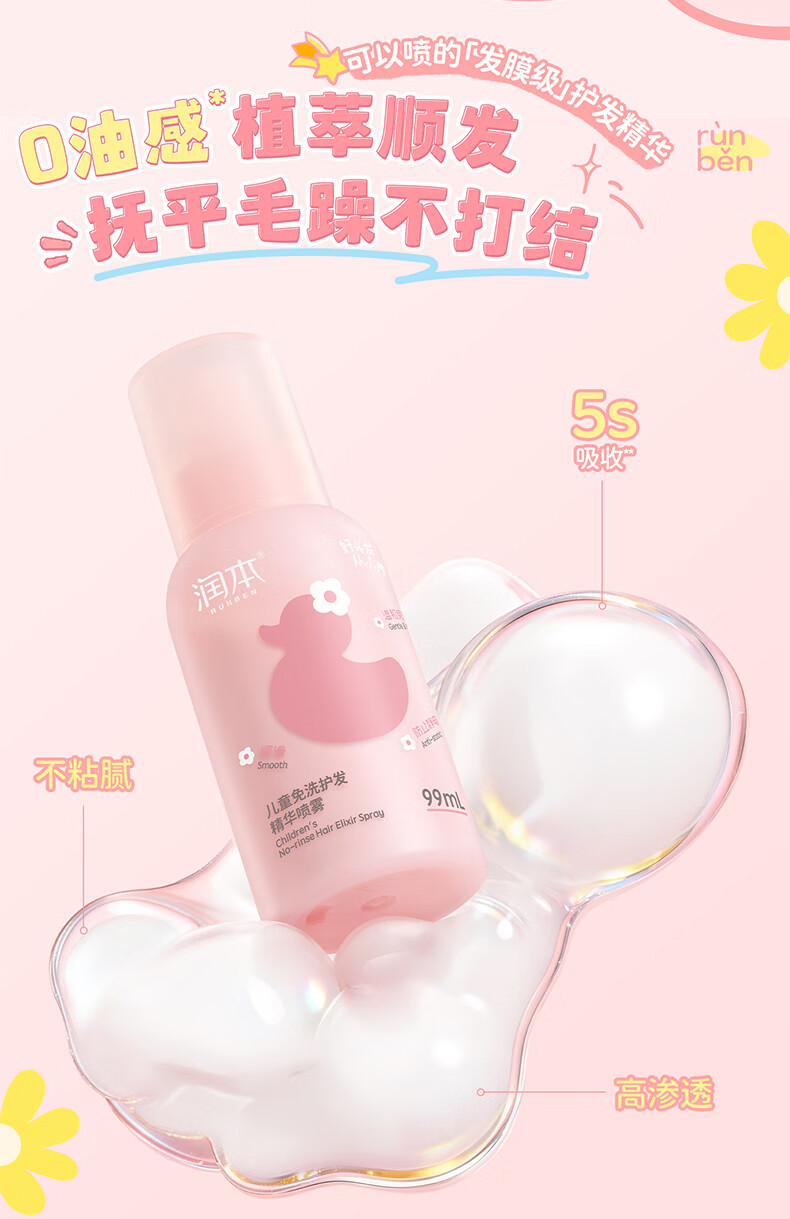 润本儿童洗发水沐浴露护发素香皂男女孩宝宝无硅油氨基酸弱酸性洗发露 儿童护发精油喷雾 99ml*1支 【免洗抗静电】