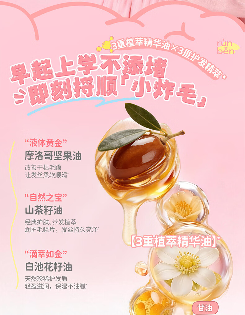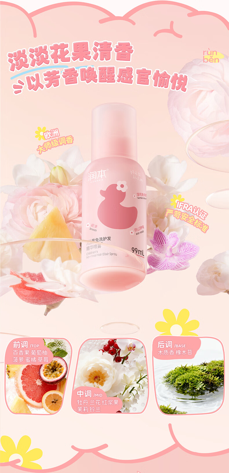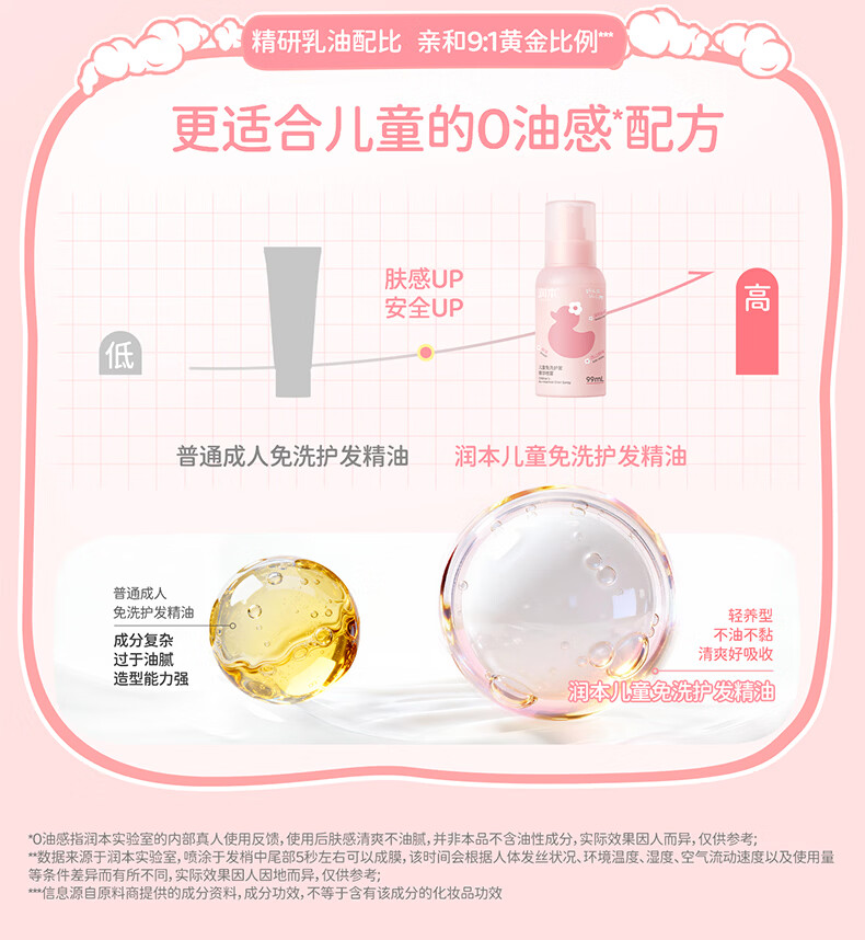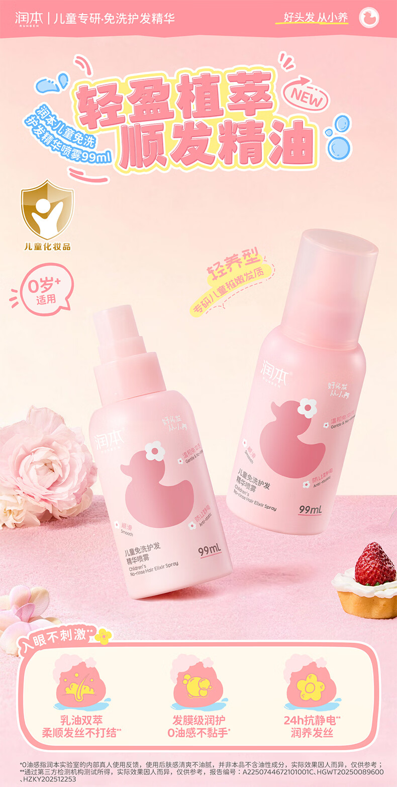 润本儿童洗发水沐浴露护发素香皂男女孩宝宝无硅油氨基酸弱酸性洗发露 儿童护发精油喷雾 99ml*1支 【免洗抗静电】