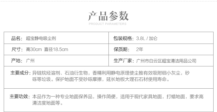 超宝(CHAOBAO)静电吸尘埃剂3.8升大瓶装尘推油静电水地板清洁剂 3.8升瓶装1瓶