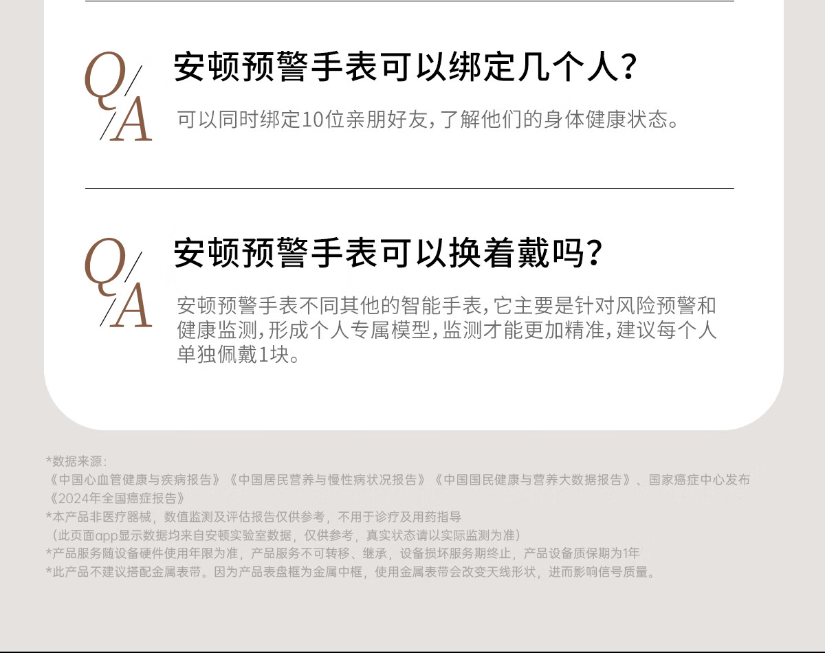 安顿健康预警手表心梗脑卒中风险预警血压血糖趋势睡眠心率血脂血氧免扎针智能健康老人送礼父母 至尊守护版+赠表带*1+赠VIP2年-32项服务
