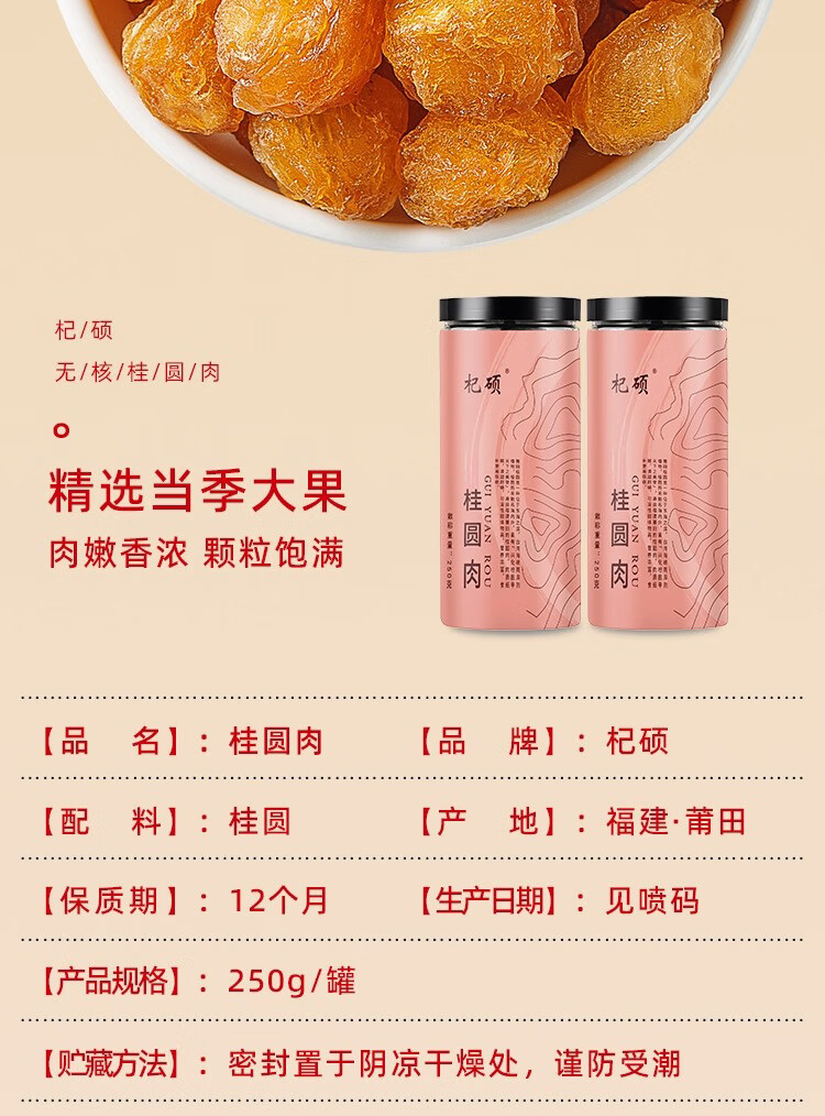 杞硕桂圆肉无核免剥桂圆干正品福建特产龙眼肉即食泡水滋补送礼干货 【无核免剥】桂圆肉250g*1罐