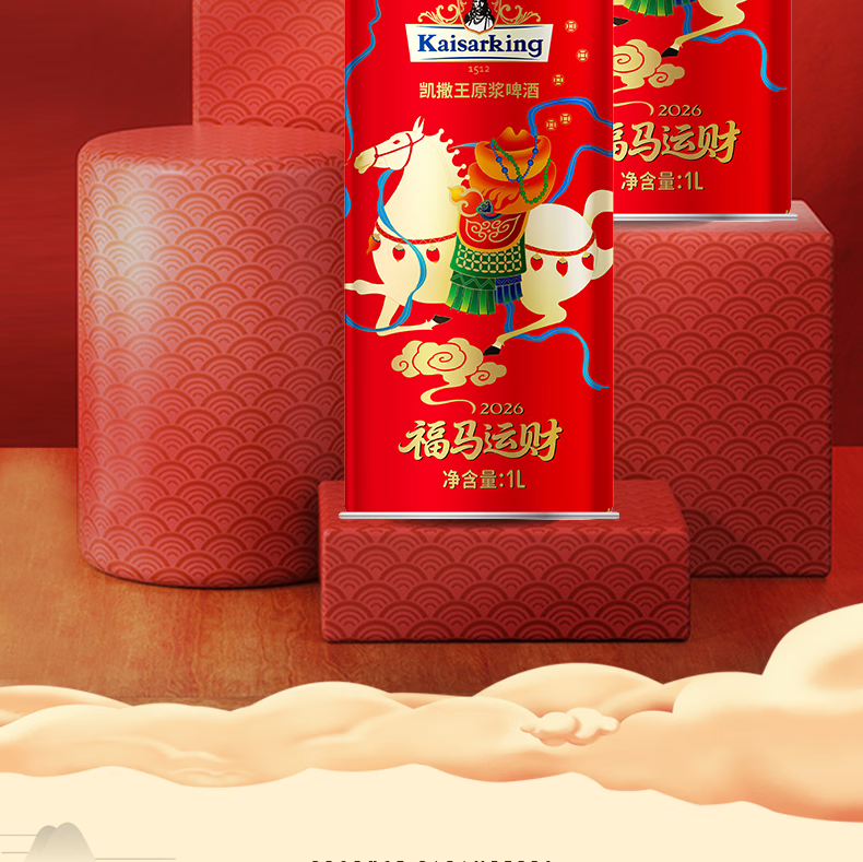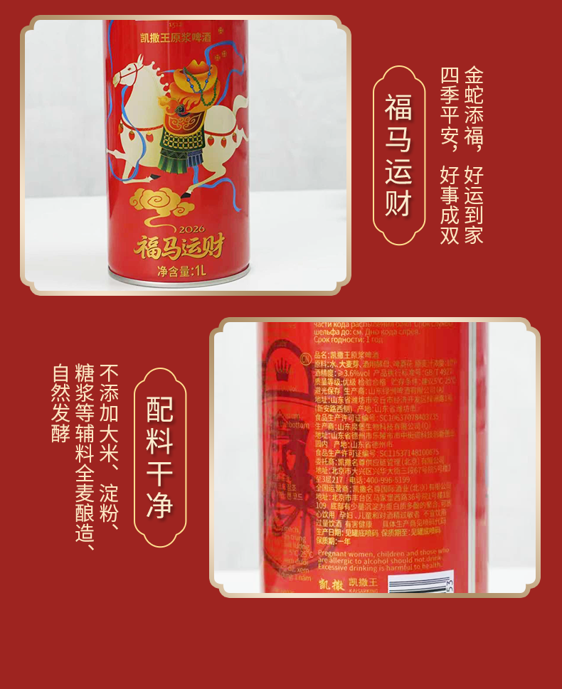 凯撒王精酿原浆 啤酒整箱装1L*6桶 马年生肖款 原浆啤酒 1L 6桶 整箱装 精酿啤酒