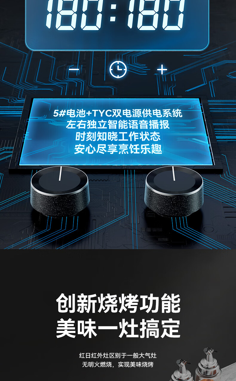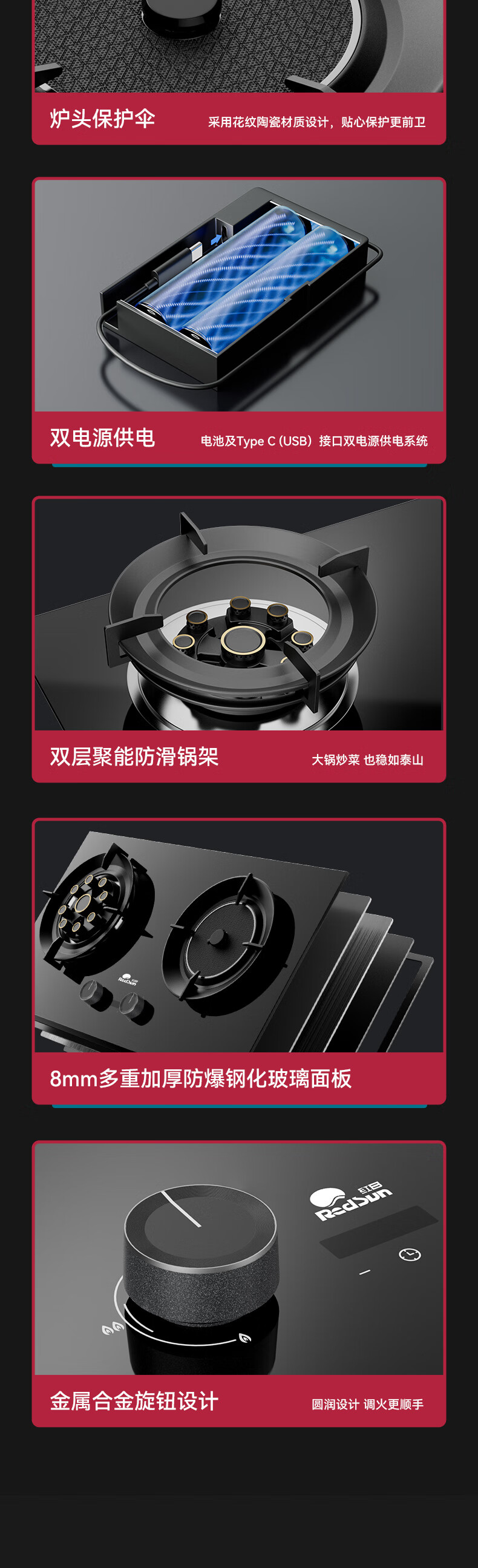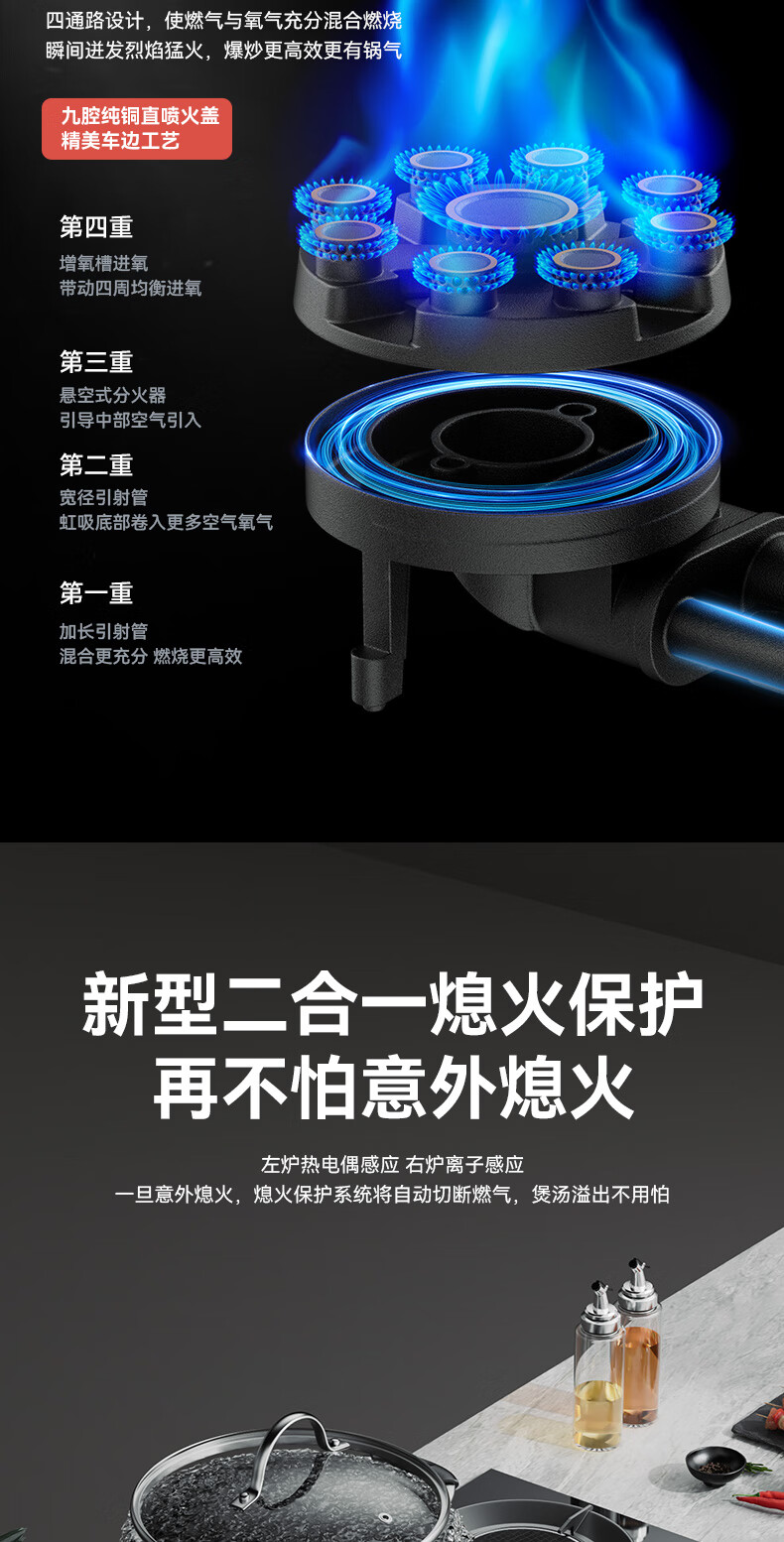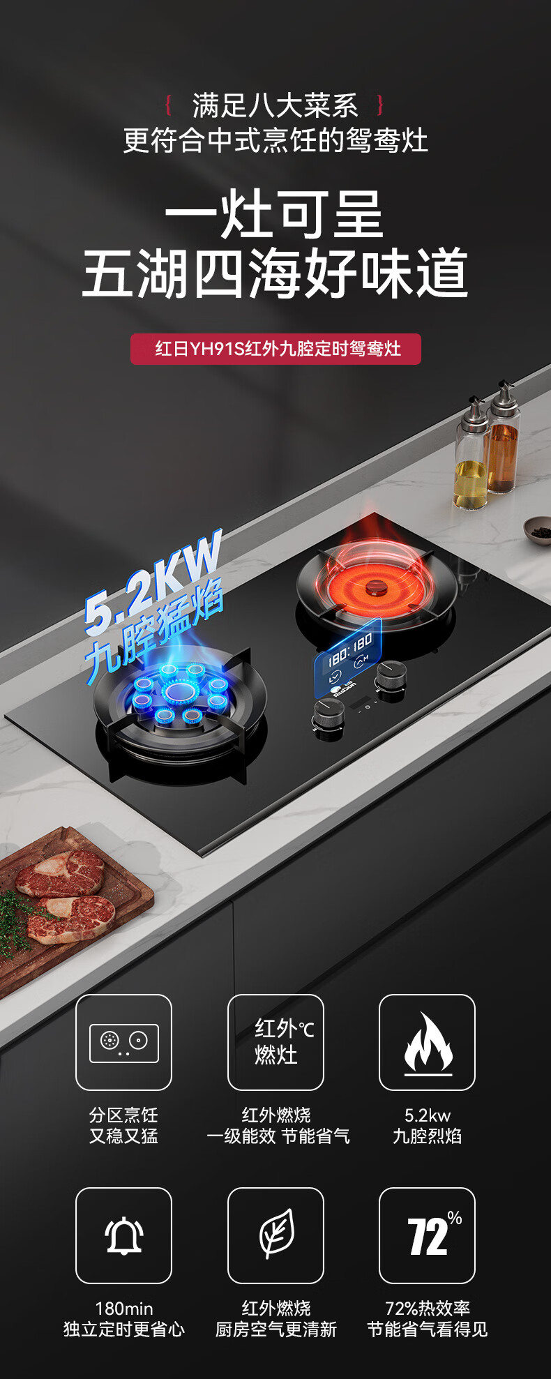 红日(RedSun)定时九腔YH91红外燃气鸳鸯灶72%高热效率省气聚能免改孔小底壳九头灶具 72%高热效率免改孔小底壳定时九腔鸳鸯灶YH91S 液化气