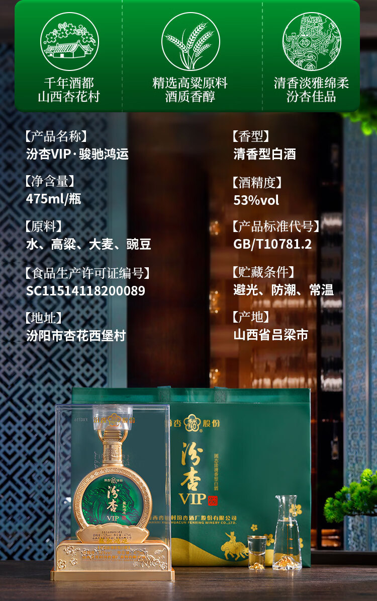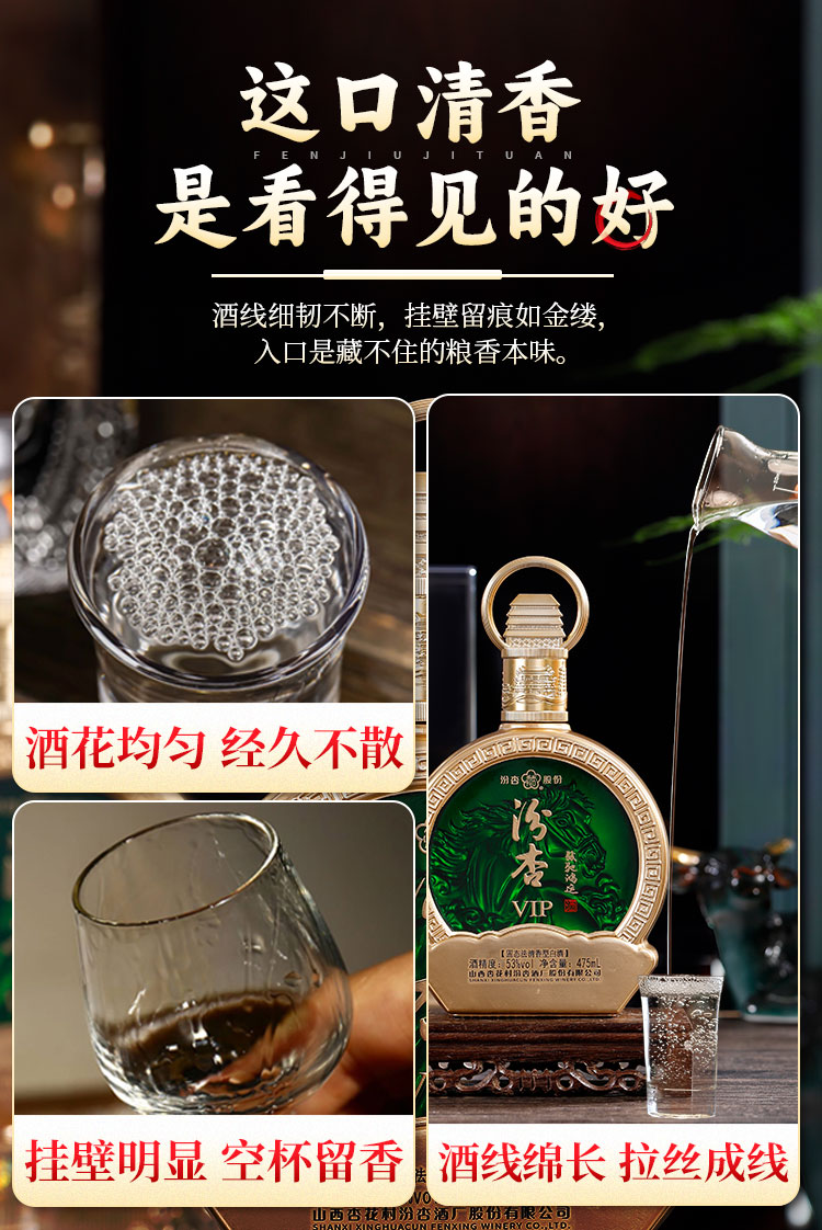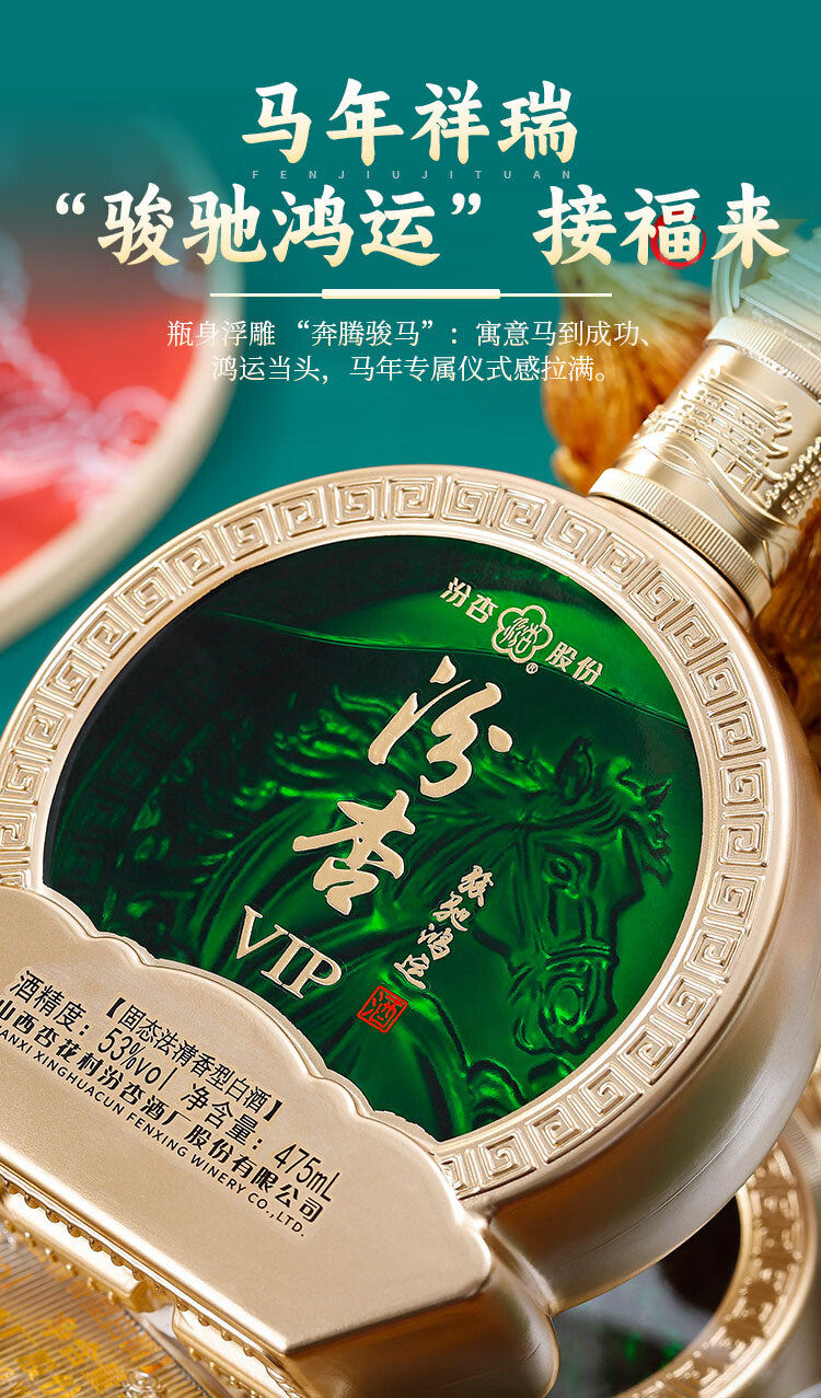 汾杏【年货】山西汾杏53度清香型白酒整箱 粮食酒口粮酒送礼酒水龙年 53度 475mL 6瓶 原箱汾杏VIP骏驰鸿运商务宴请
