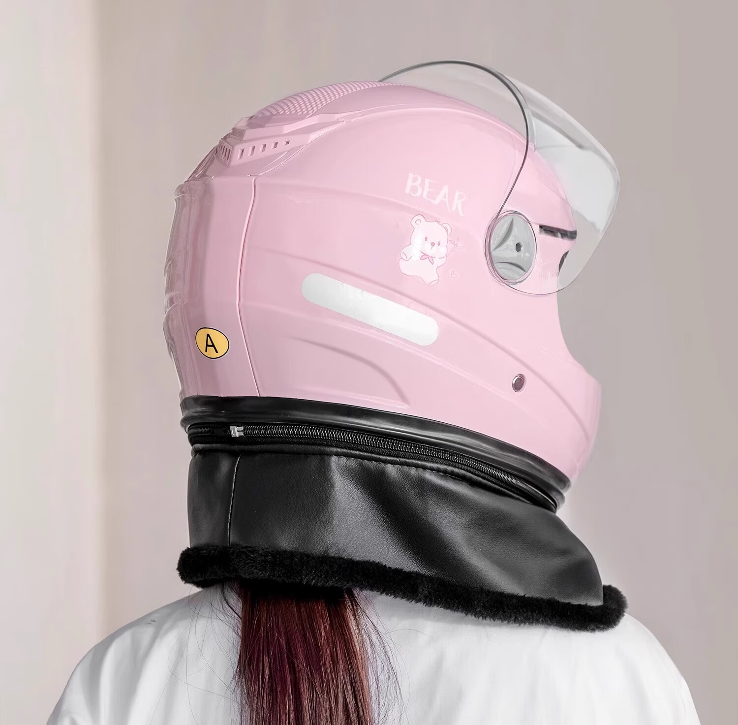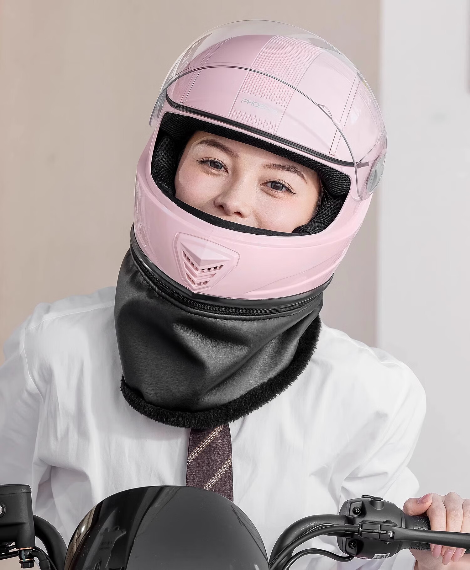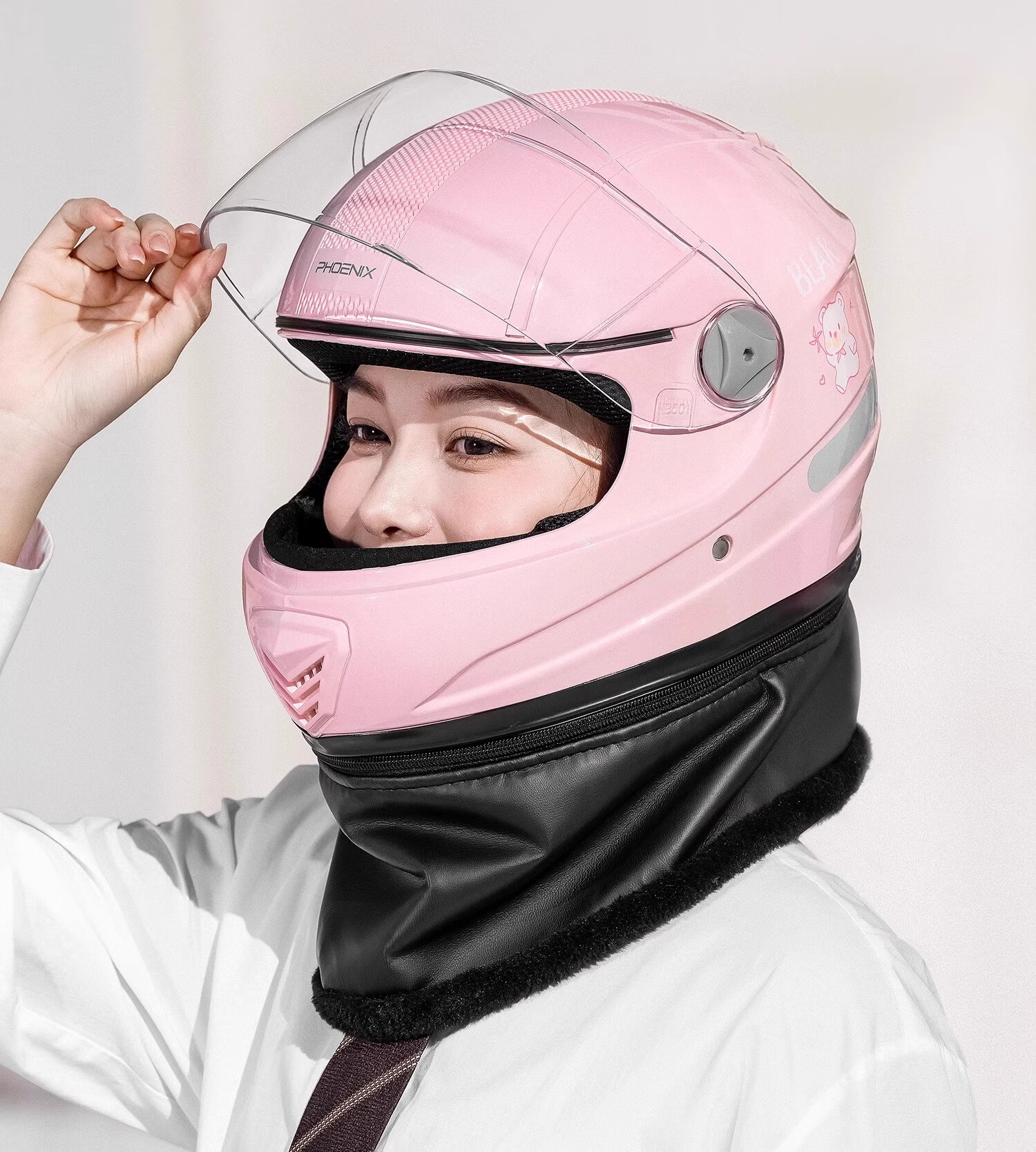 凤凰电动车头盔全盔3C认证男女士四季通用冬季保暖电瓶车摩托车安全帽带围脖新国标 3C围脖 蓝【 高清防雾】新国标A类 均码【56-62cm】