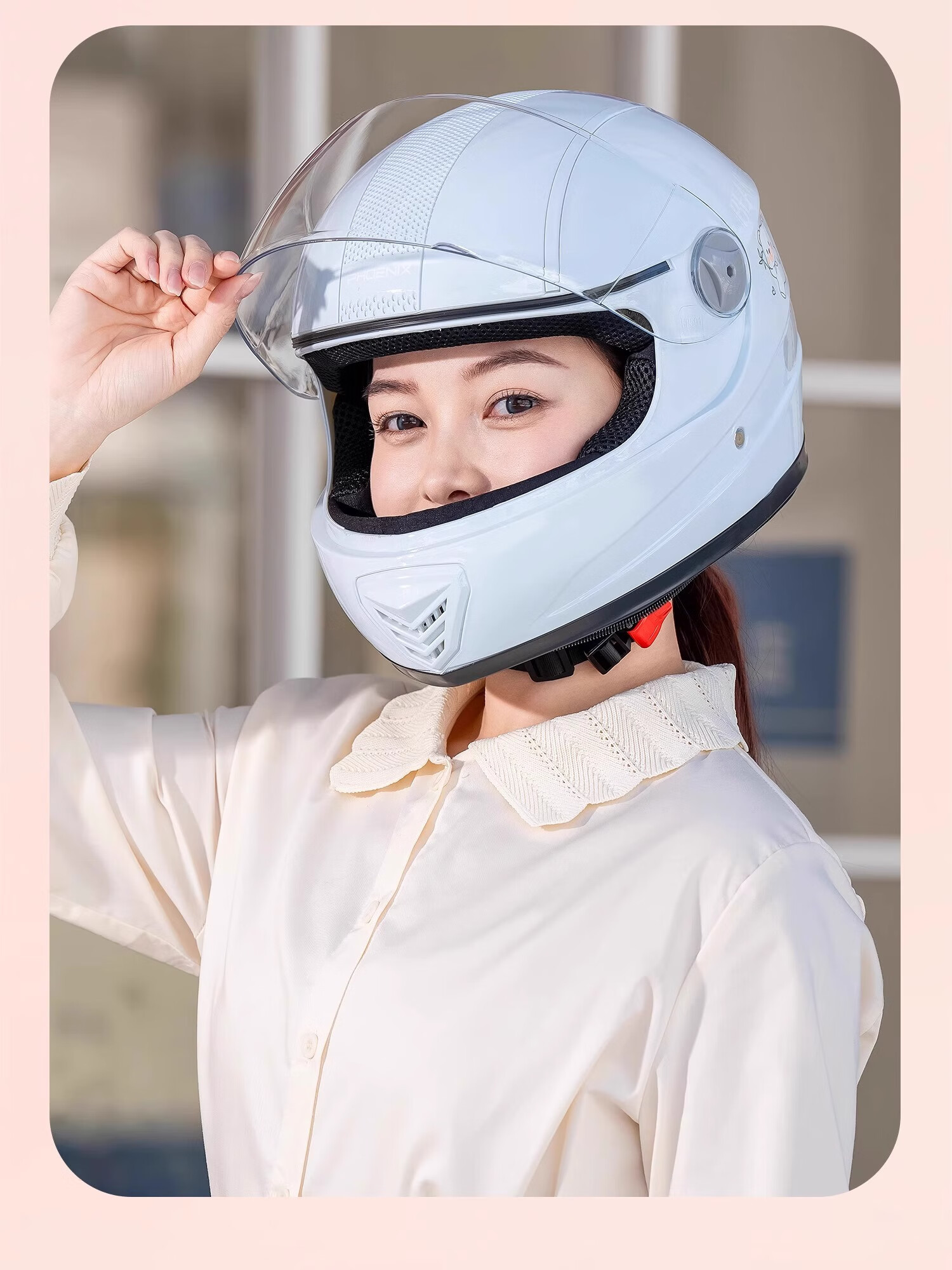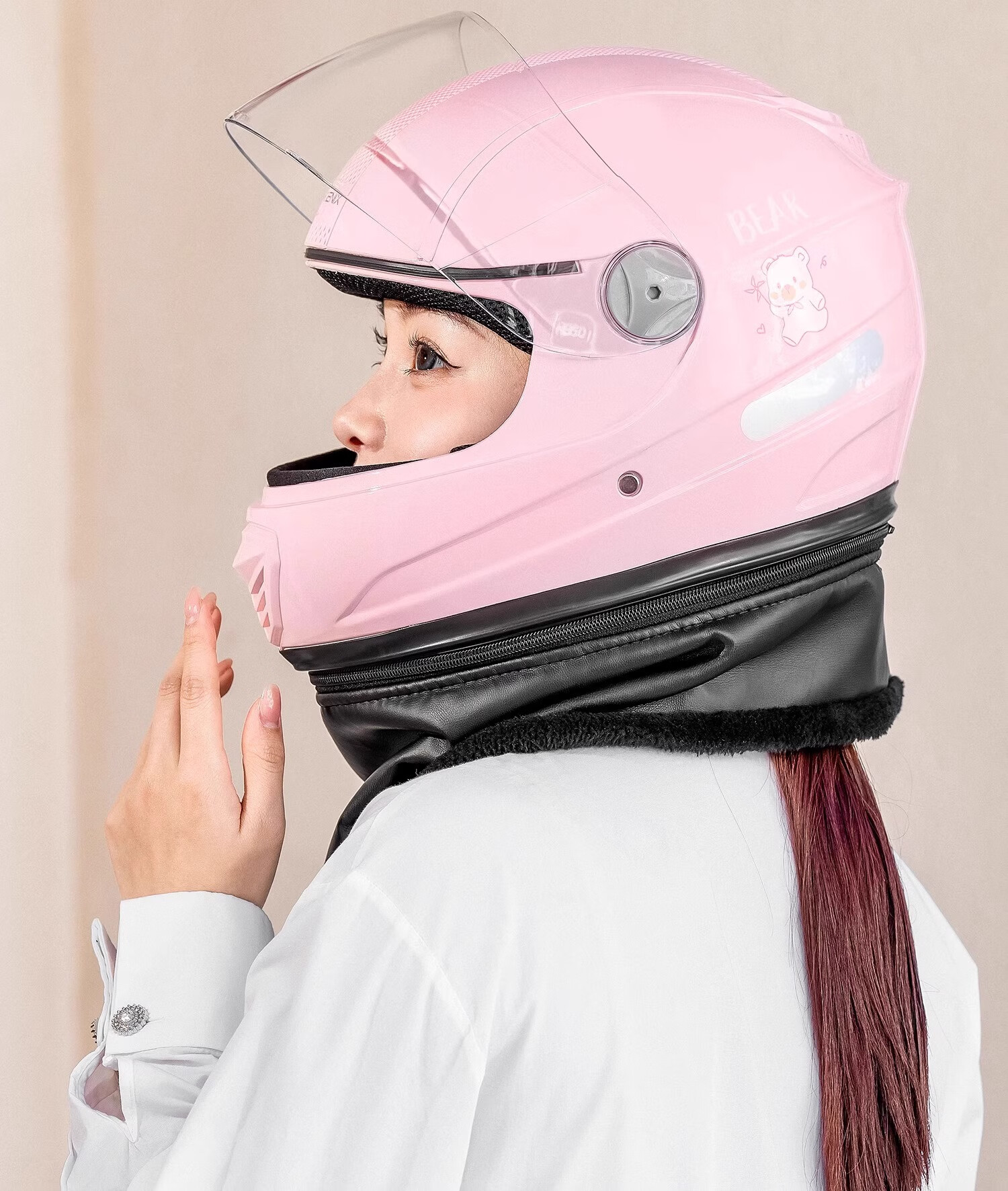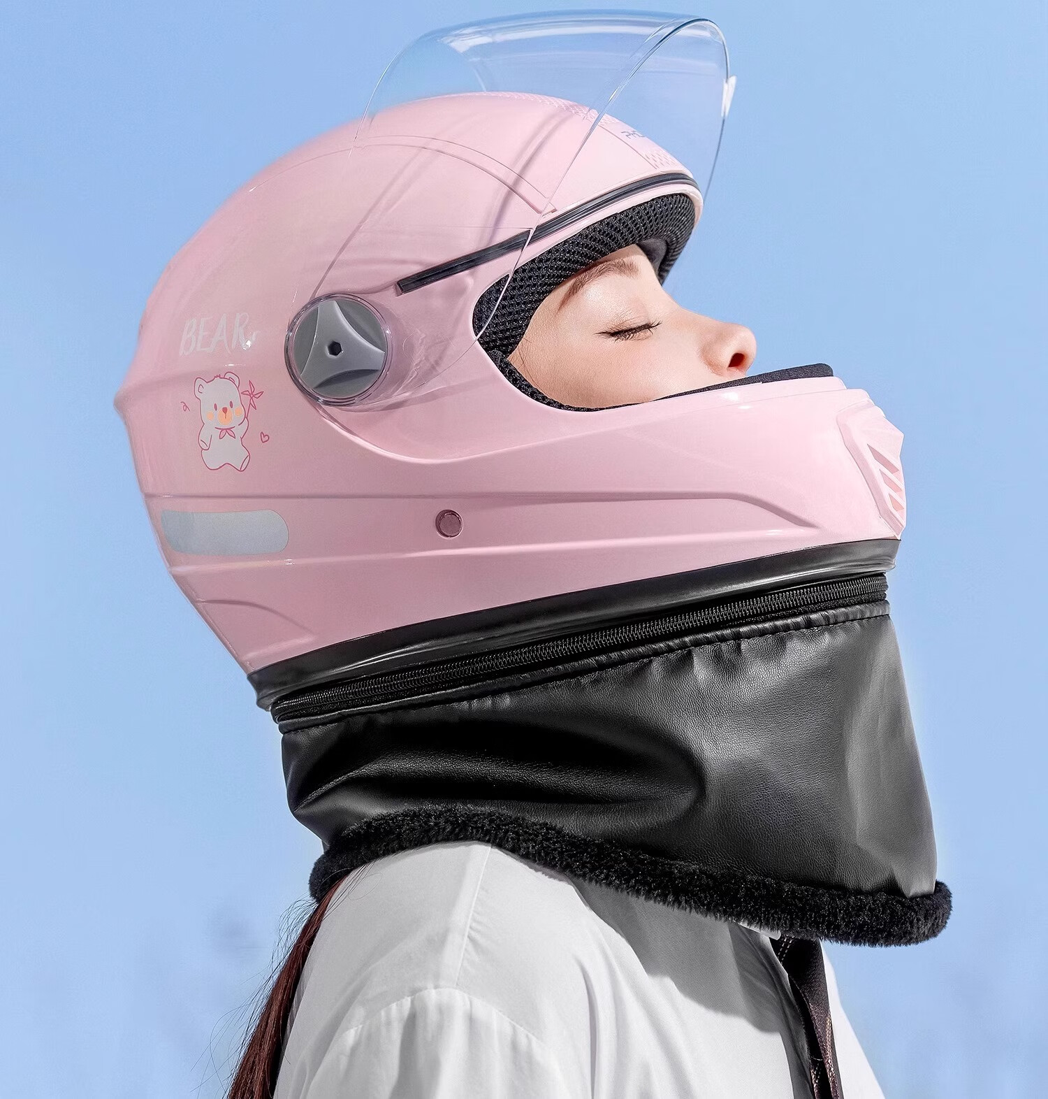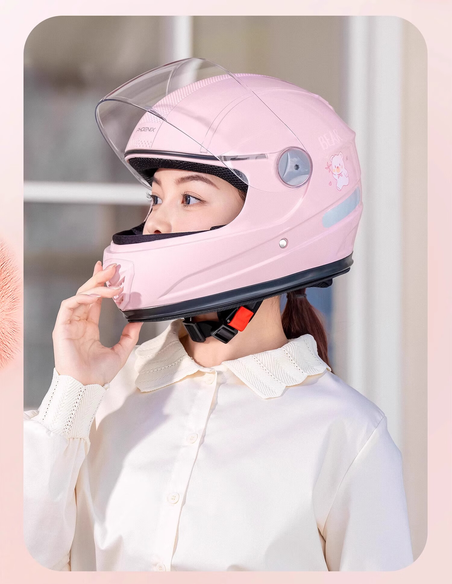 凤凰电动车头盔全盔3C认证男女士四季通用冬季保暖电瓶车摩托车安全帽带围脖新国标 3C围脖 蓝【 高清防雾】新国标A类 均码【56-62cm】