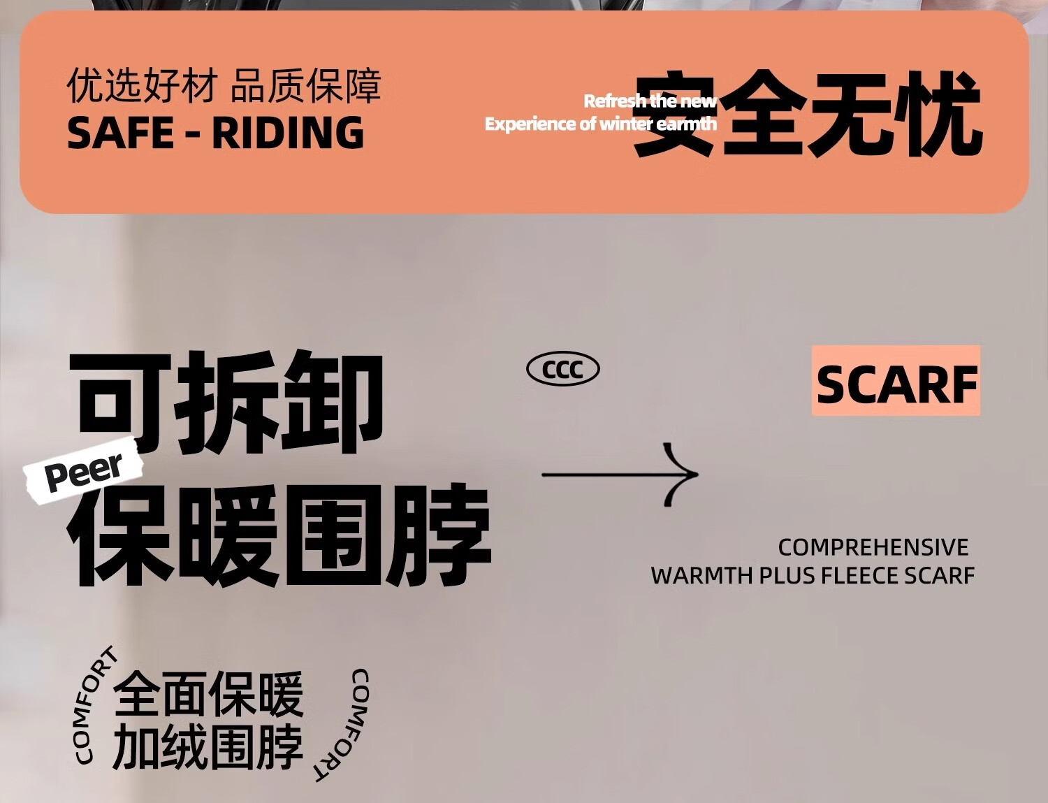 劲悦途3C认证摩托车头盔男 冬季保暖电动车揭面盔 女四季通用安全帽 909毒刺哑黑