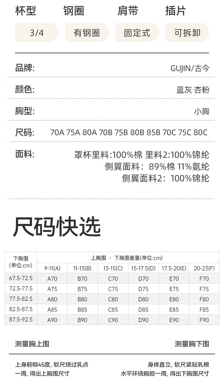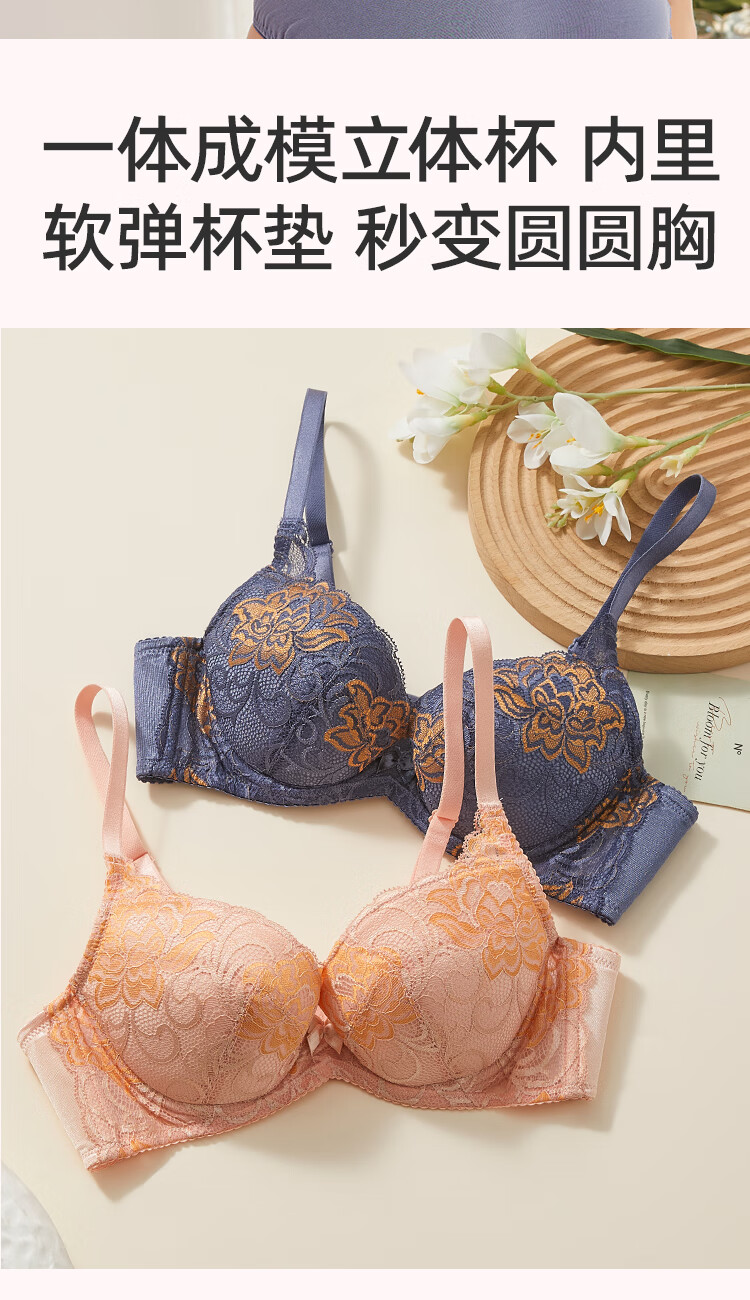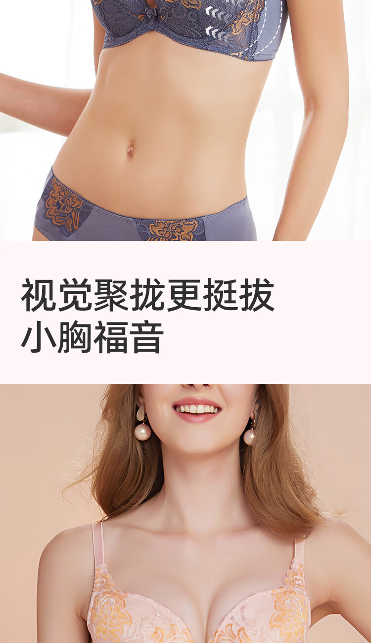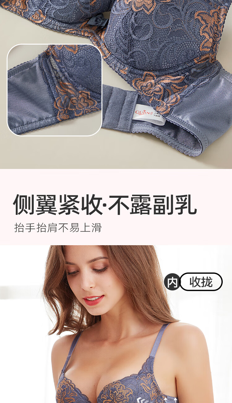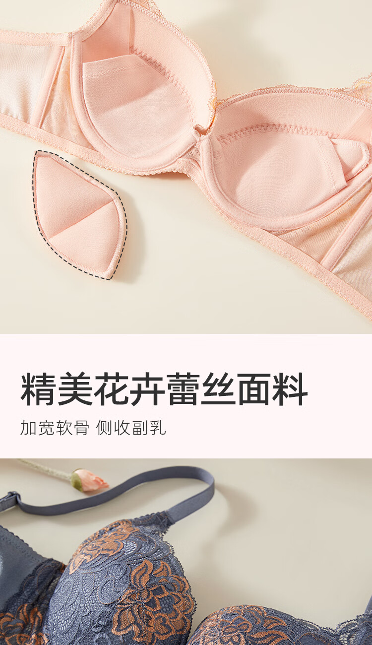 古今(GUJIN)女士内衣薄款文胸少女小胸刺绣插片性感蕾丝侧收聚拢 杏粉 80B