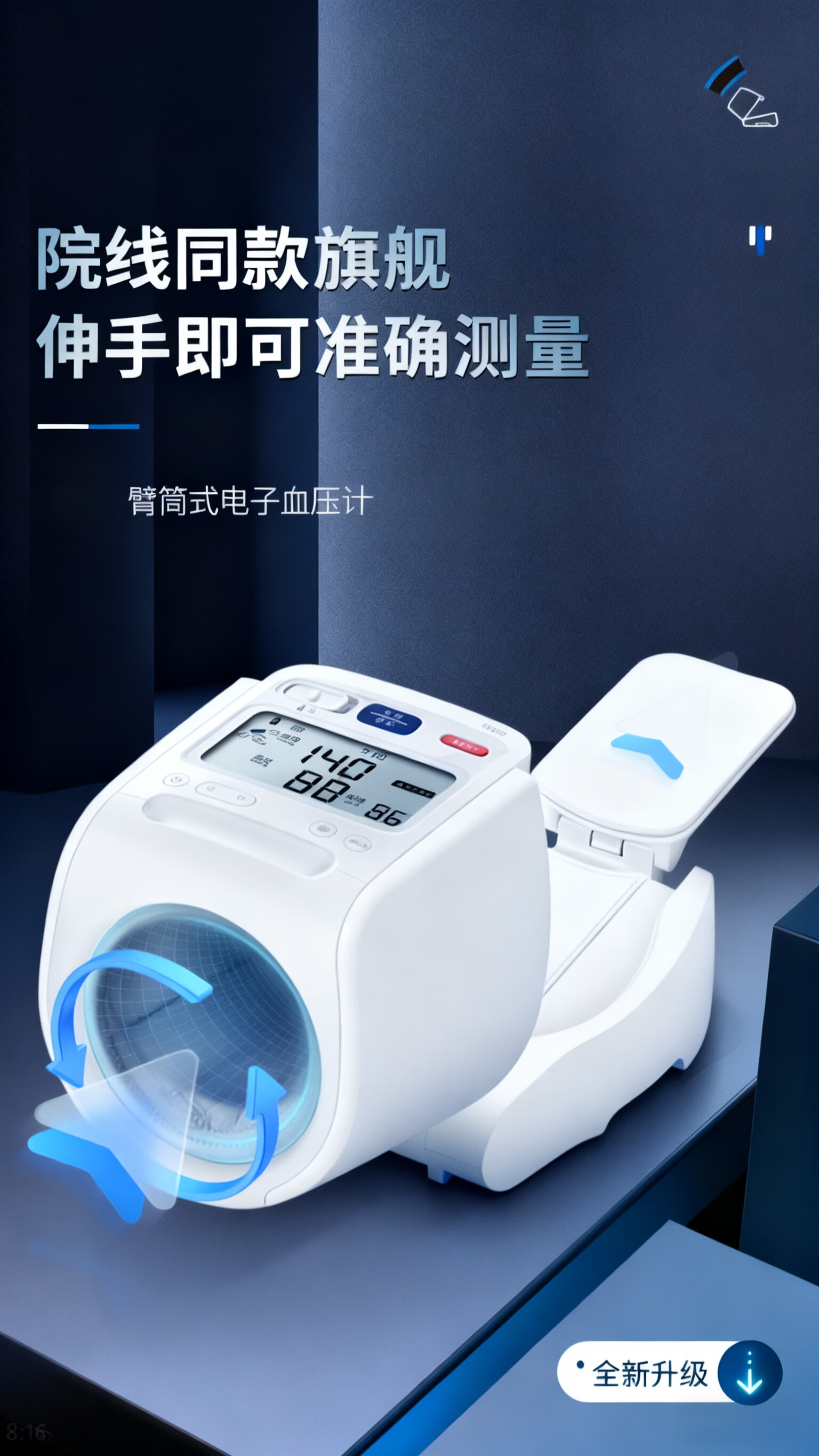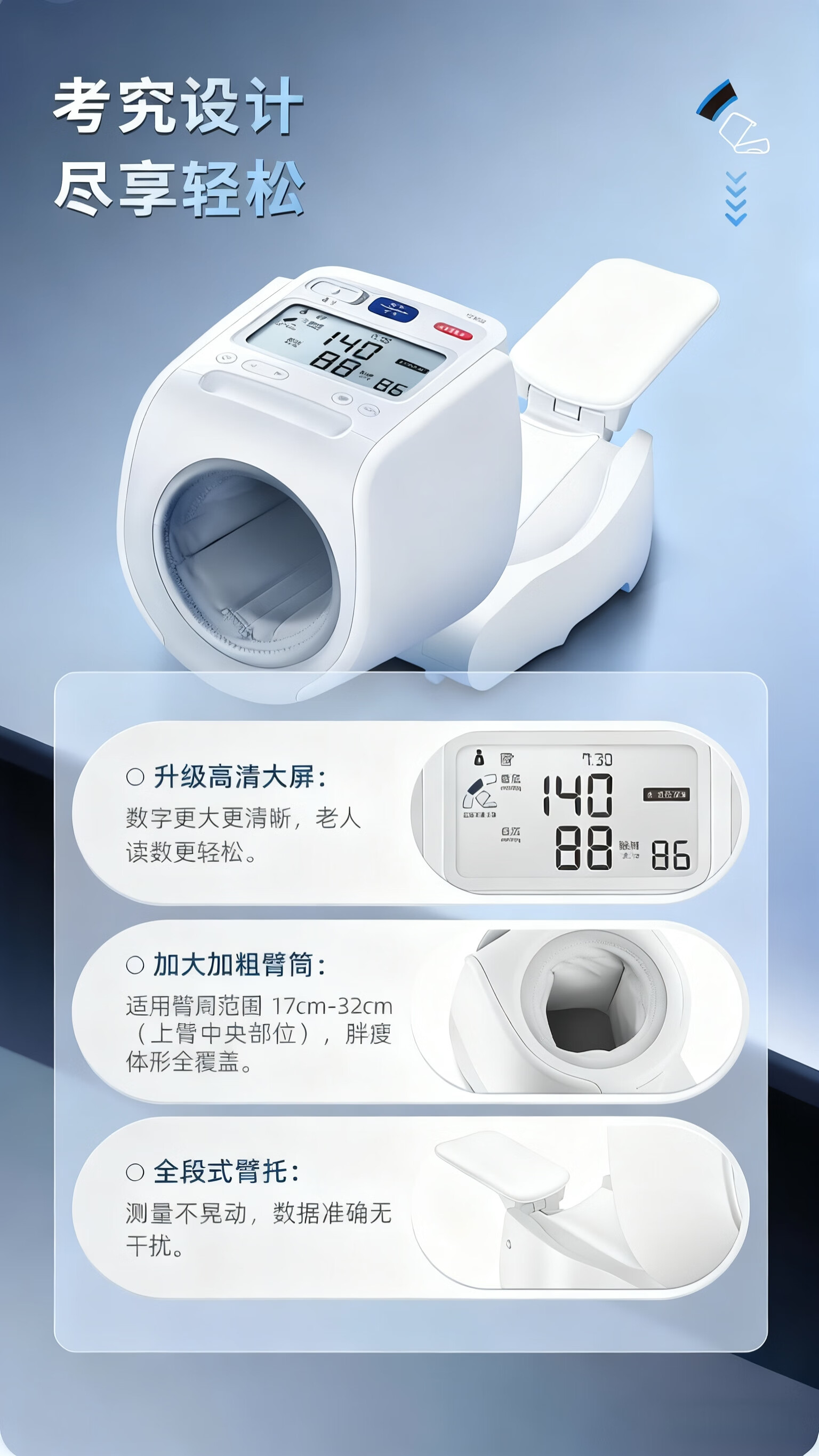 欧姆龙臂筒式血压计同款 医用级高精准进口原装电子医用血压计家用老人 臂筒式家用款+50次测量续航+单泵加压