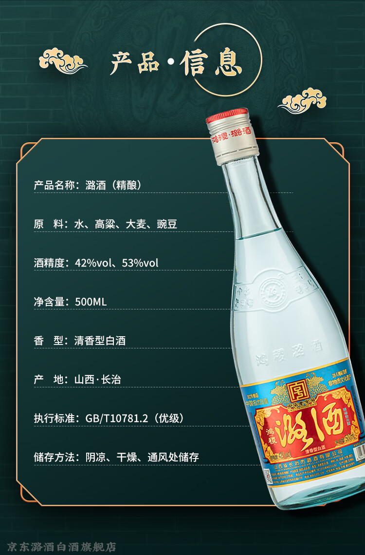 潞酒 中华老字号清香型优级 过节送长辈宴会高粱粮食白酒整箱 精酿 53度 500mL 6瓶 [精酿]