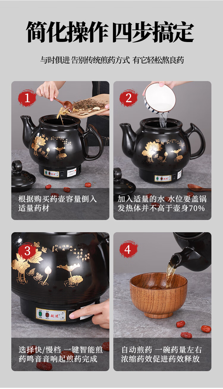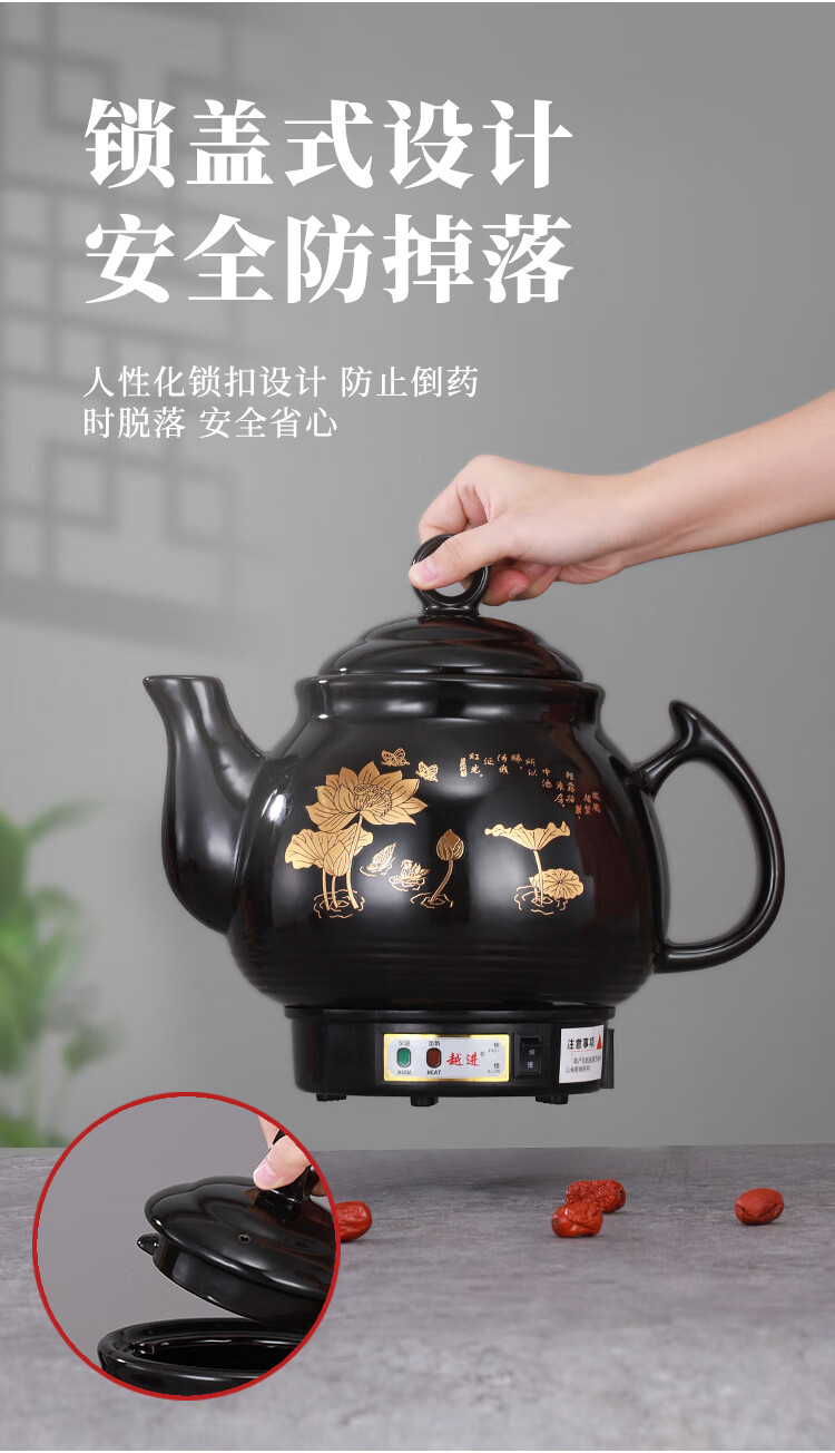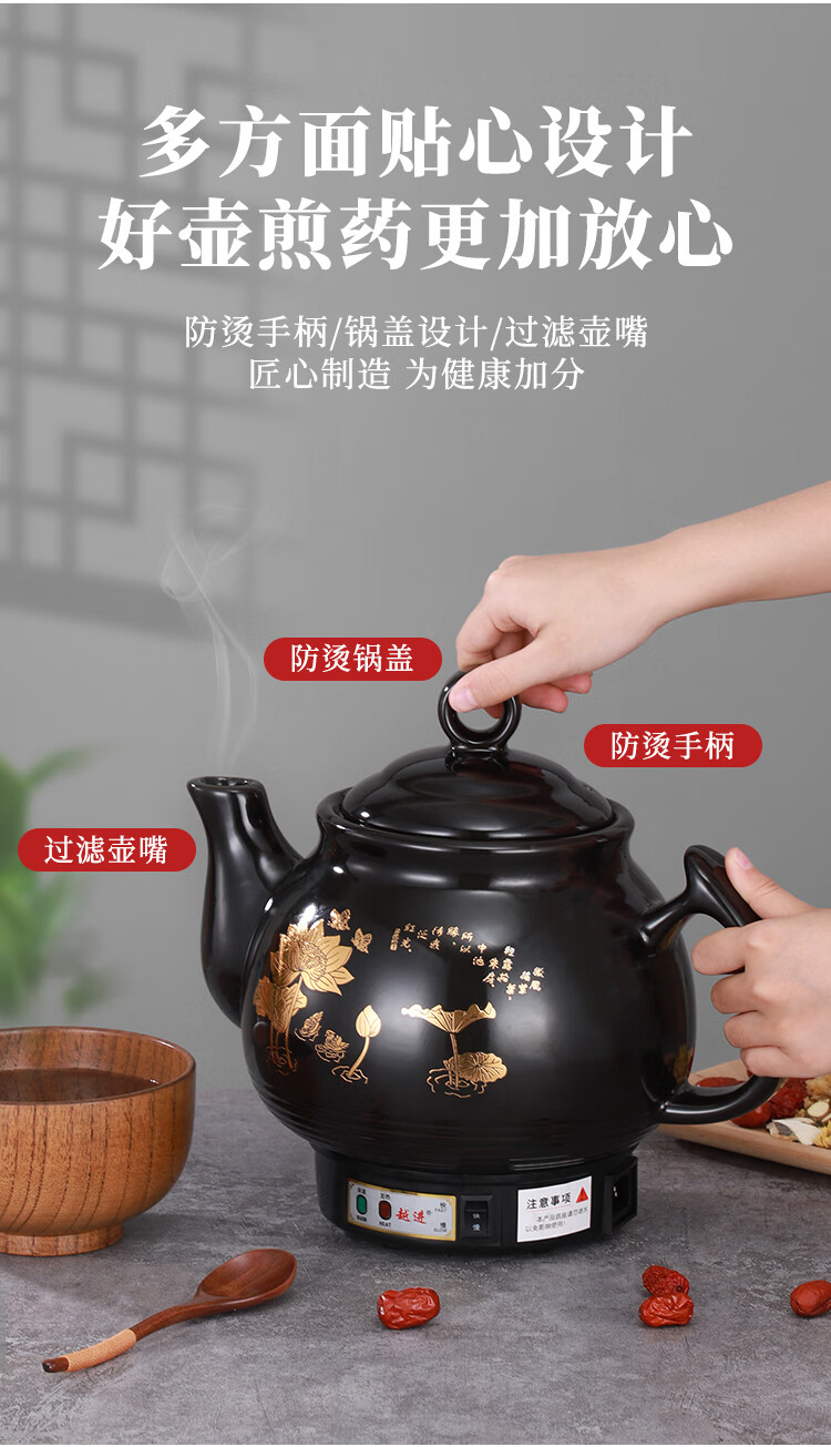 越进中药锅煎药壶煎药壶全自动熬药药煲中药电煎壶熬中药砂锅药罐家用养生壶药罐煎药壶熬药中药煎锅 D6黑色长嘴荷花/黑瓷不粘/一键智能 3.8L